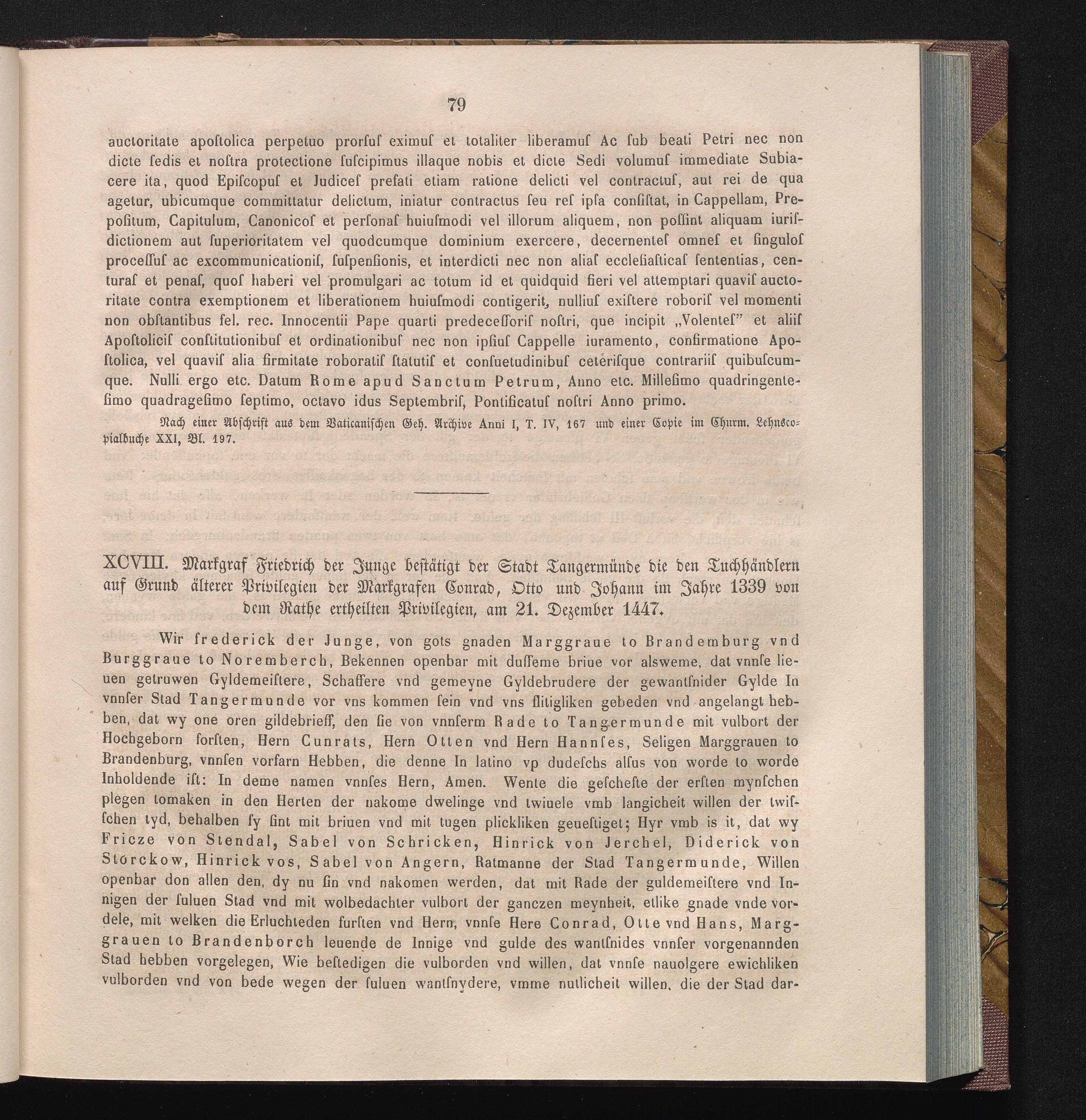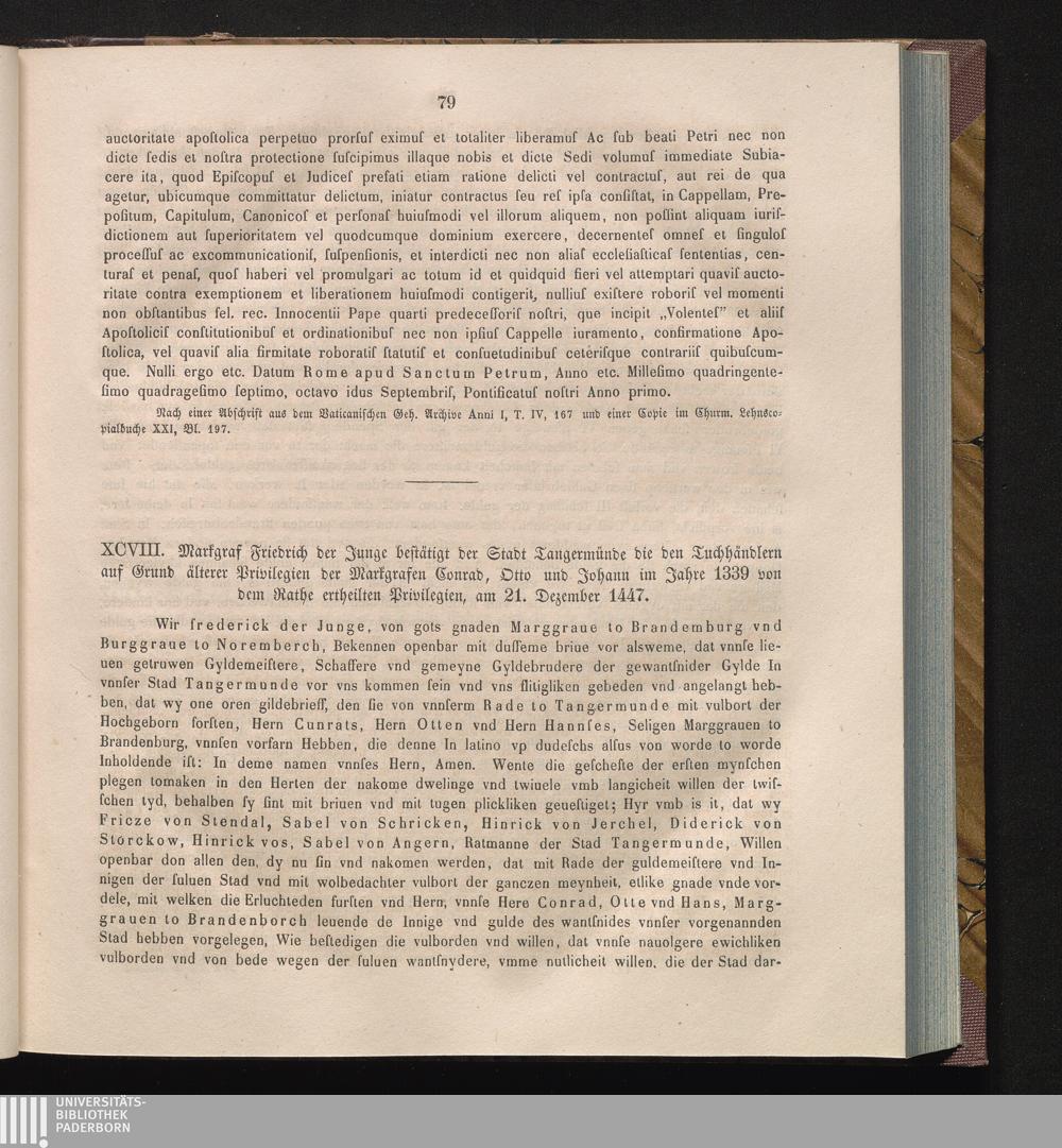 XCVIII. Markgraf Friedrich der Junge bestätigt der Stadt Tangermünde die den Tuchhändlern[...]