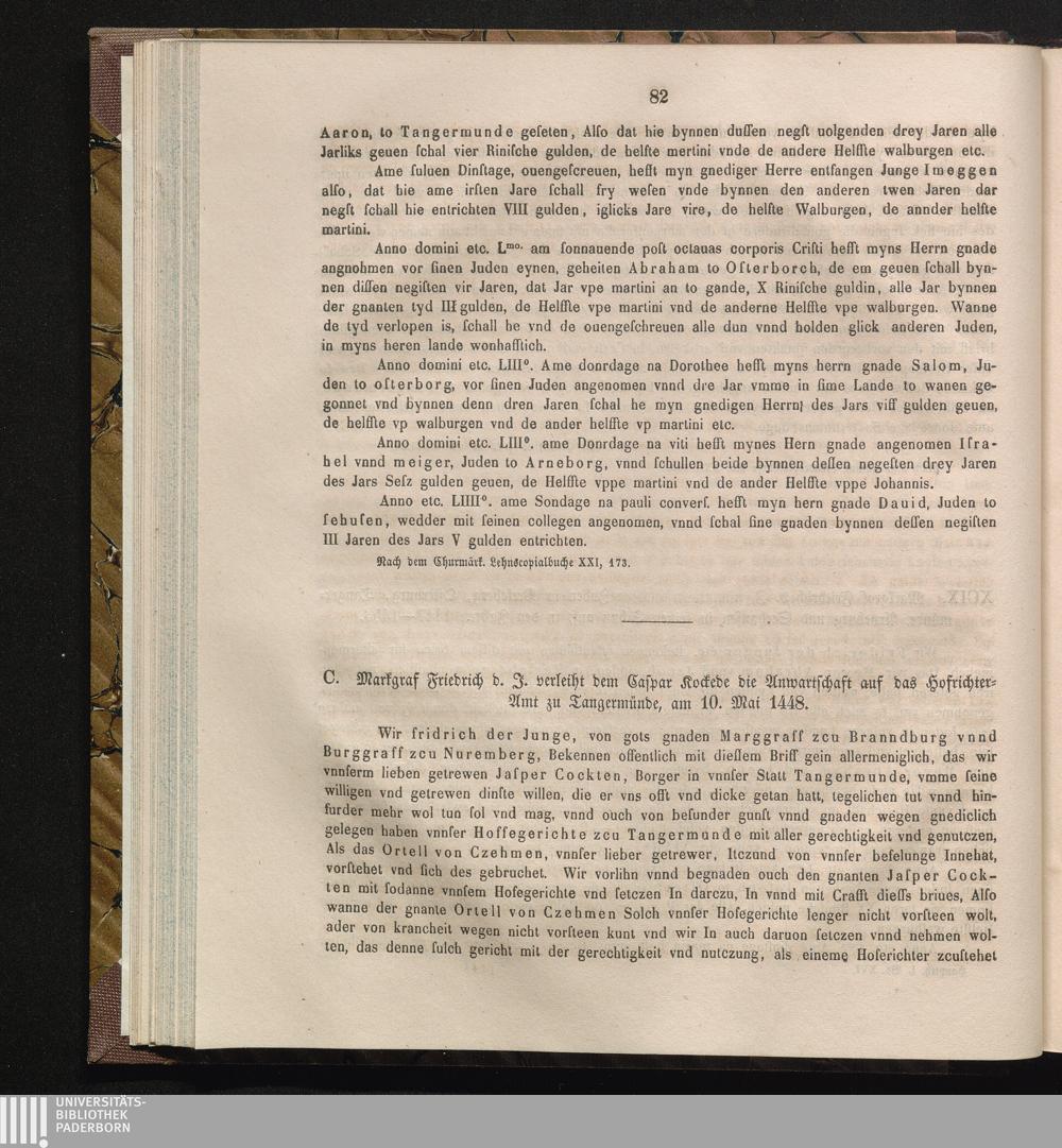C. Markgraf Friedrich d. J. verleiht dem Caspar Kockede die Anwartschaft auf das[...]