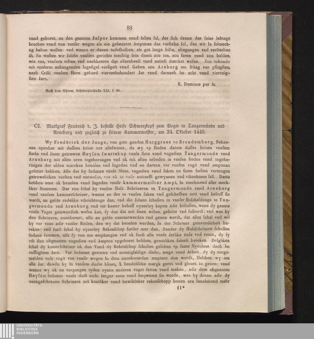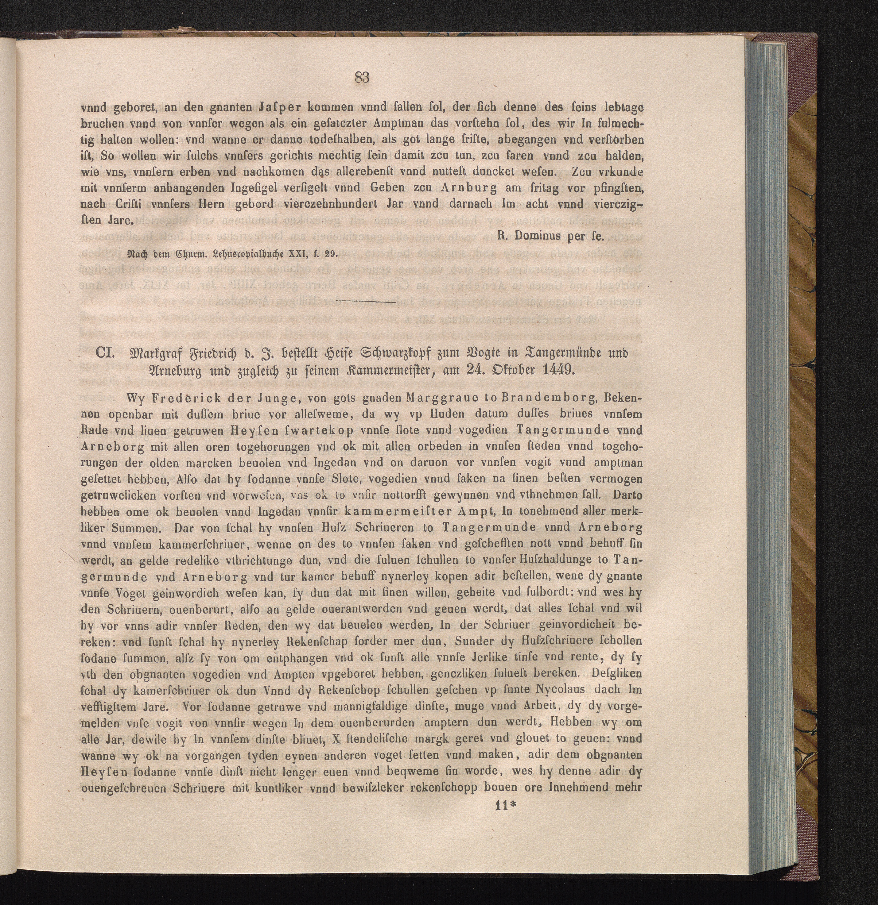CI. Markgraf Friedrich d. J. bestellt Heise Schwarzkopf zum Vogte in Tangermünde[...]