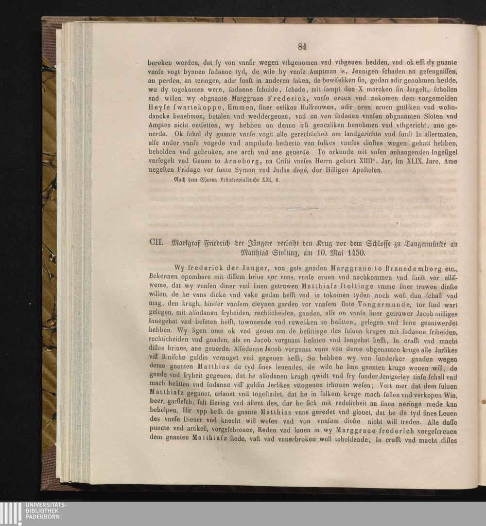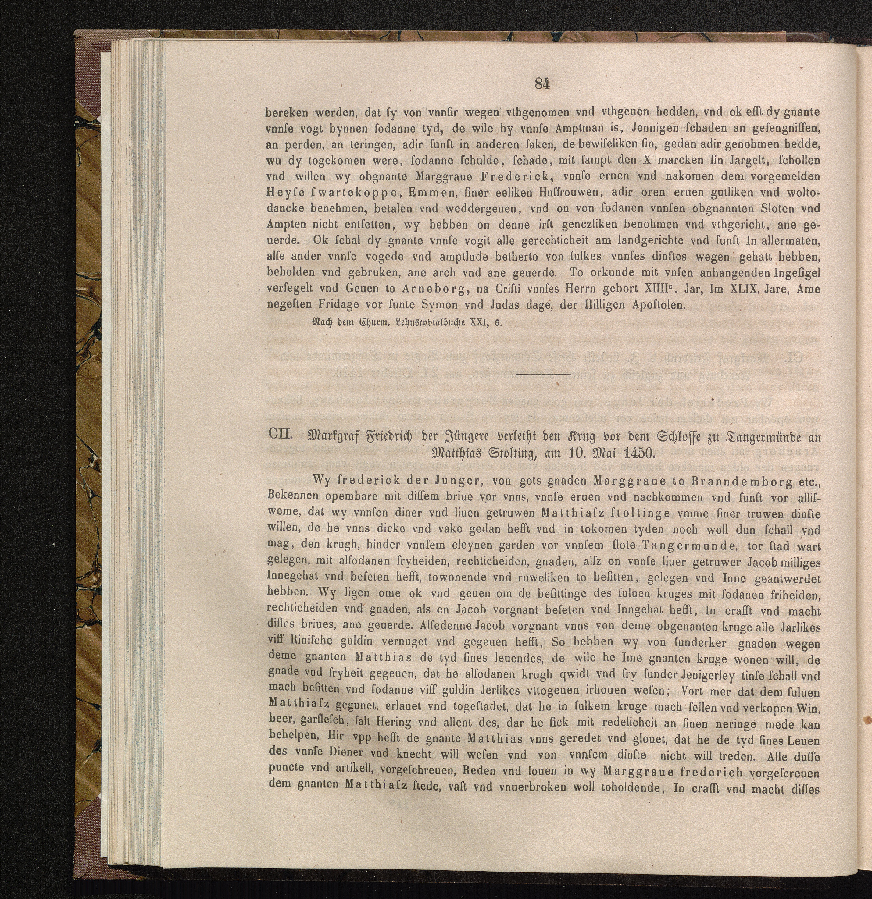 CII. Markgraf Friedrich der Jüngere verleiht den Krug vor dem Schlosse zu Tangermünde[...]