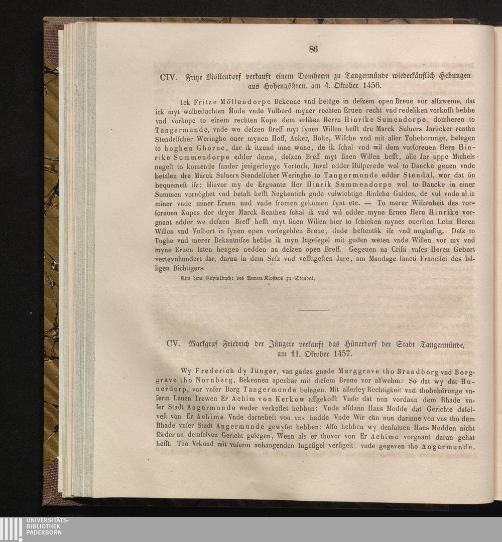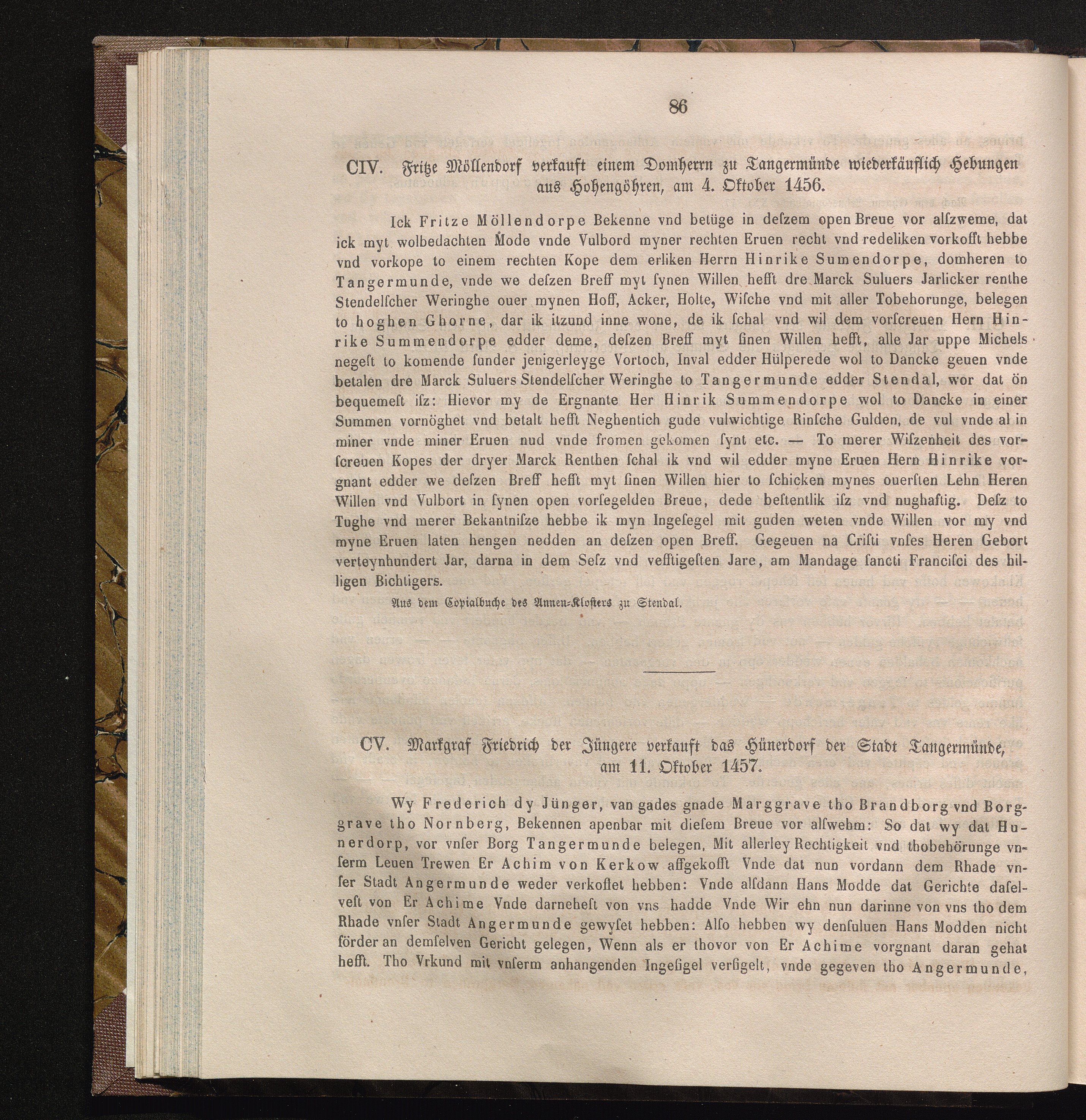 CV. Markgraf Friedrich der Jüngere verkauft das Hünerdorf der Stadt Tangermünde,[...]