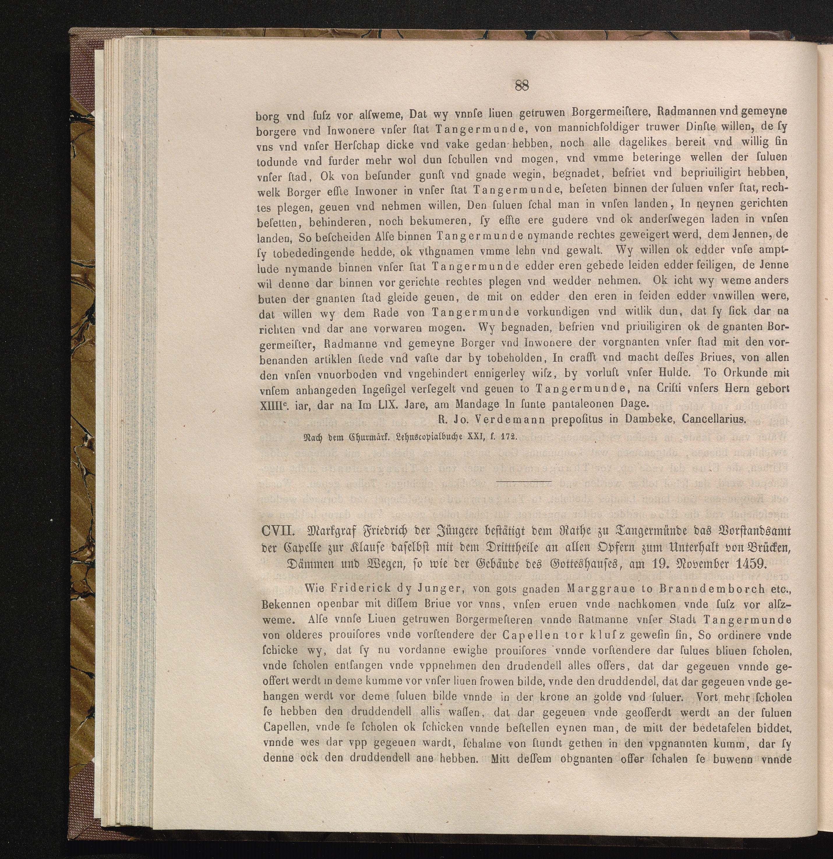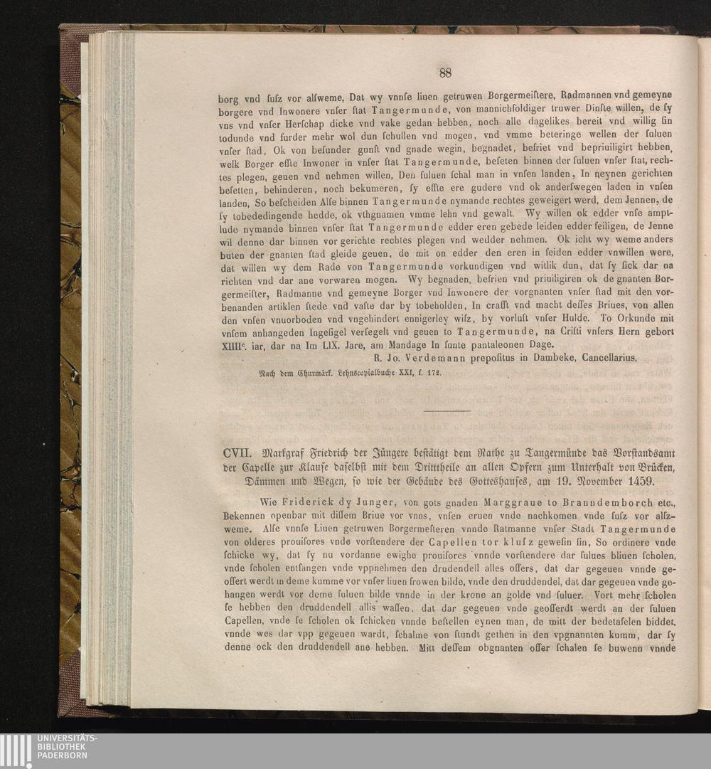 CVII. Markgraf Friedrich der Jüngere bestätigt dem Rathe zu Tangermünde das Vorstandsamt[...]