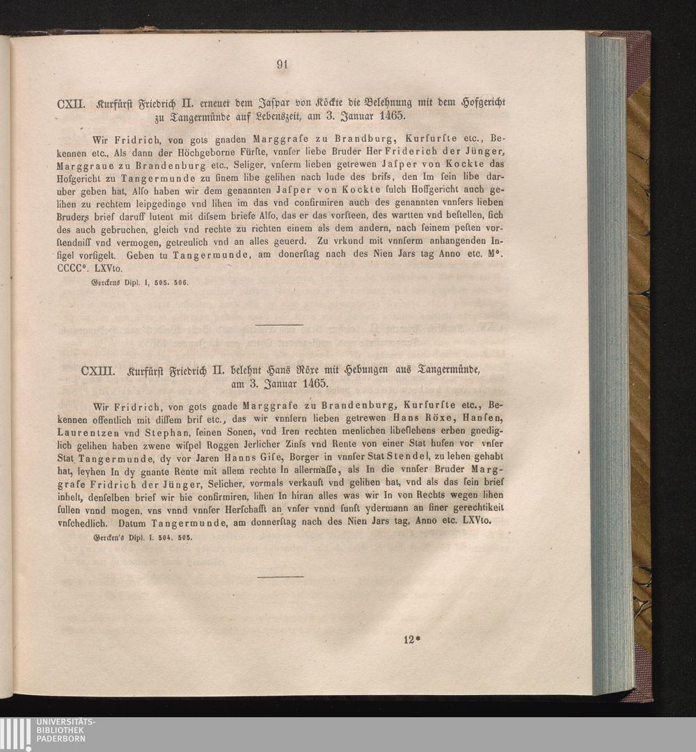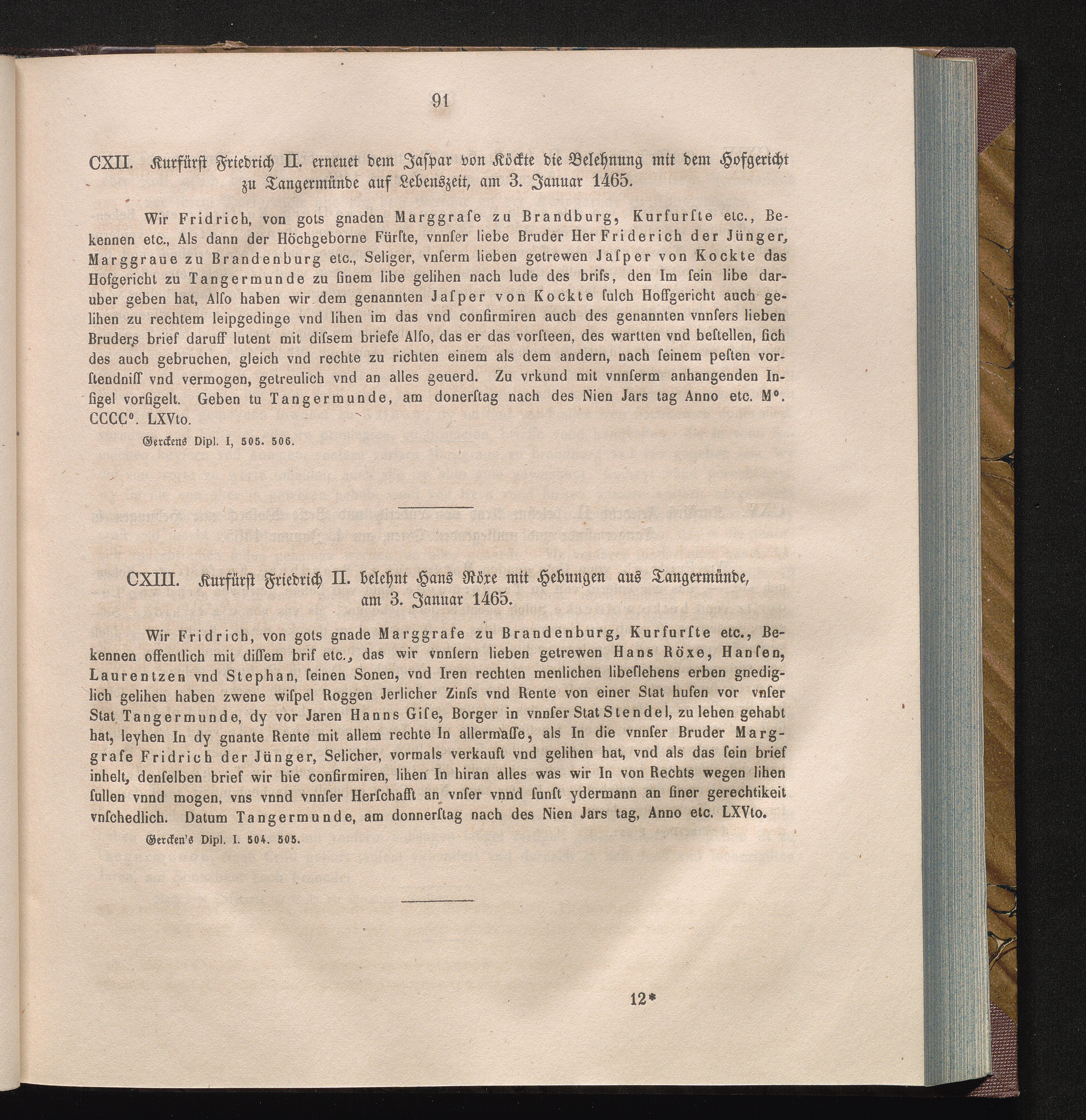 CXIII. Kurfürst Friedrich II. belehnt Hans Röxe mit Hebungen aus Tangermünde, am[...]