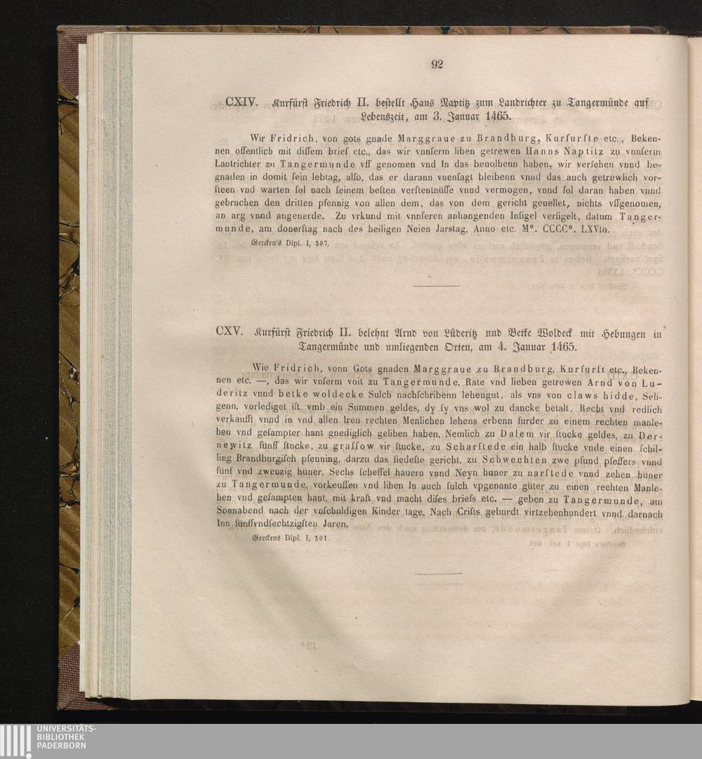 CXV. Kurfürst Friedrich II. belehnt Arnd von Lüderitz und Betke Woldeck mit Hebungen[...]