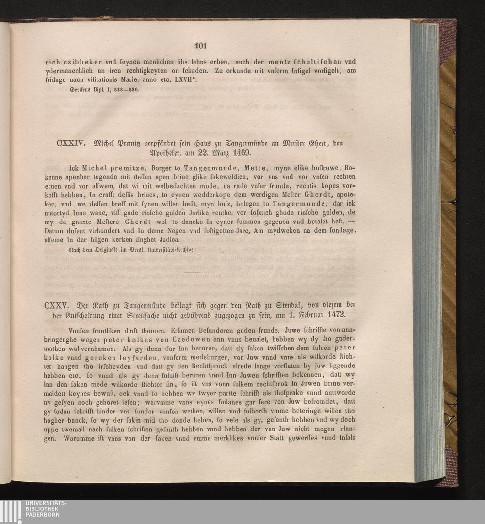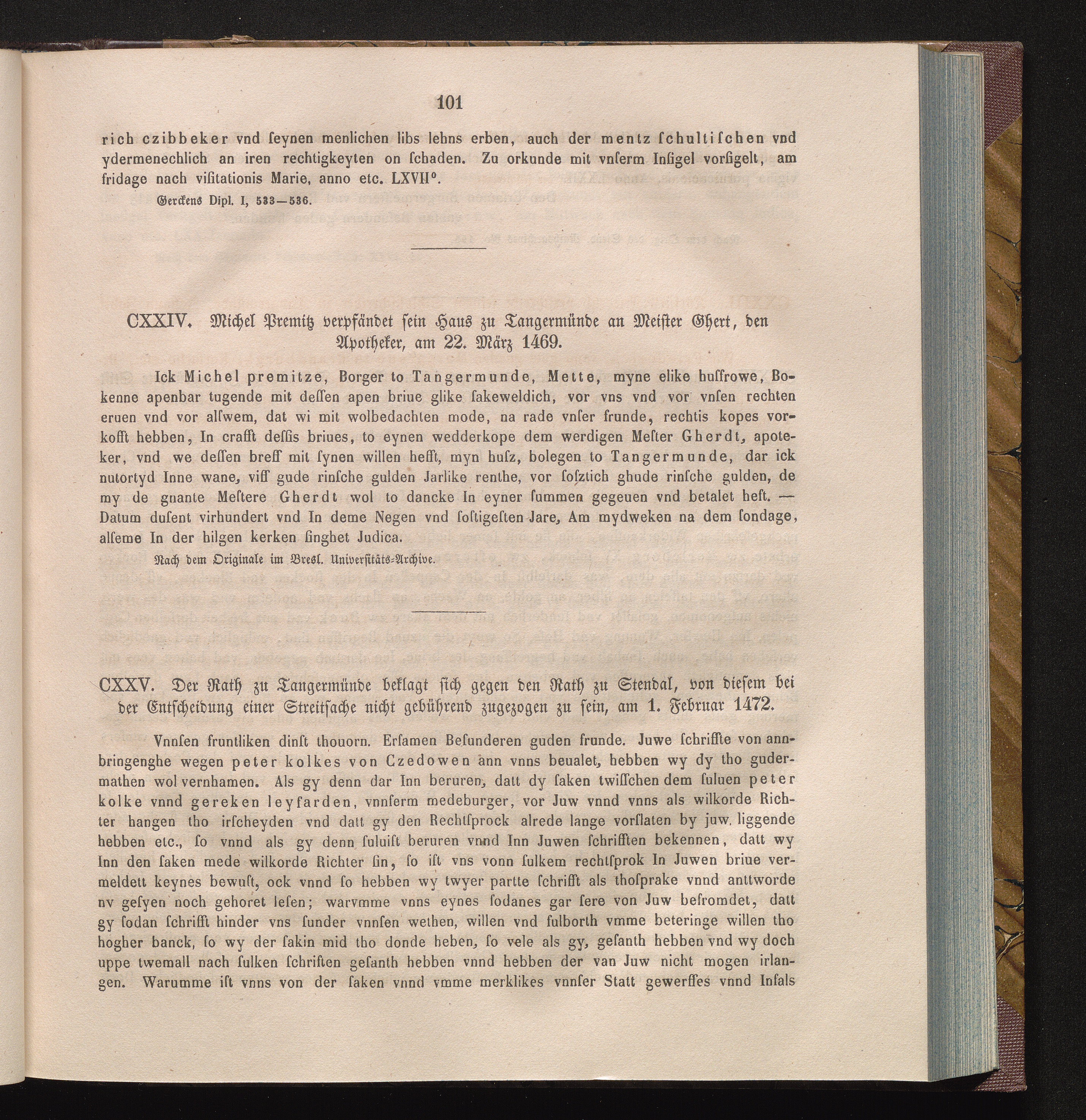 CXXV. Der Rath zu Tangermünde beklagt sich gegen den Rath zu Stendal, von diesem[...]