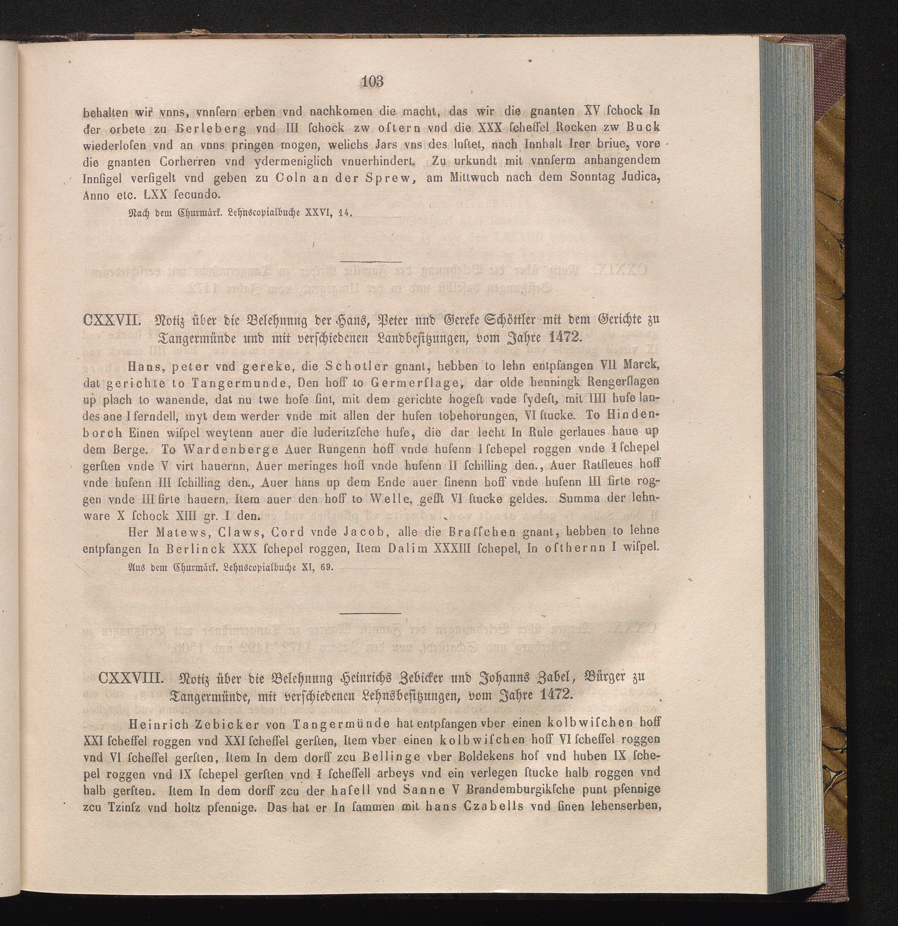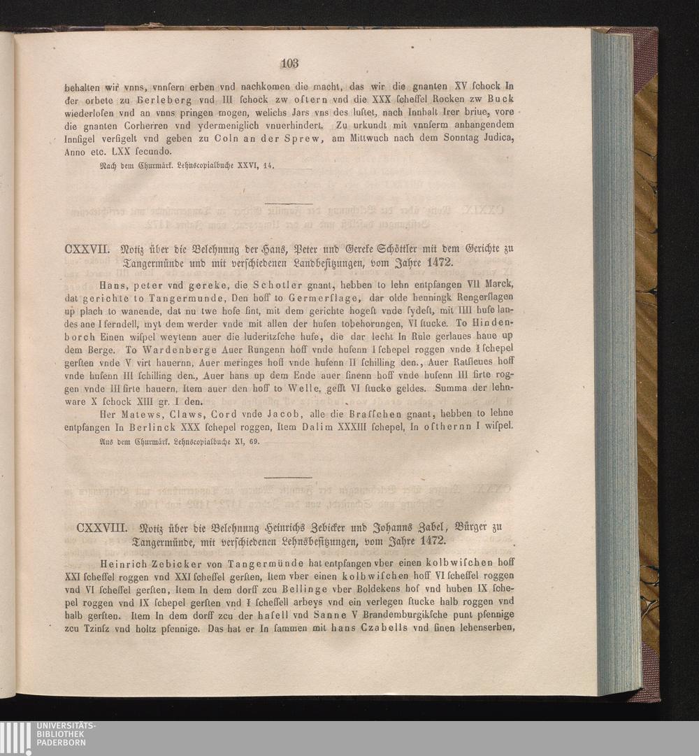 CXXVIII. Notiz über die Belehnung Heinrichs Zebicker und Johanns Zabel, Bürger zu[...]