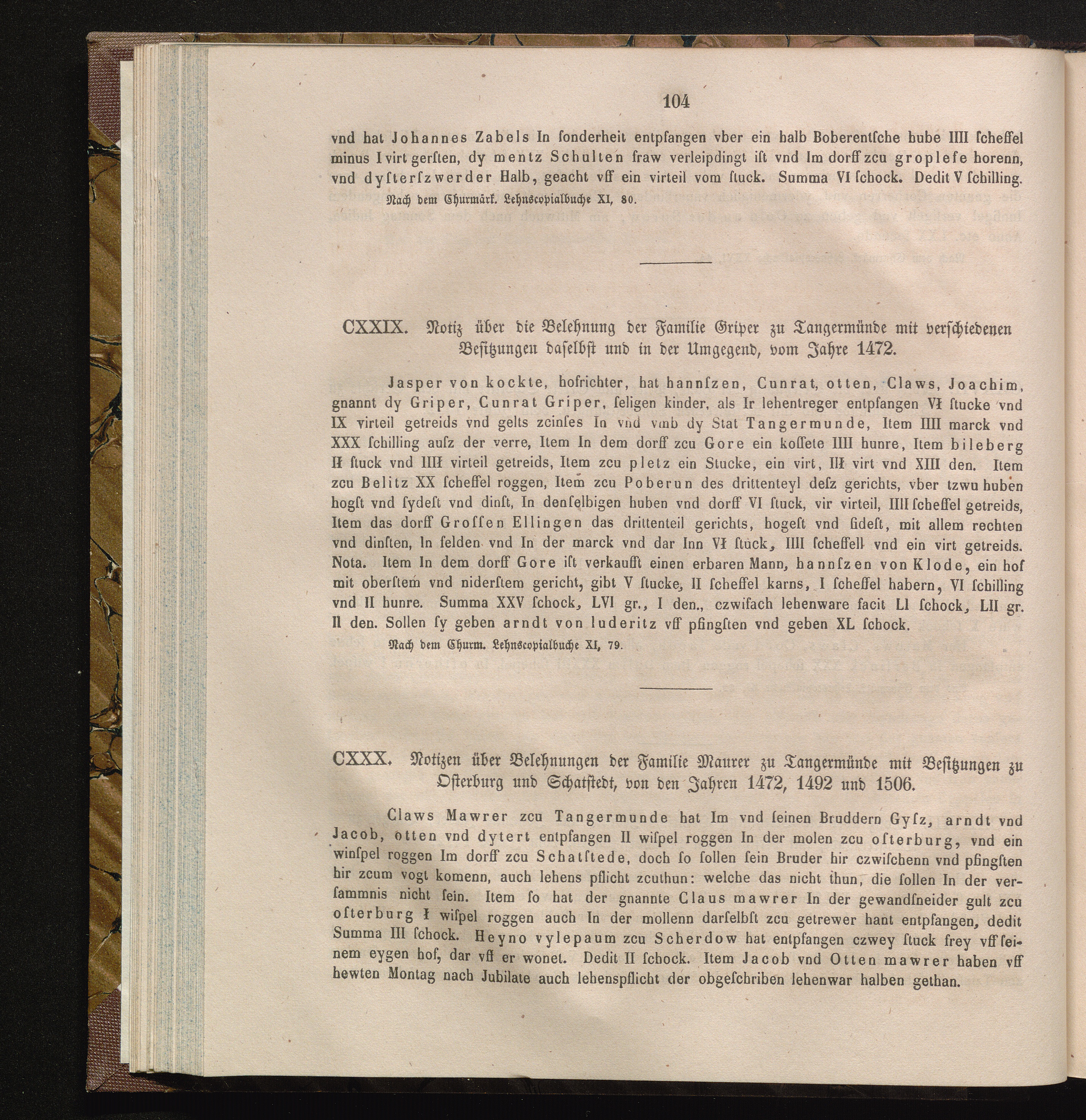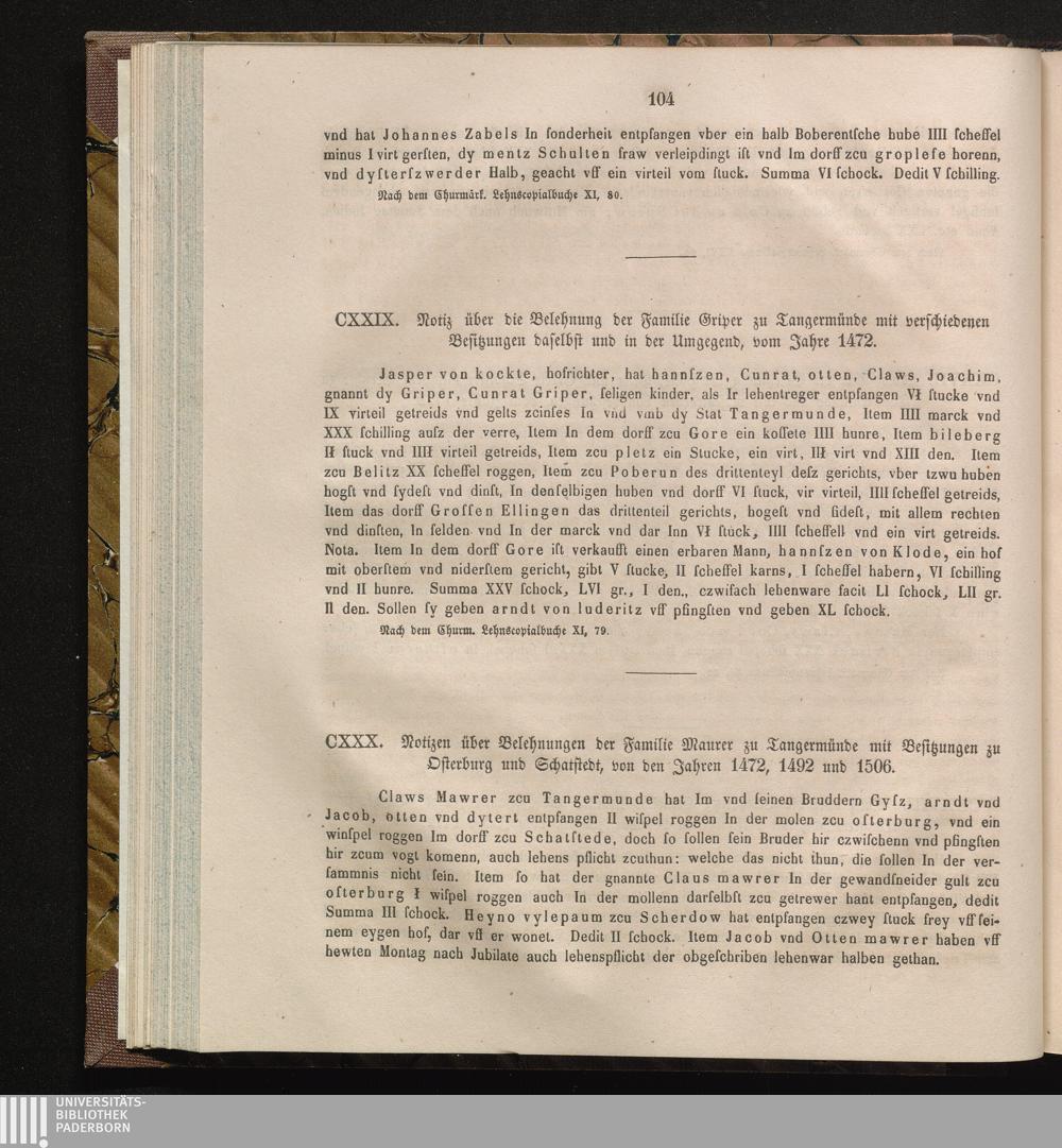 CXXX. Notizen über die Belehnungen der Familie Maurer zu Tangermünde mit Besitzungen[...]