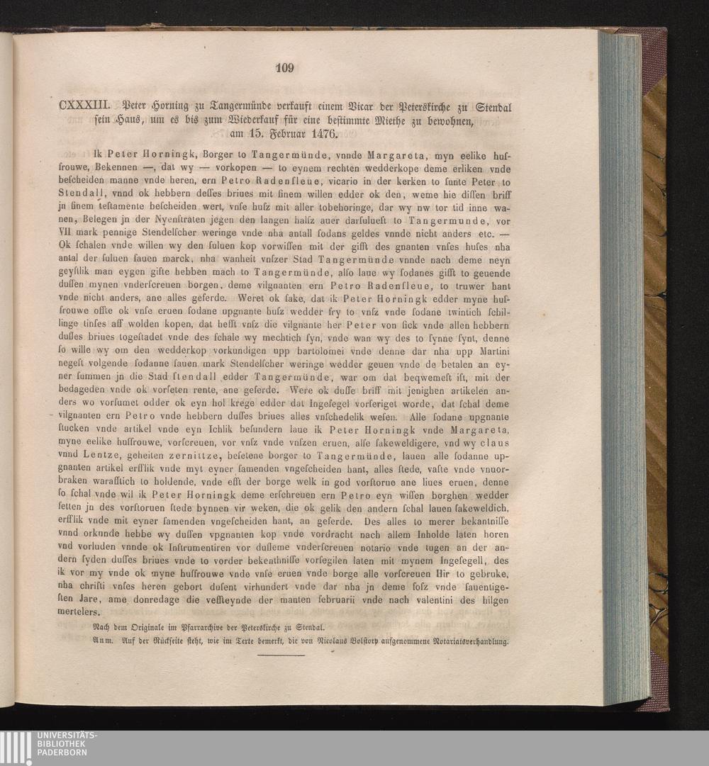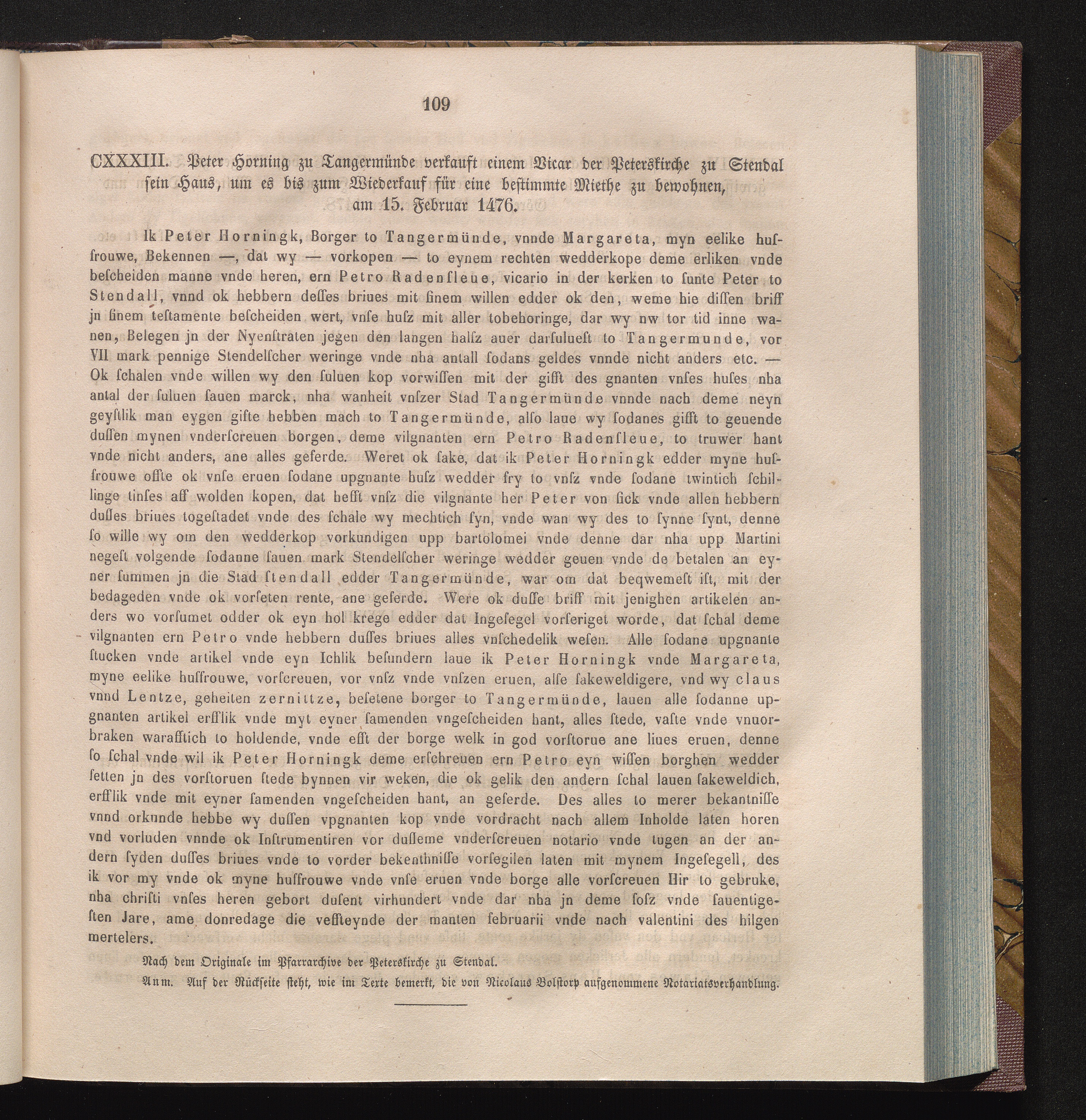 CXXXIII. Peter Horning zu Tangermünde verkauft einem Vicar der Peterskirche zu Stendal[...]