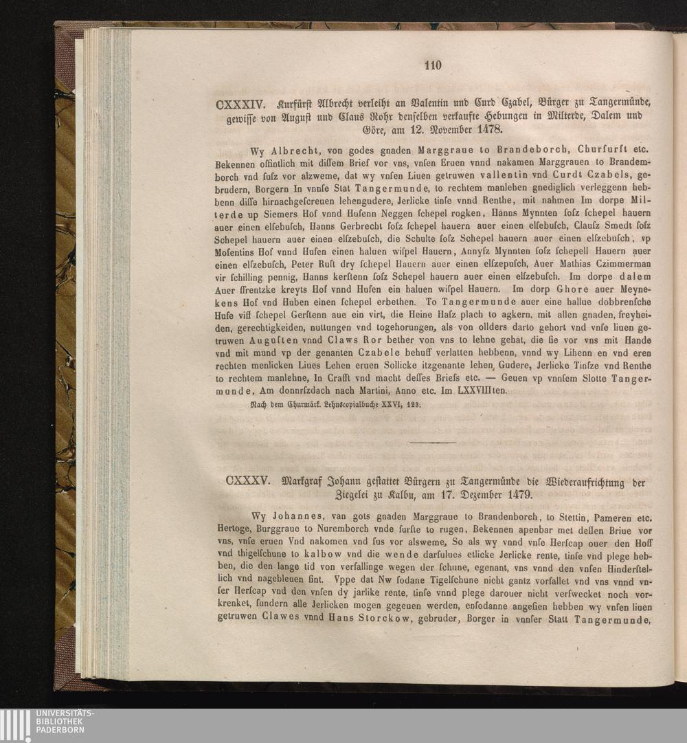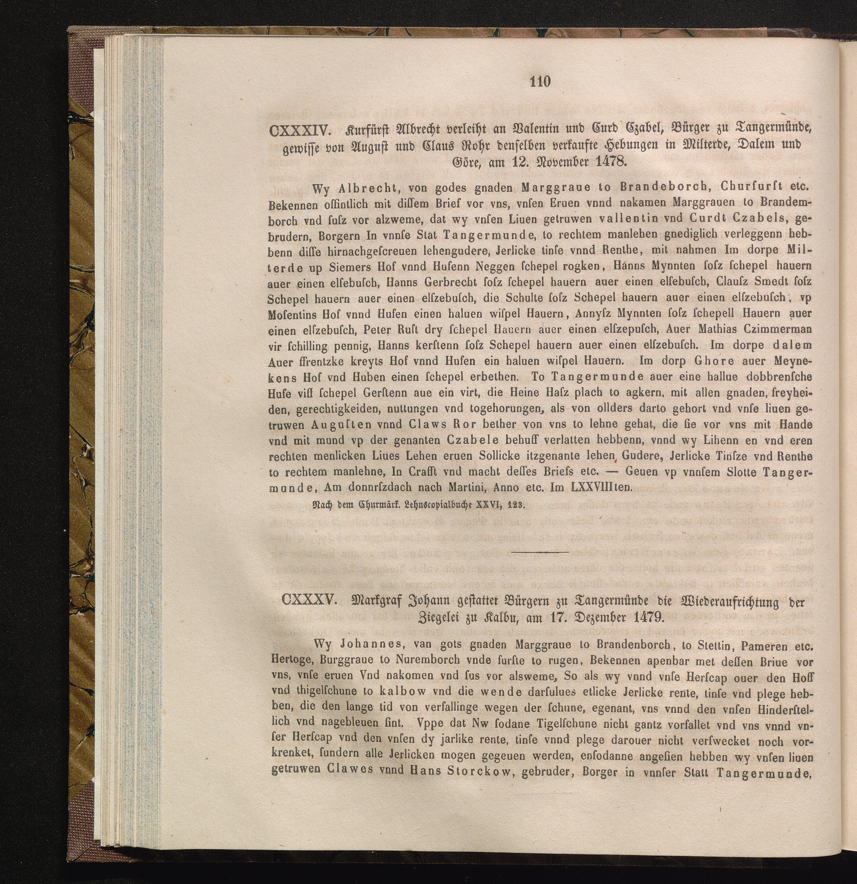 CXXXV. Markgraf Johann gestattet Bürgern zu Tangermünde die Wiederaufrichtung der[...]