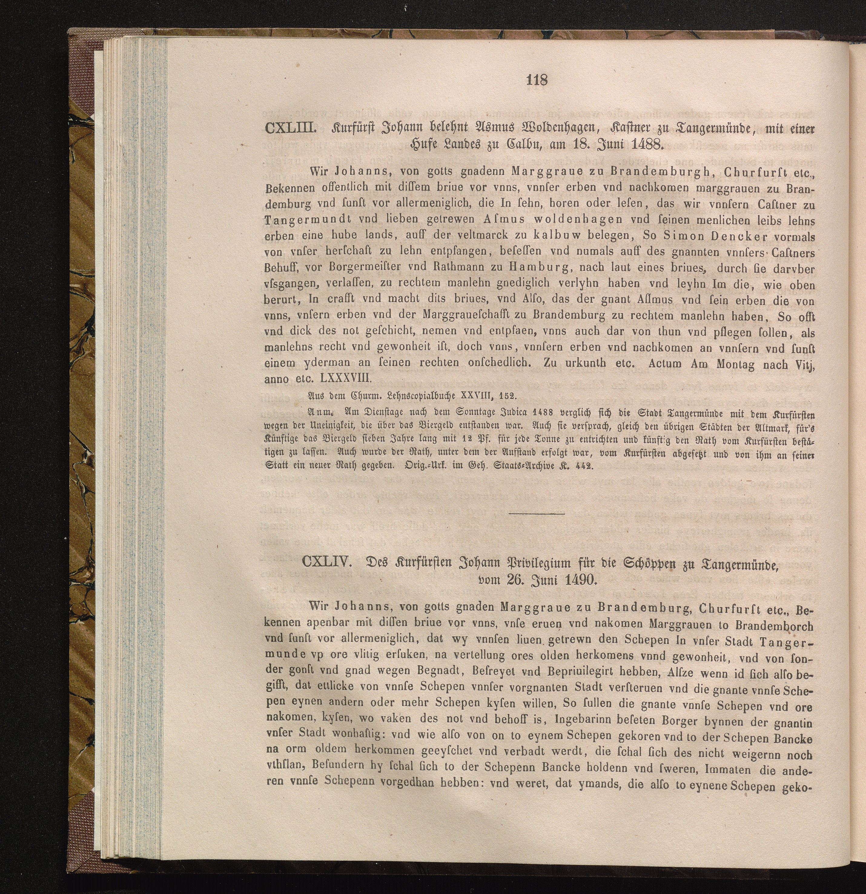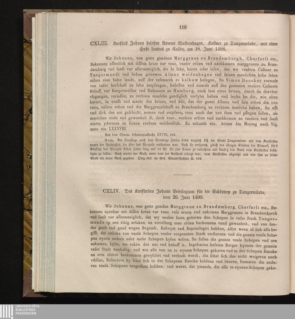 CXLIV. Des Kurfürsten Johann Privilegium für die Schöppen zu Tangermünde, vom 26.[...]