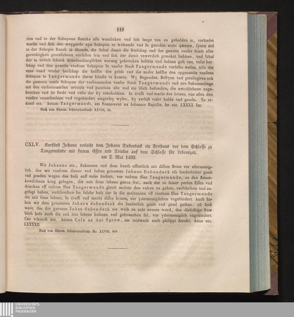 CXLV. Kurfürst Johann verleiht dem Johann Dubendack ein Freihaus vor dem Schlosse[...]