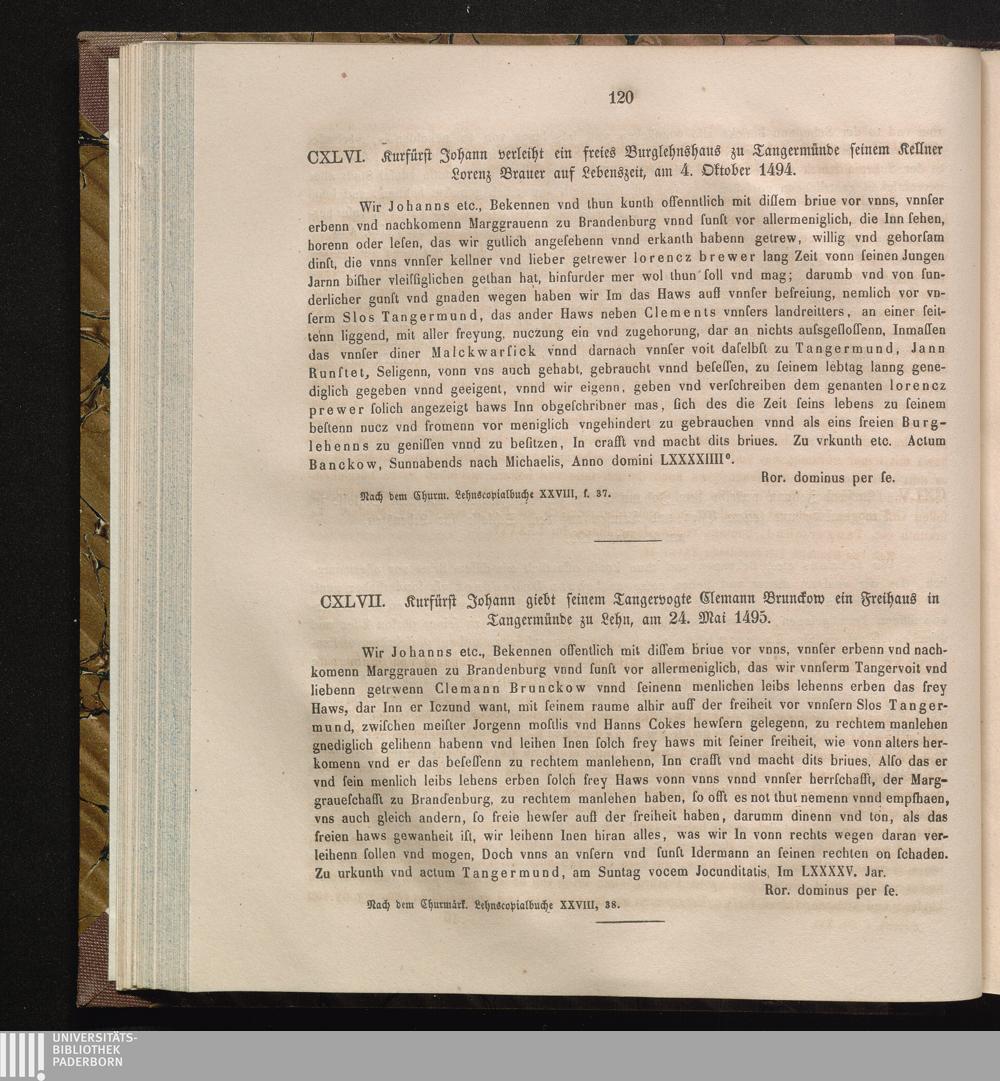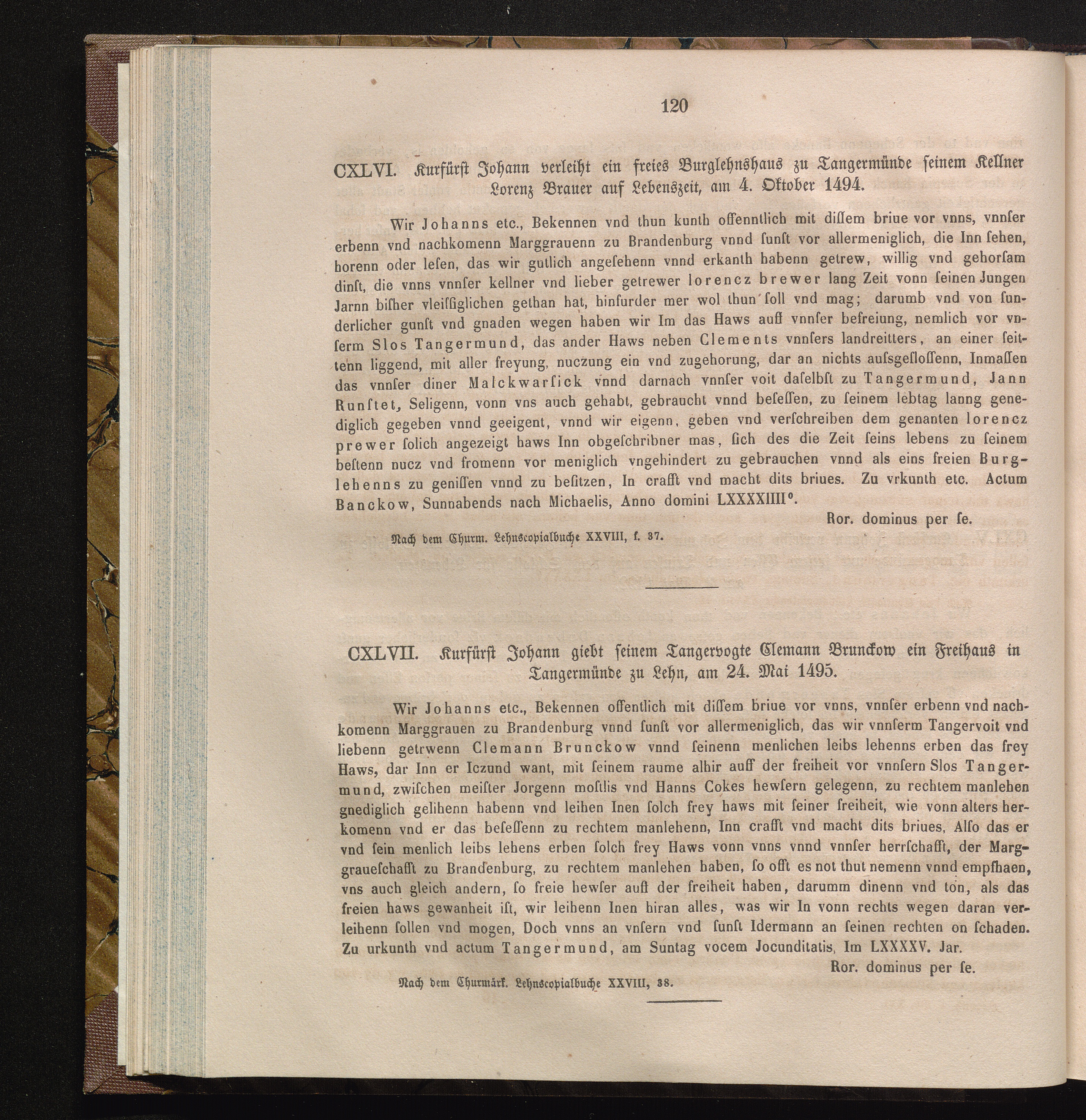 CXLVII. Kurfürst Johann giebt seinem Tangervogte Clemann Brunckow ein Freihaus in[...]