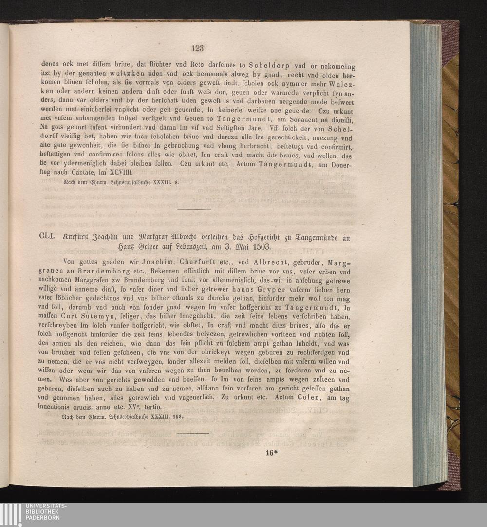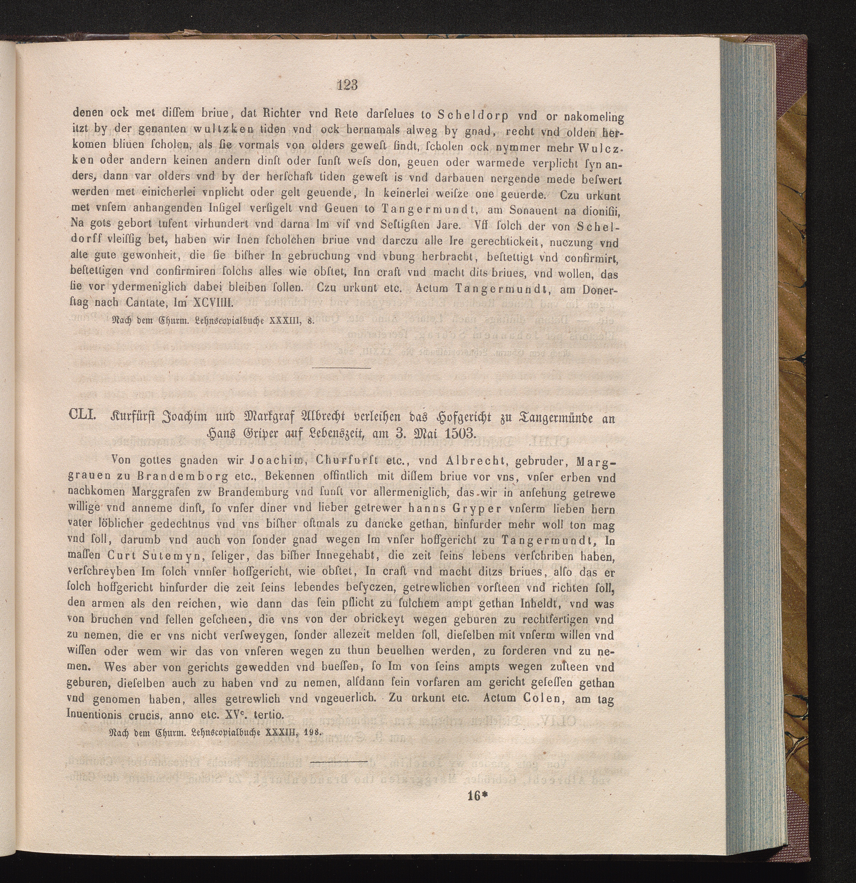 CLI. Kurfürst Joachim und Markgraf Albrecht verleihen das Hofgericht zu Tangermünde[...]
