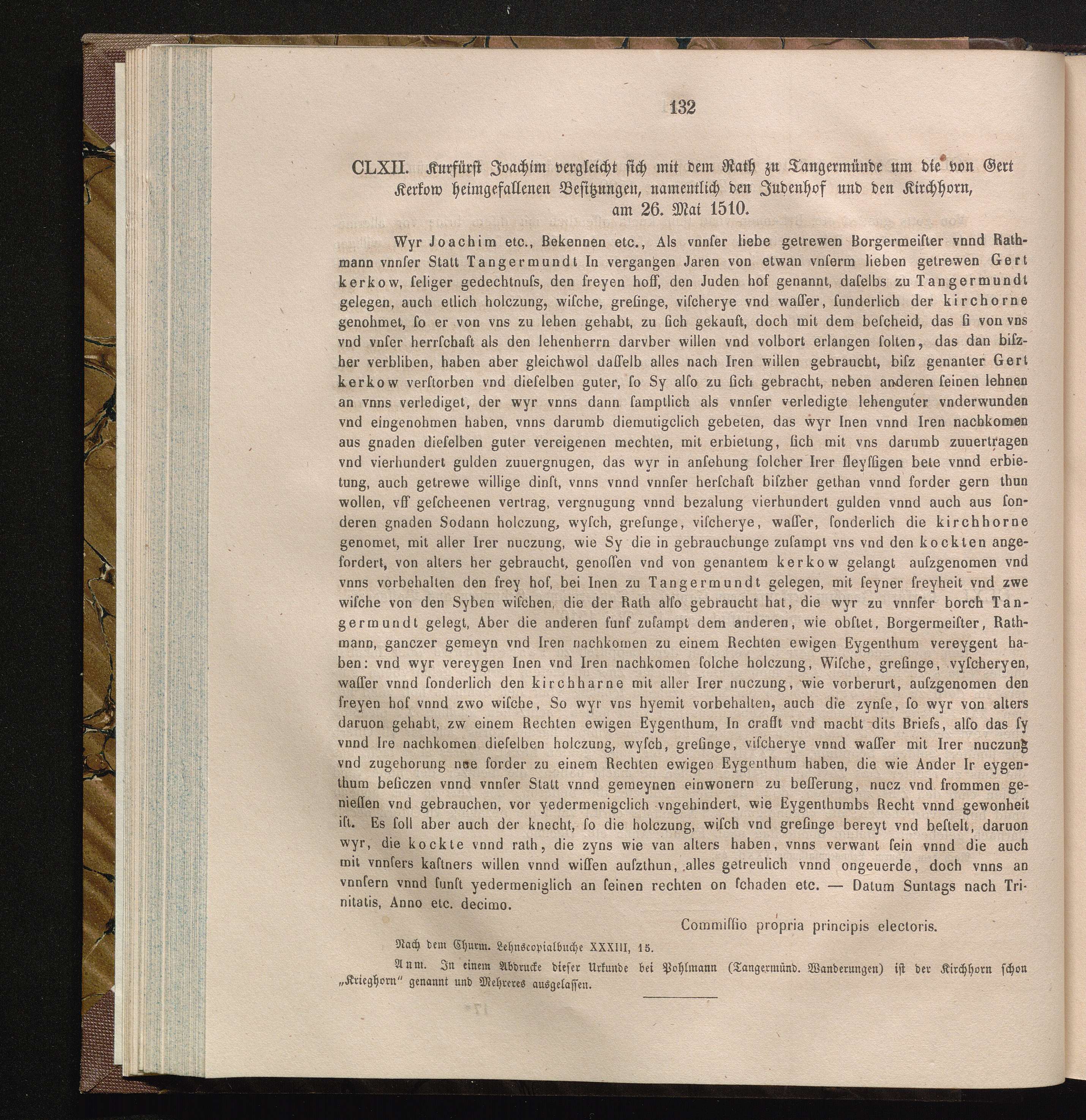 CLXII. Kurfürst Joachim vergleicht sich mit dem Rath zu Tangermünde um die von Gert[...]