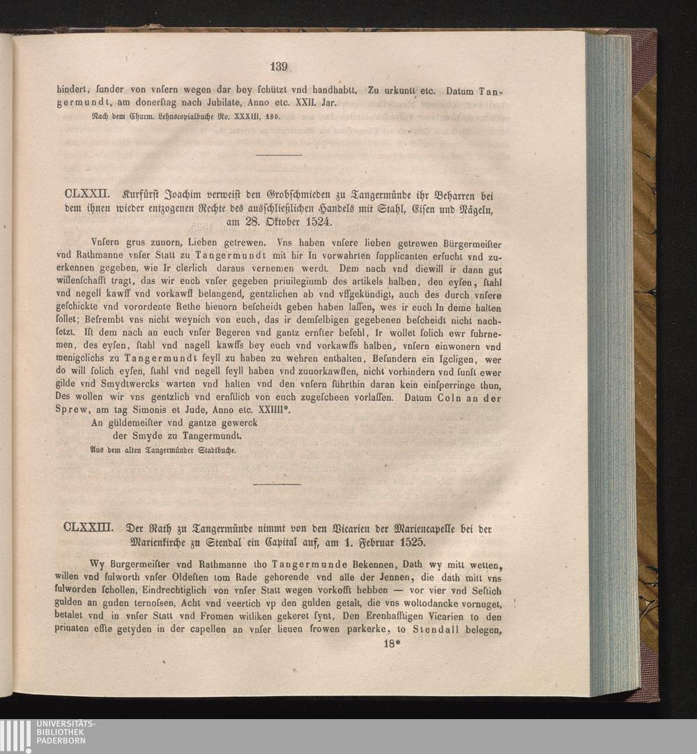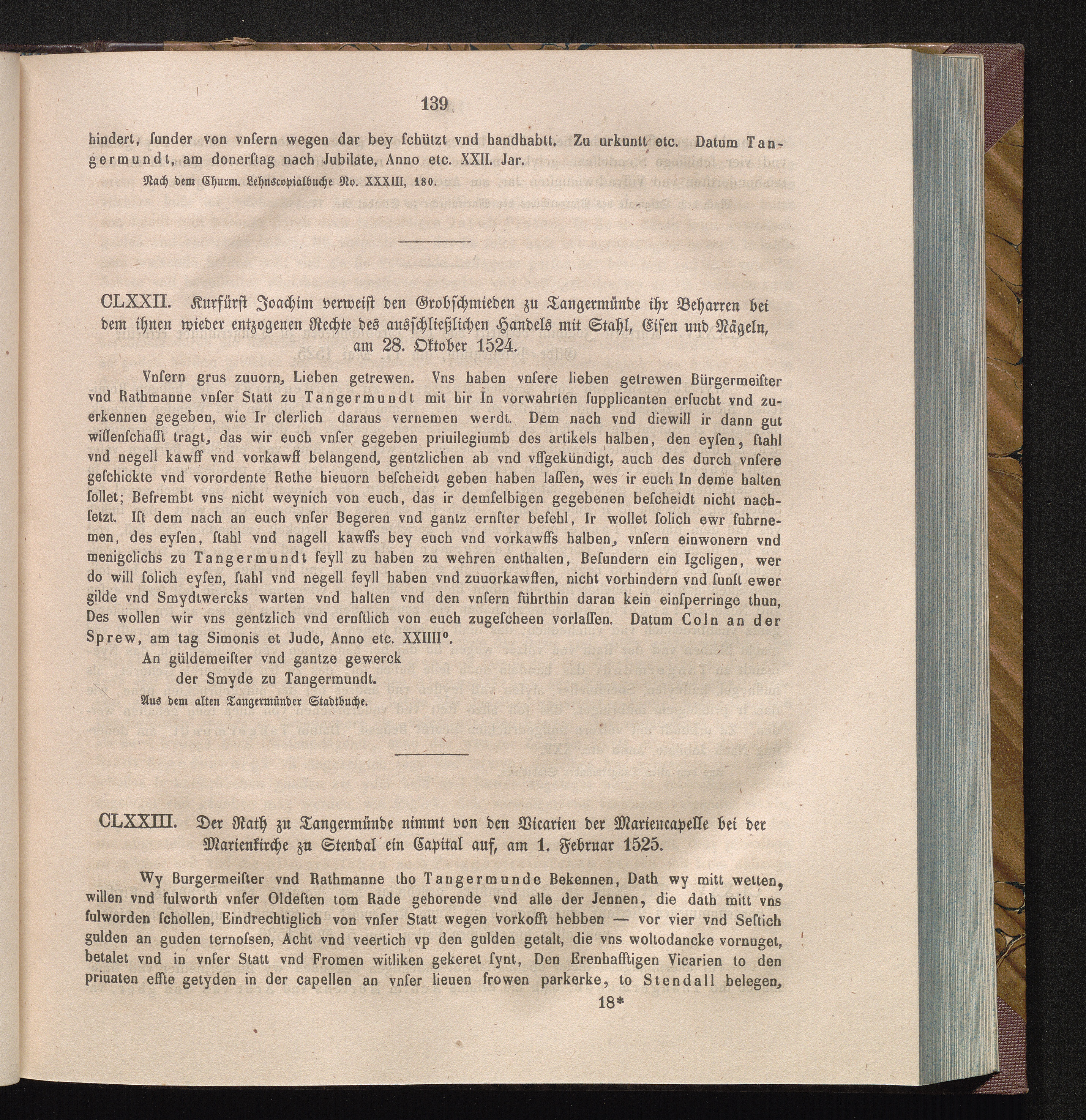 CLXXIII. Der Rath zu Tangermünde nimmt von den Vicarien der Mariencapelle bei der[...]