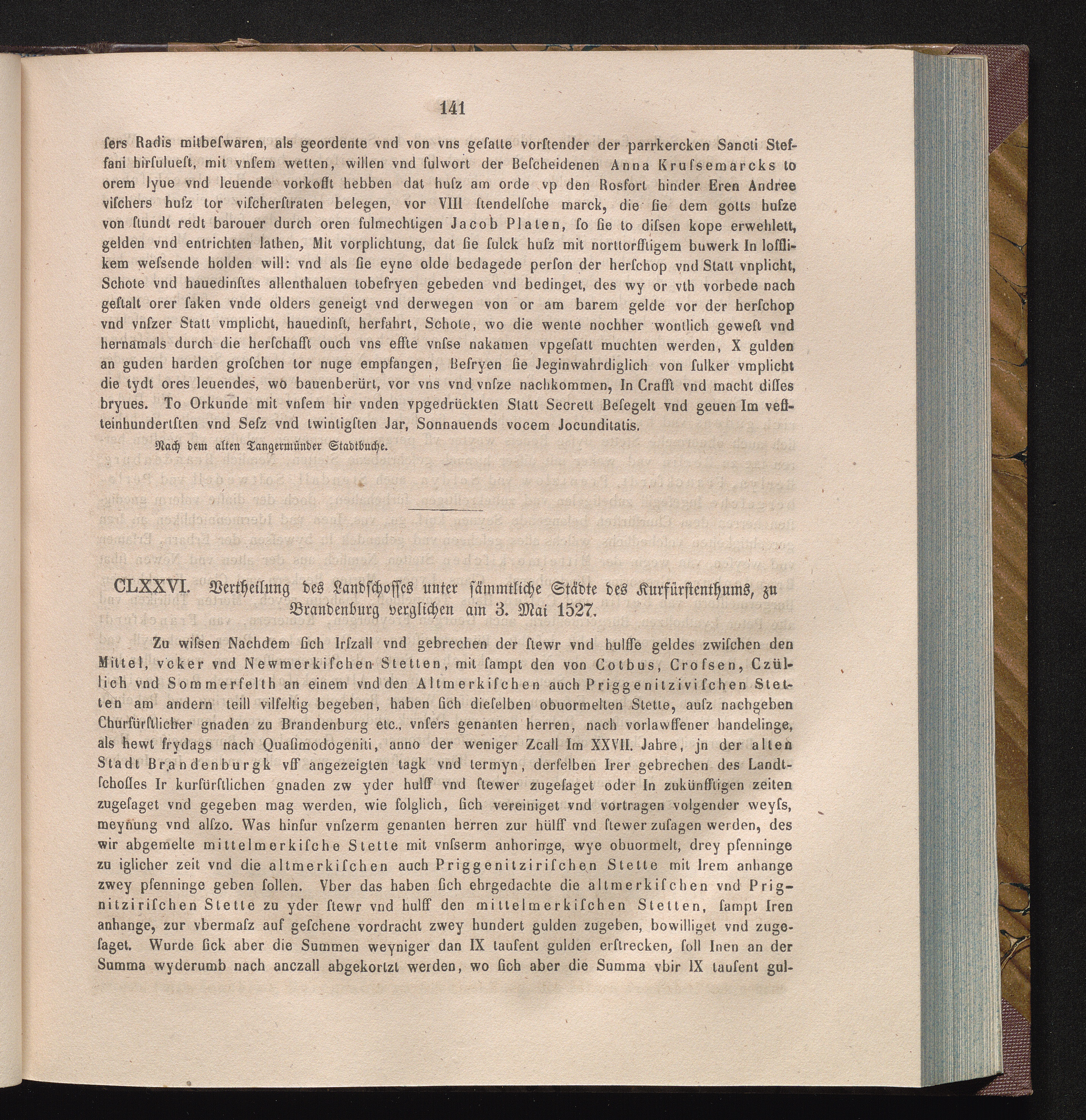 CLXXVI. Vertheilung des Landschosses unter sämmtliche Städte des Kurfürstenthums,[...]