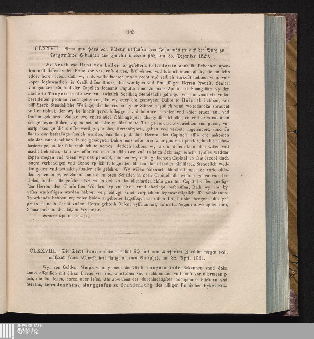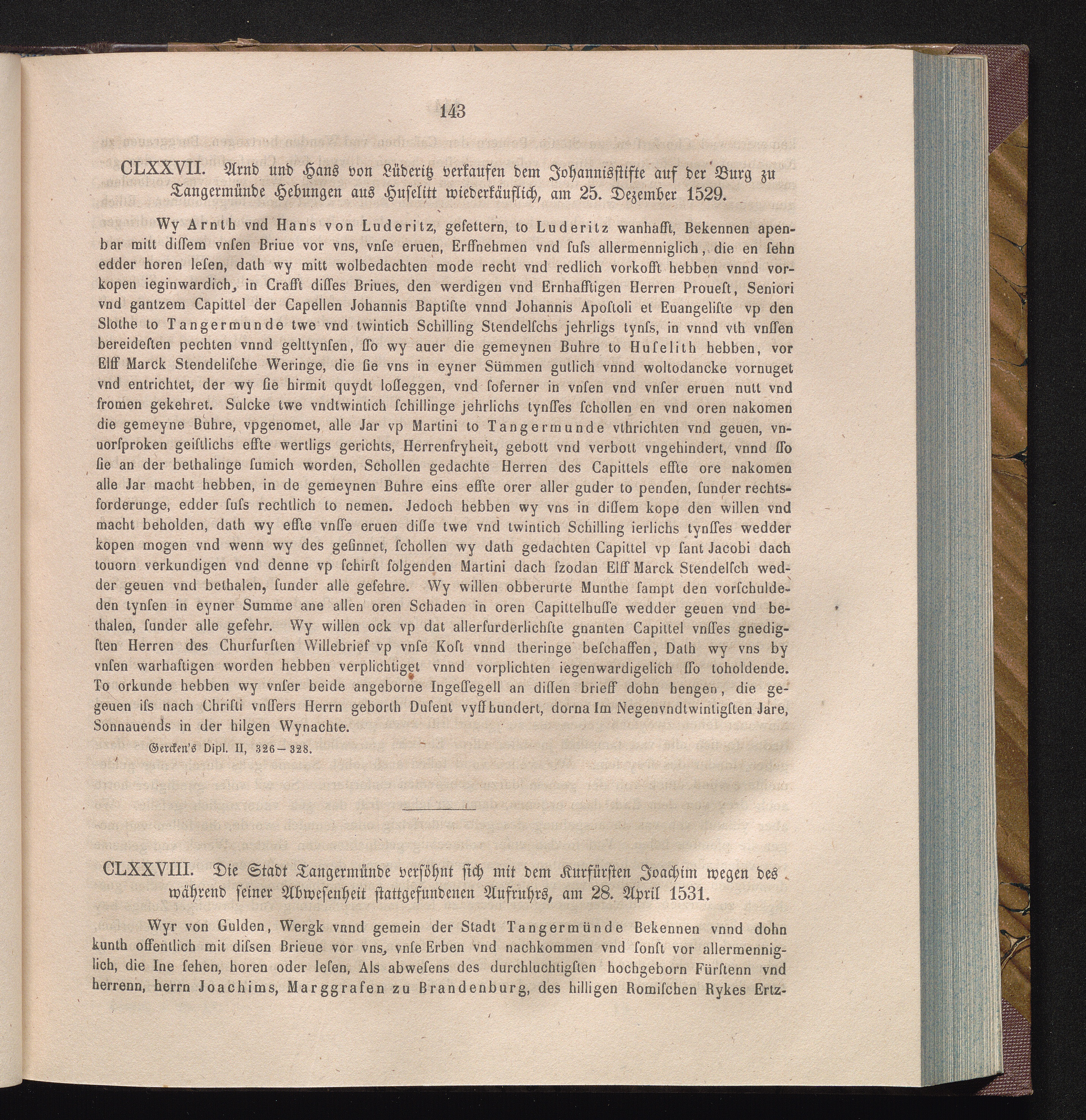 CLXXVIII. Die Stadt Tangermünde versöhnt sich mit dem Kurfürsten Joachim wegen des[...]