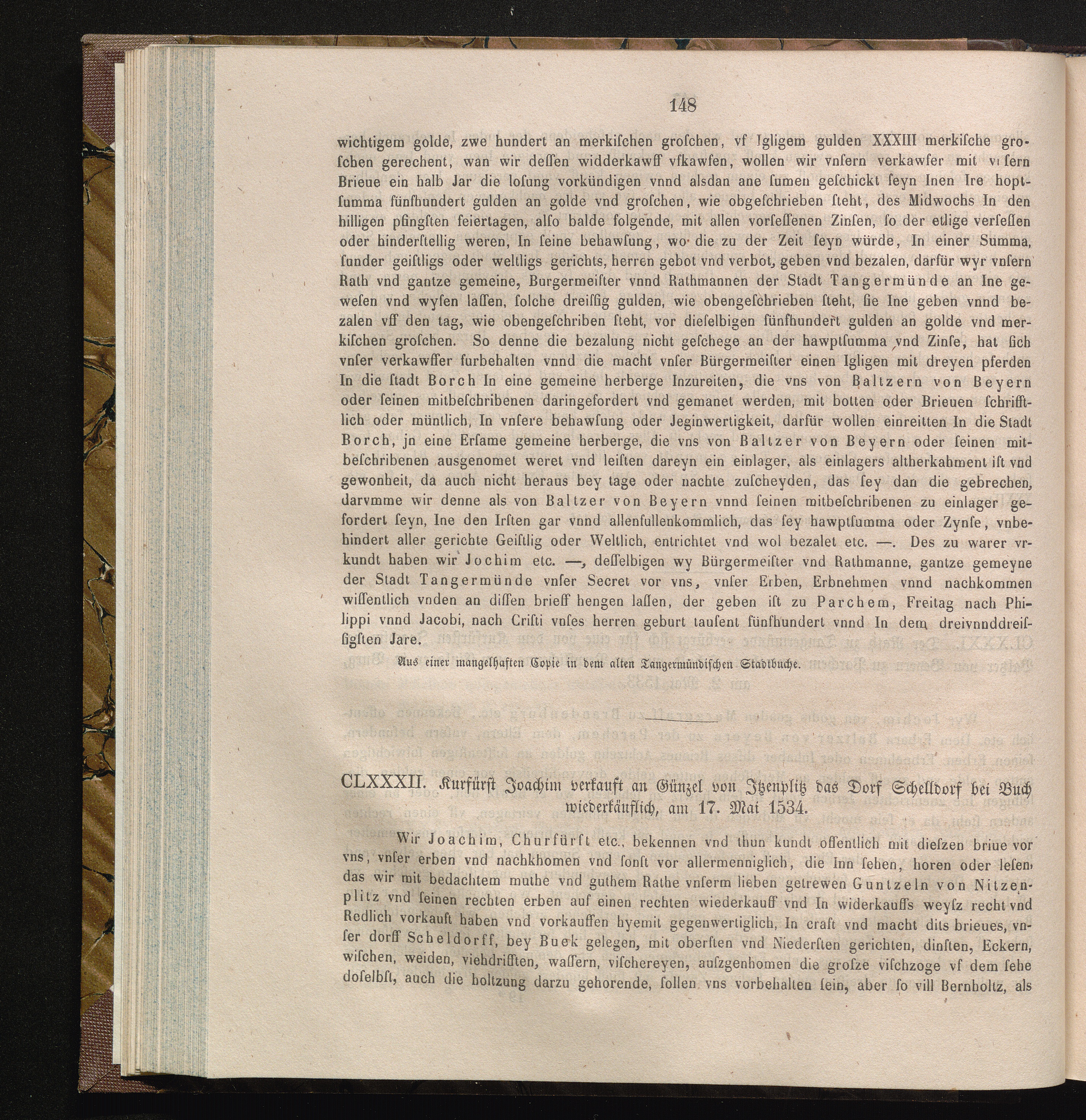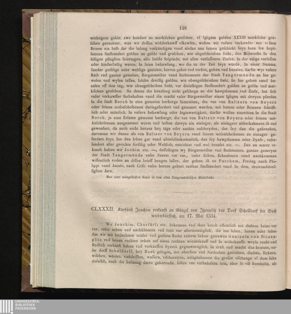 CLXXXII. Kurfürst Joachim verkauft an Günzel von Jtzenplitz das Dorf Schelldorf bei[...]