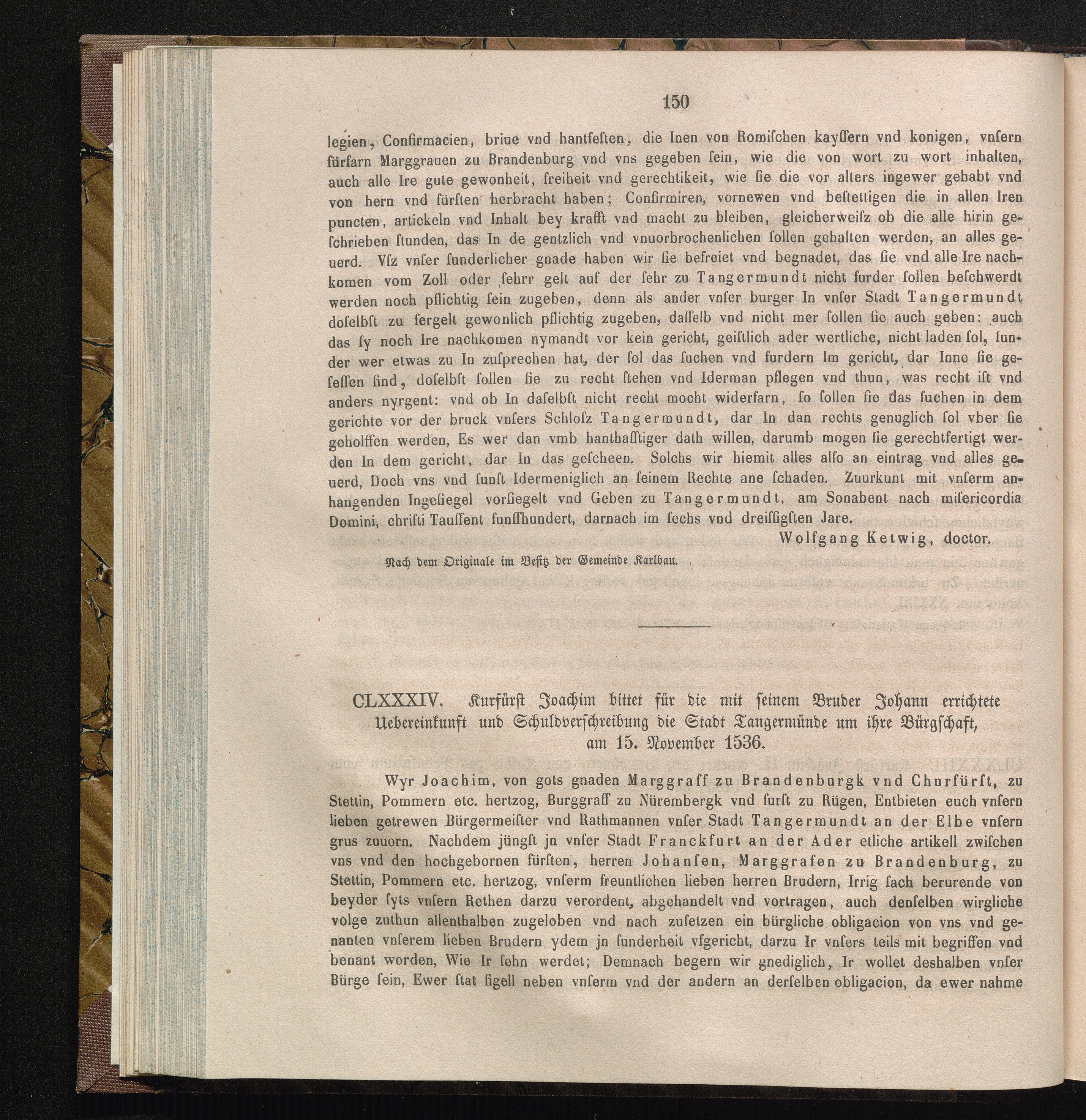 CLXXXIV. Kurfürst Joachim II. bittet für die mit seinem Bruder Johann errichtete[...]