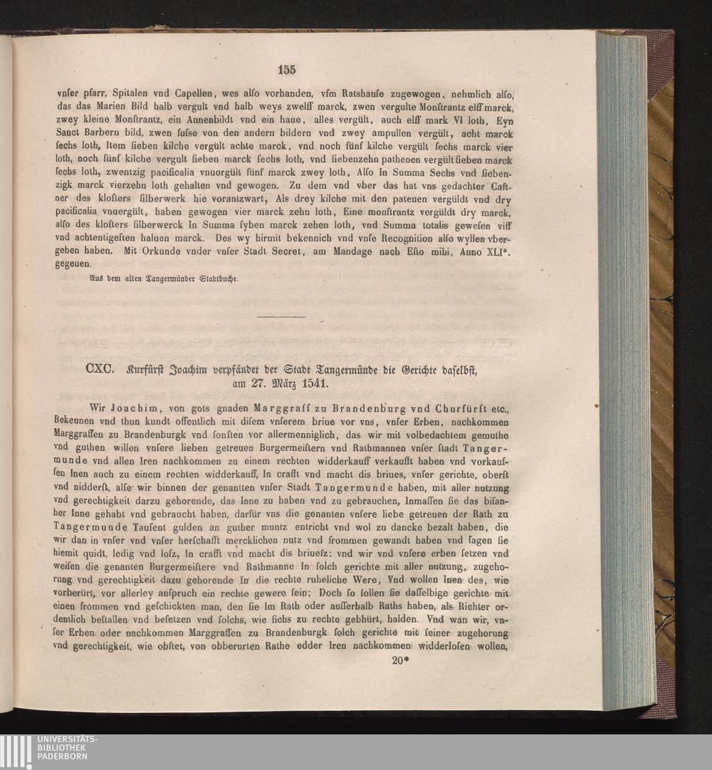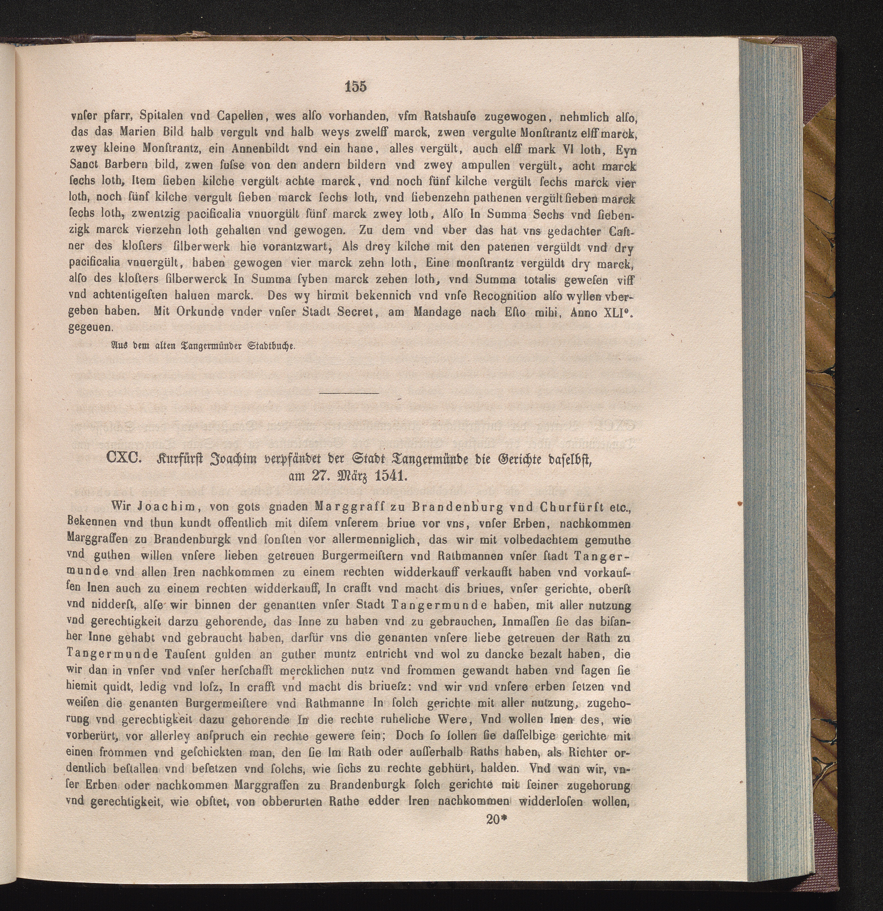 CXC. Kurfürst Joachim verpfändet der Stadt Tangermünde die Gerichte daselbst, am[...]