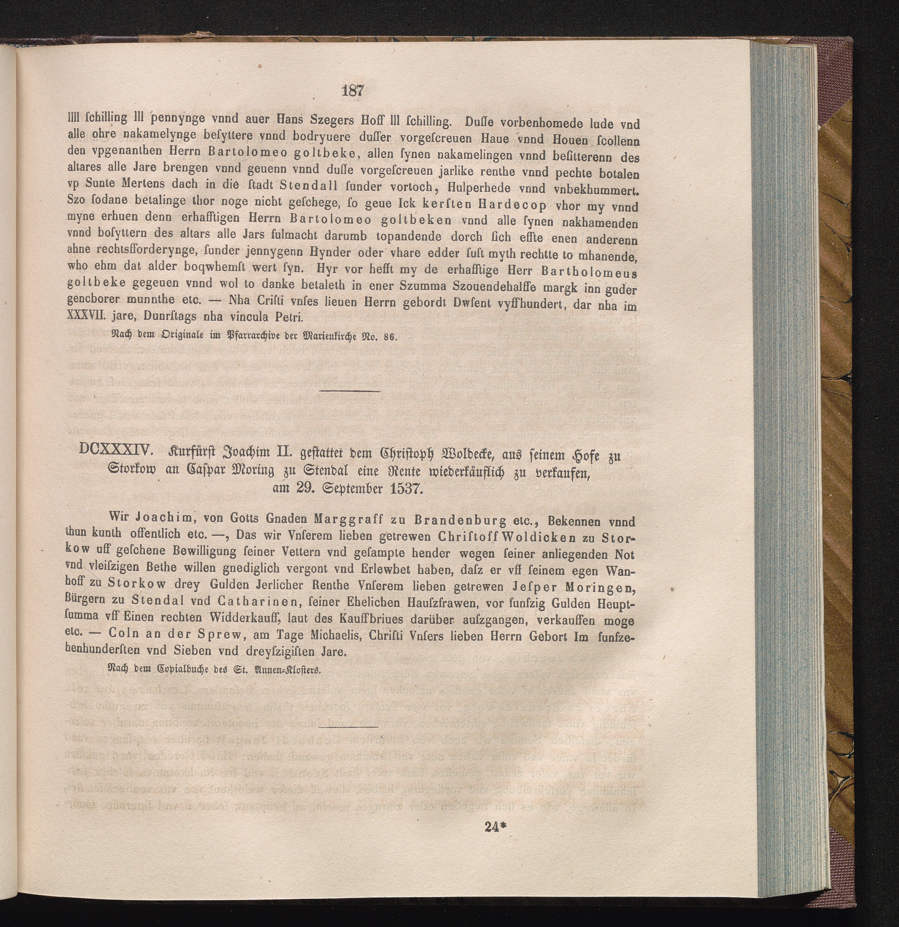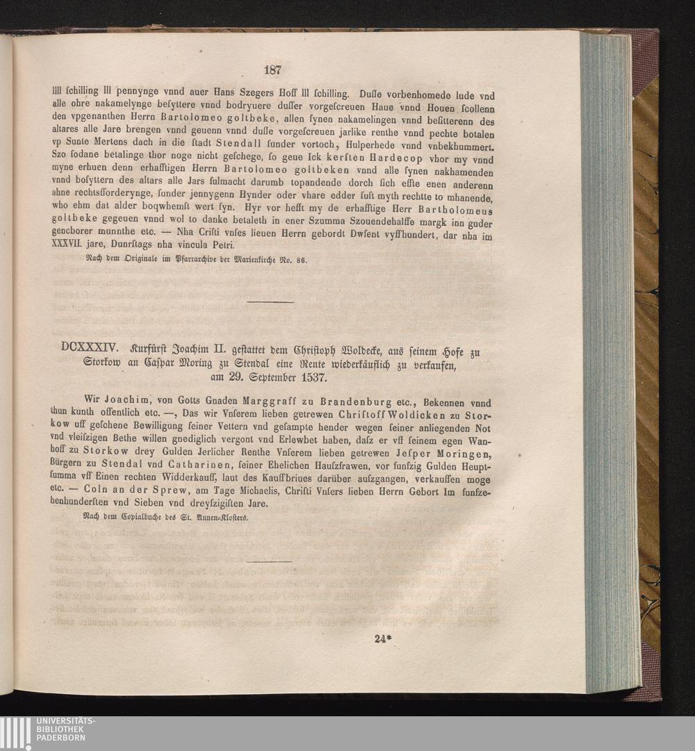 DCXXXIV. Kurfürst Joachim II. gestattet dem Christoph Woldecke, aus seinem Hofe zu[...]