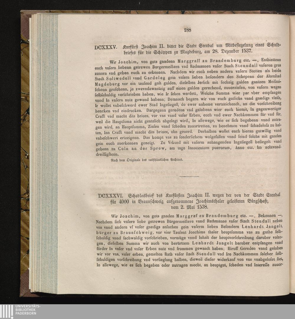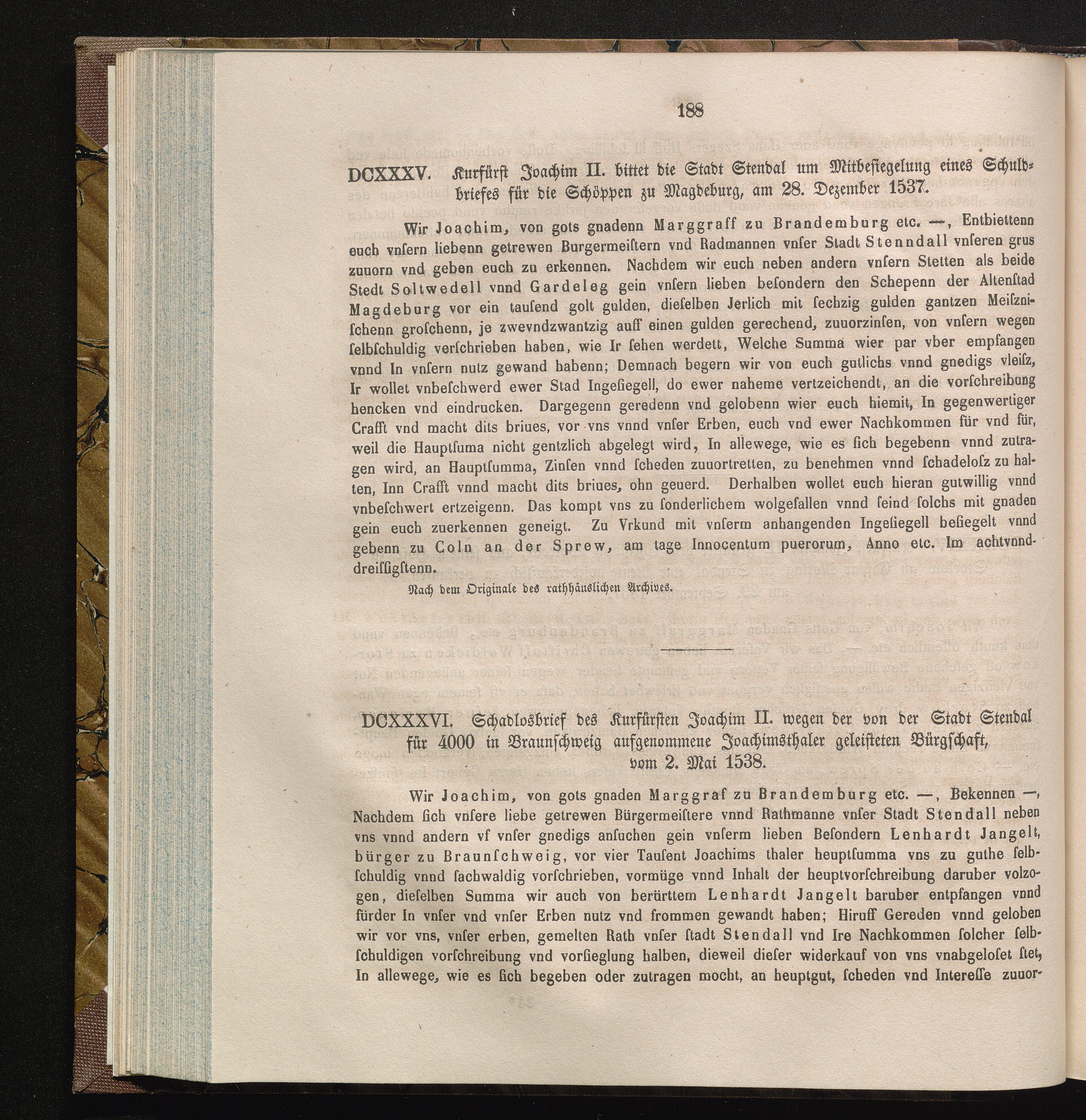 DCXXXVI. Schadlosbrief des Kurfürsten Joachim II. wegen der von der Stadt Stendal[...]