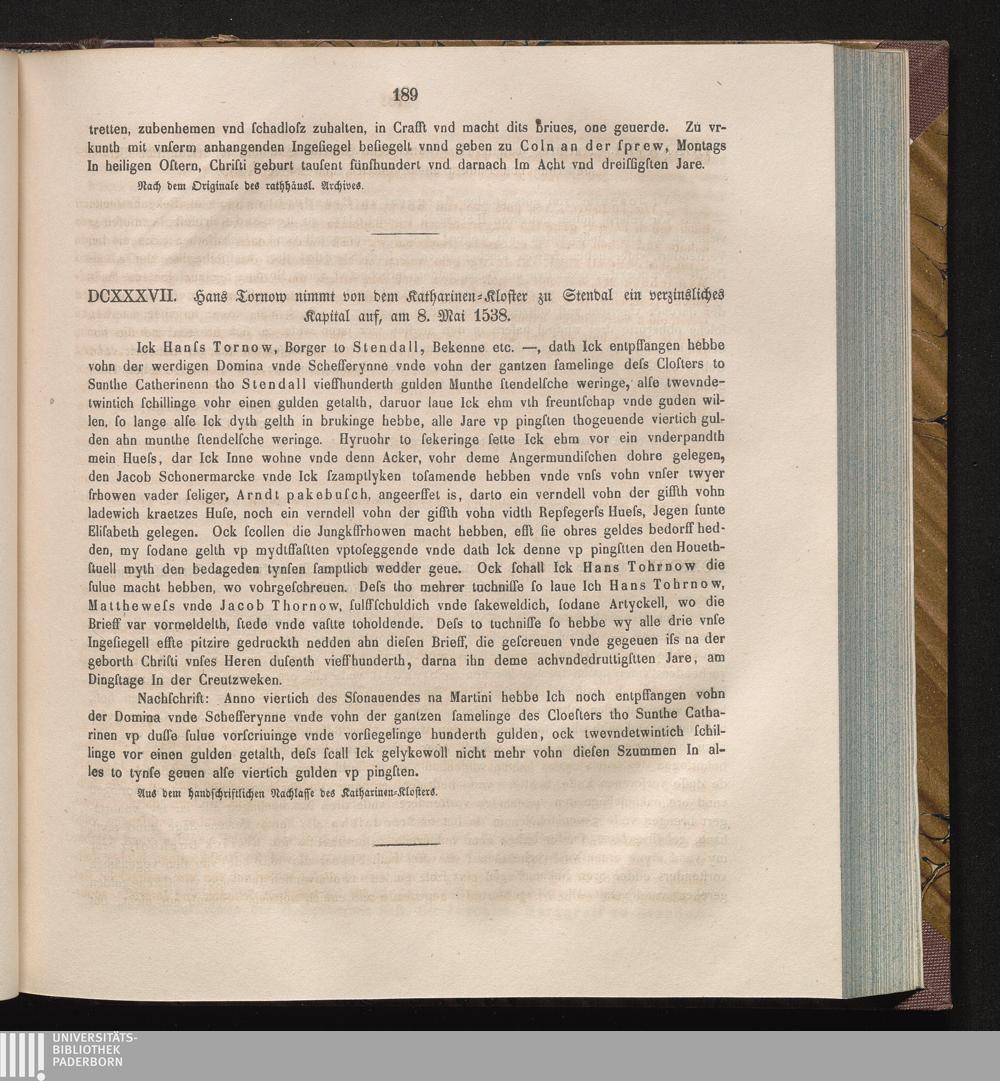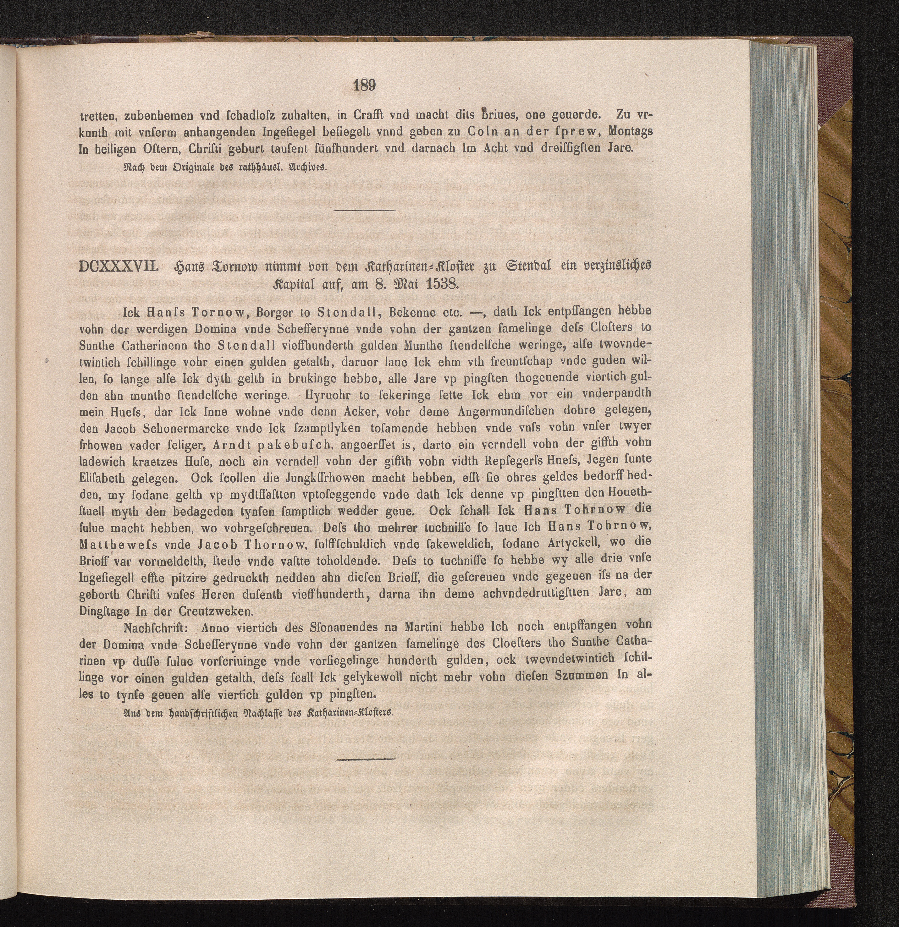 DCXXXVII. Hans Tornow nimmt von dem Katharinen-Kloster zu Stendal ein verzinsliches[...]
