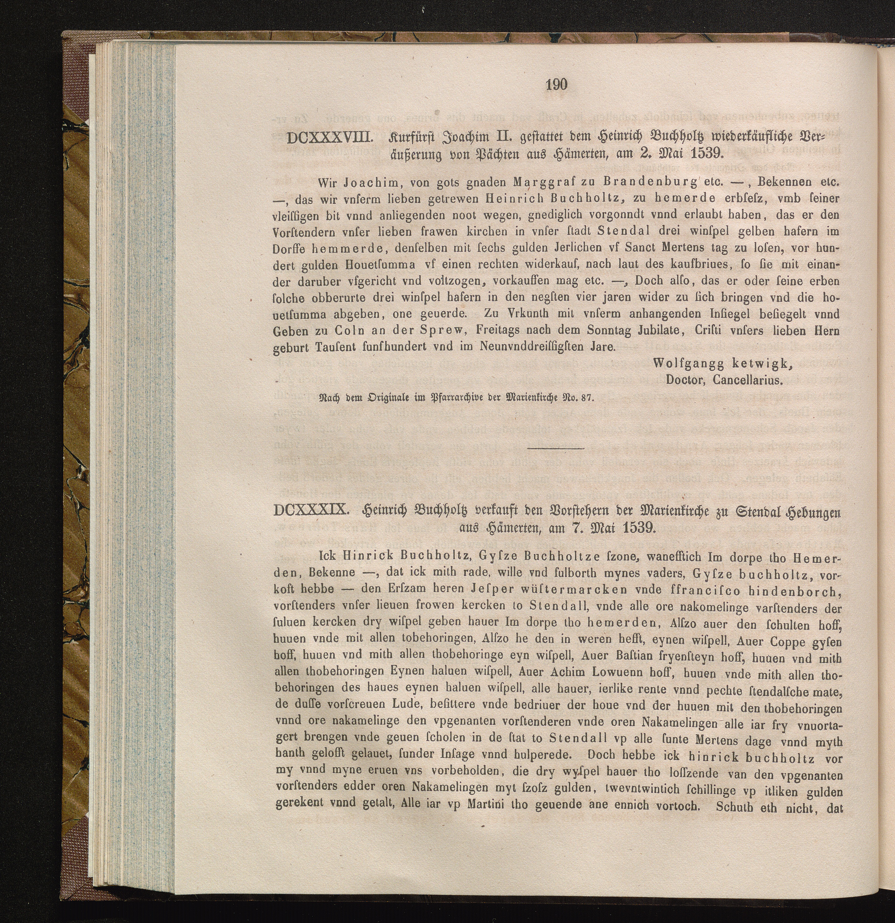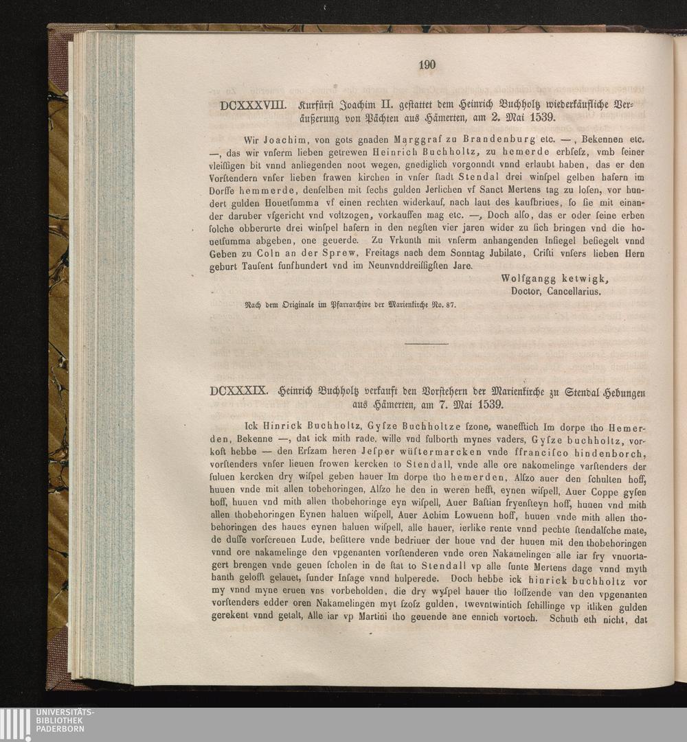 DCXXXIX. Heinrich Buchholtz verkauft den Vorstehern der Marienkirche zu Stendal Hebungen[...]