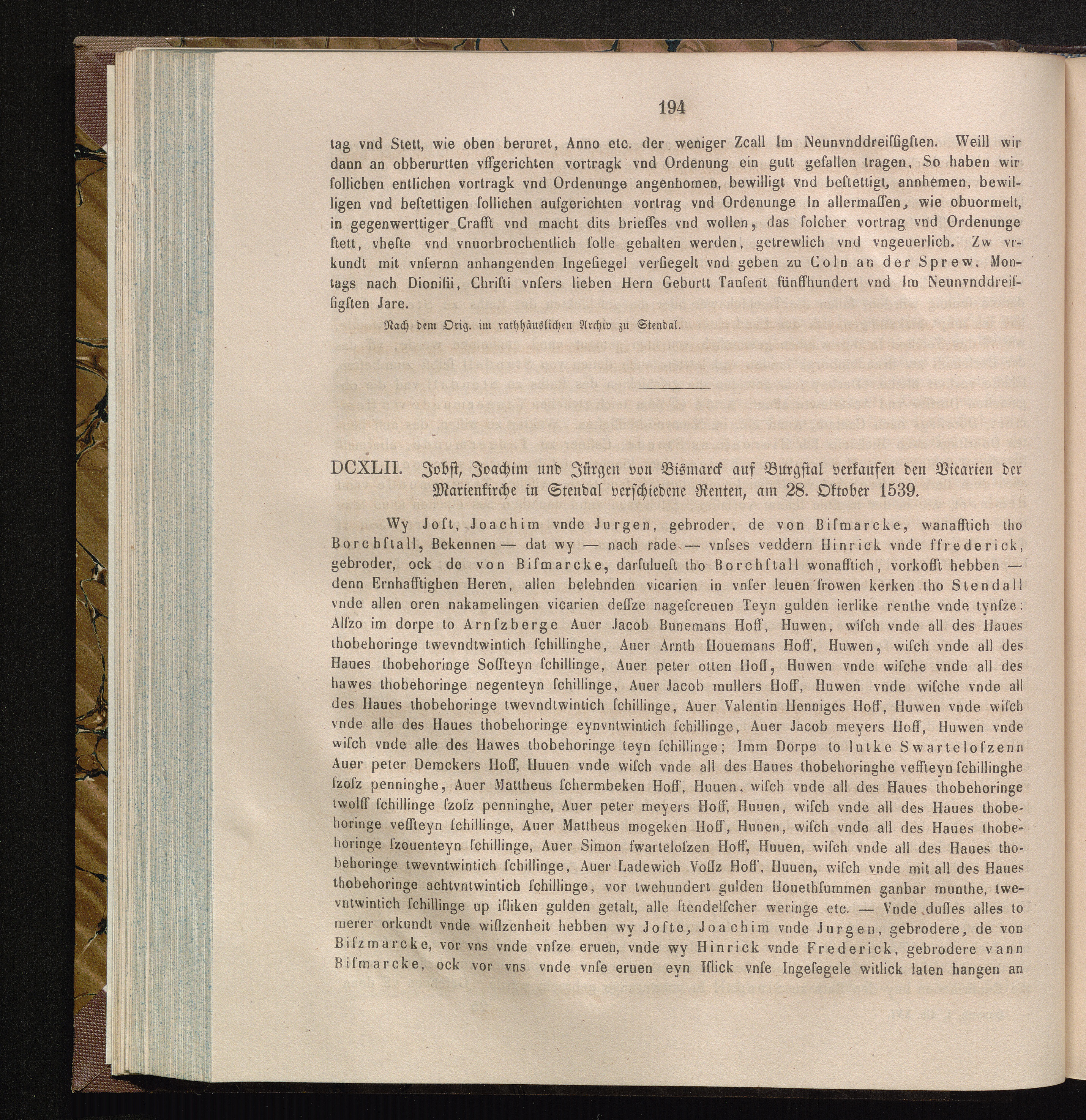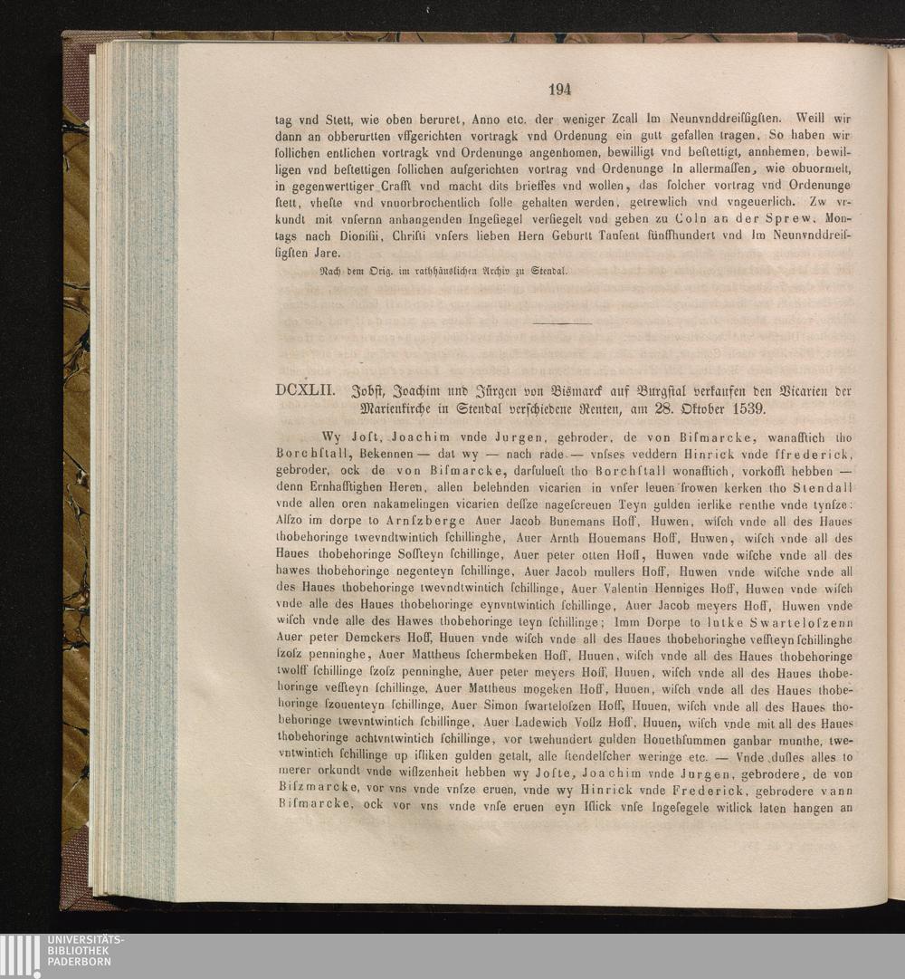 DCXLII. Jobst, Joachim und Jürgen von Bismark auf Burgstal verkaufen den Vicarien[...]
