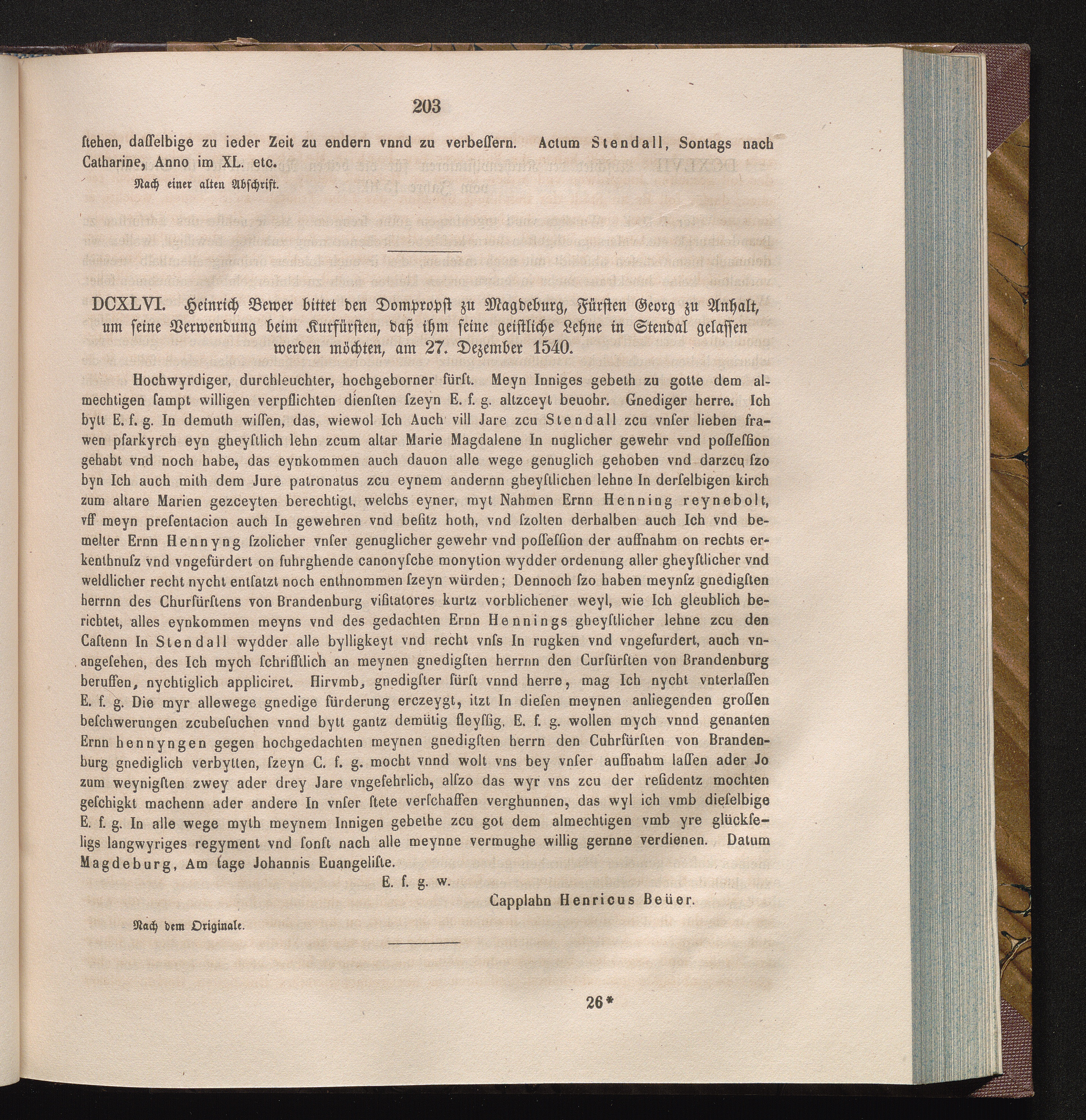 DCXLVI. Heinrich Bewer bittet den Dompropst zu Magdeburg, Fürsten Georg zu Anhalt,[...]