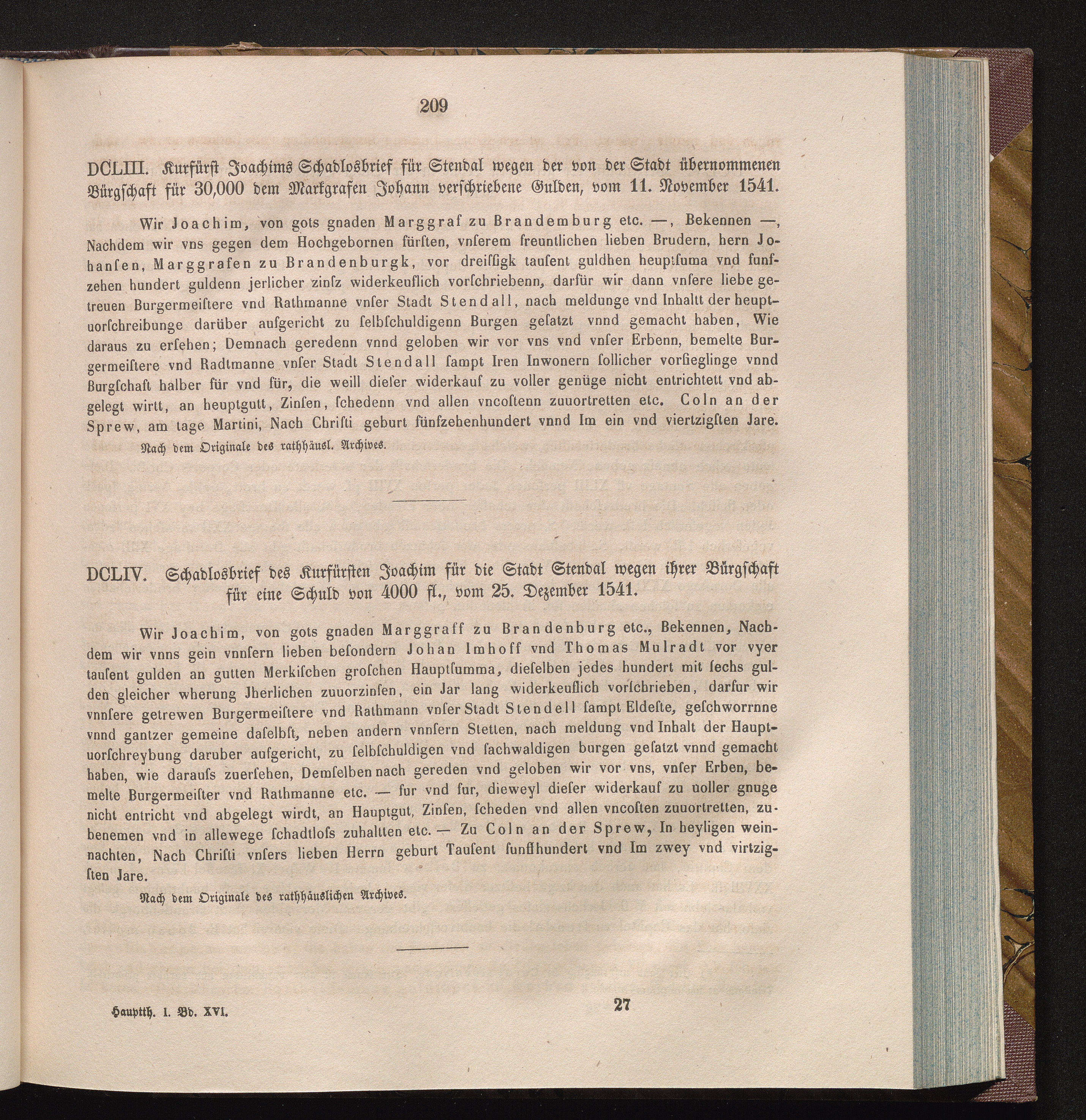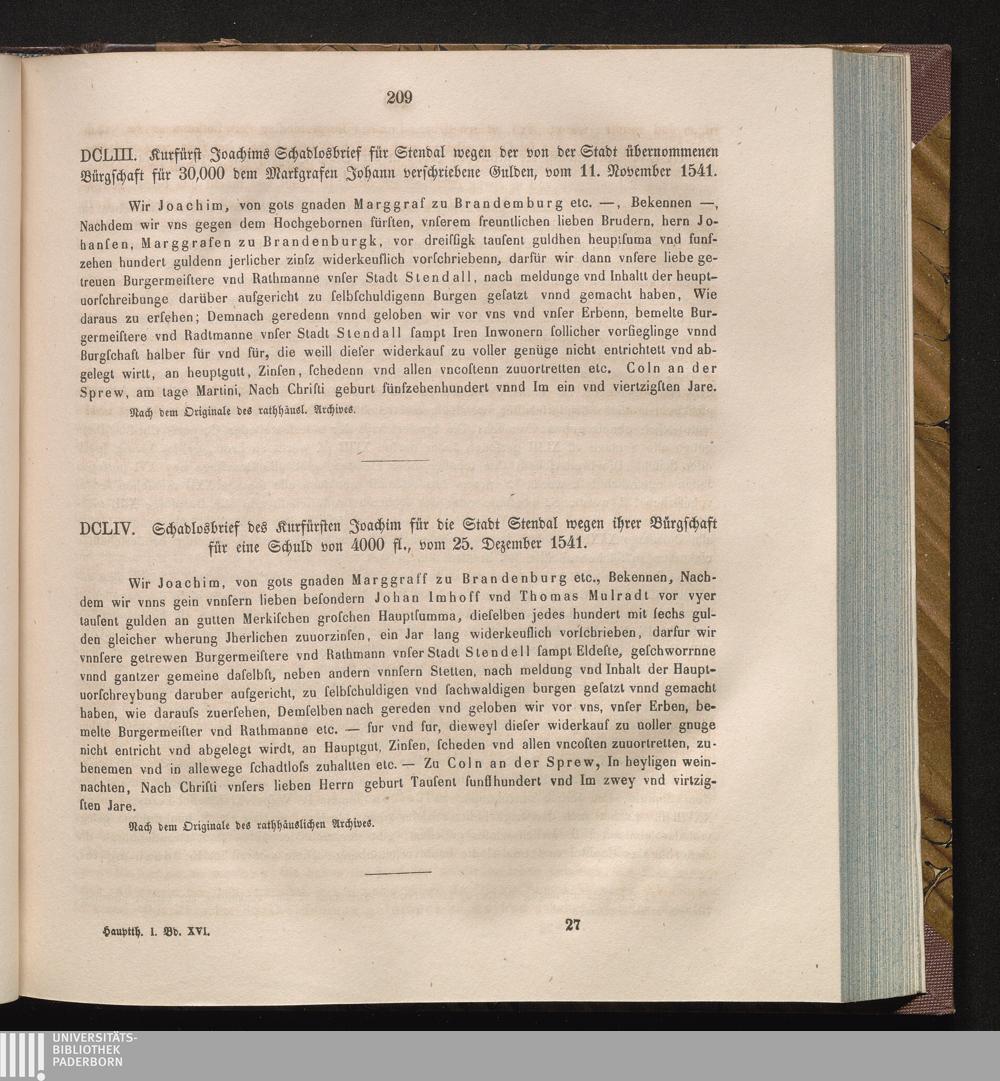 DCLIV. Schadlosbrief des Kurfürsten Joachim für die Stadt Stendal wegen ihrer Bürgschaft[...]