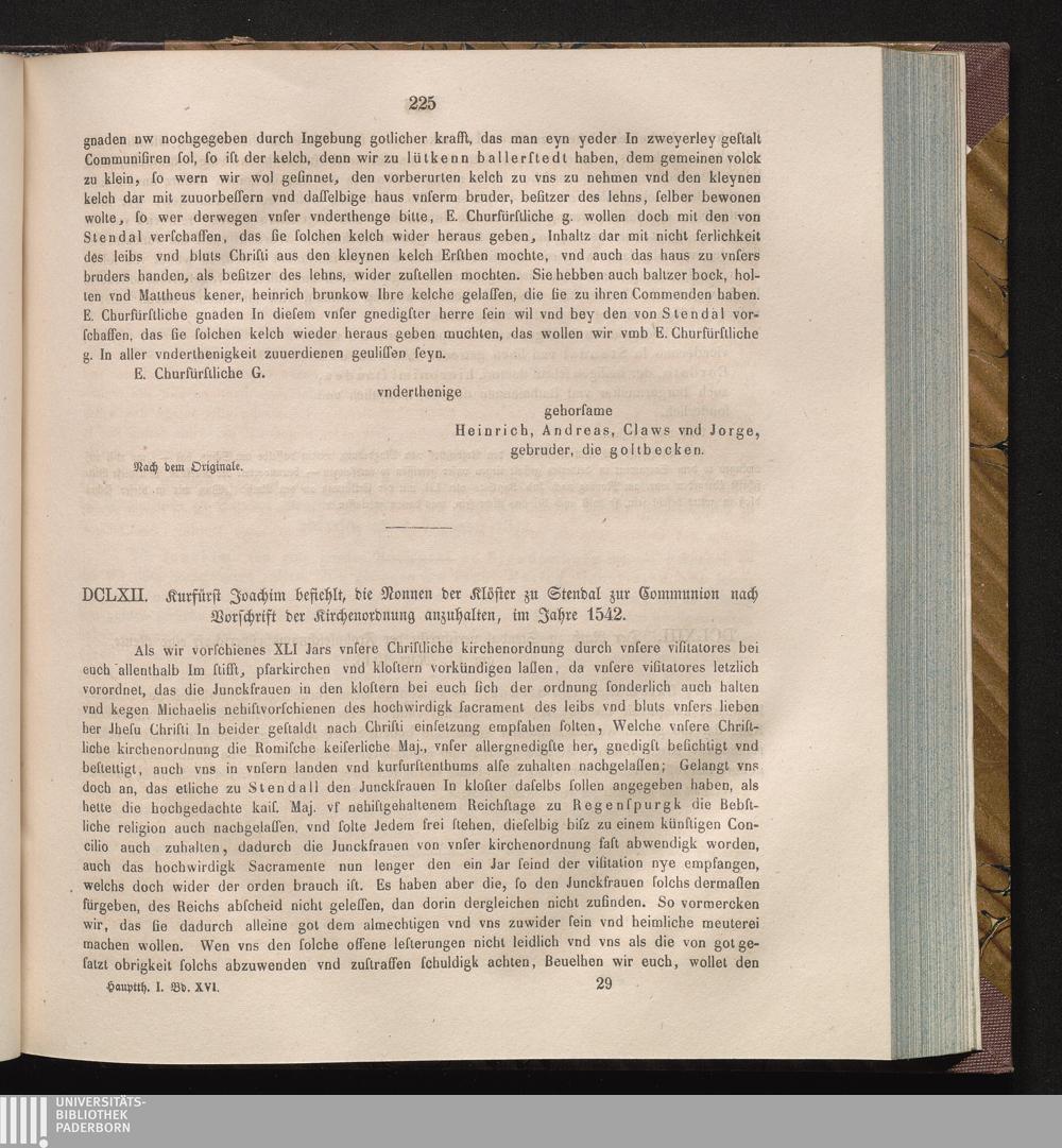 DCLXII. Kurfürst Joachim befiehlt, die Nonnen der Klöster zu Stendal zur Communion[...]