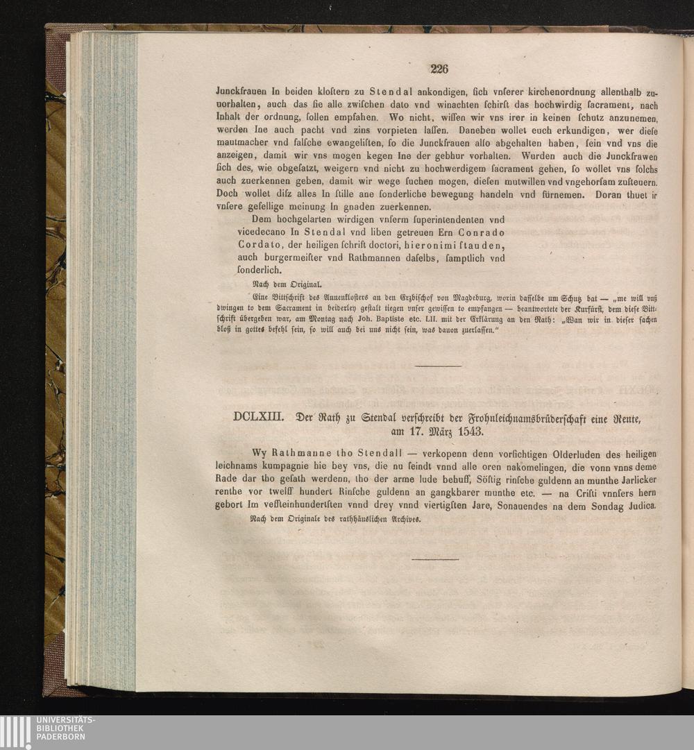 DCLXIII. Der Rath zu Stendal verschreibt de Frohnleichnamsbrüderschaft eine Rente,[...]
