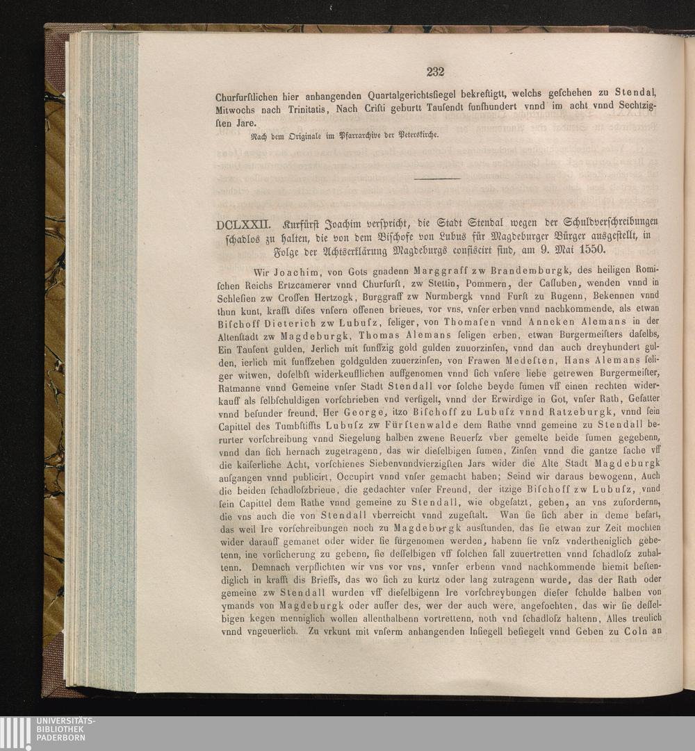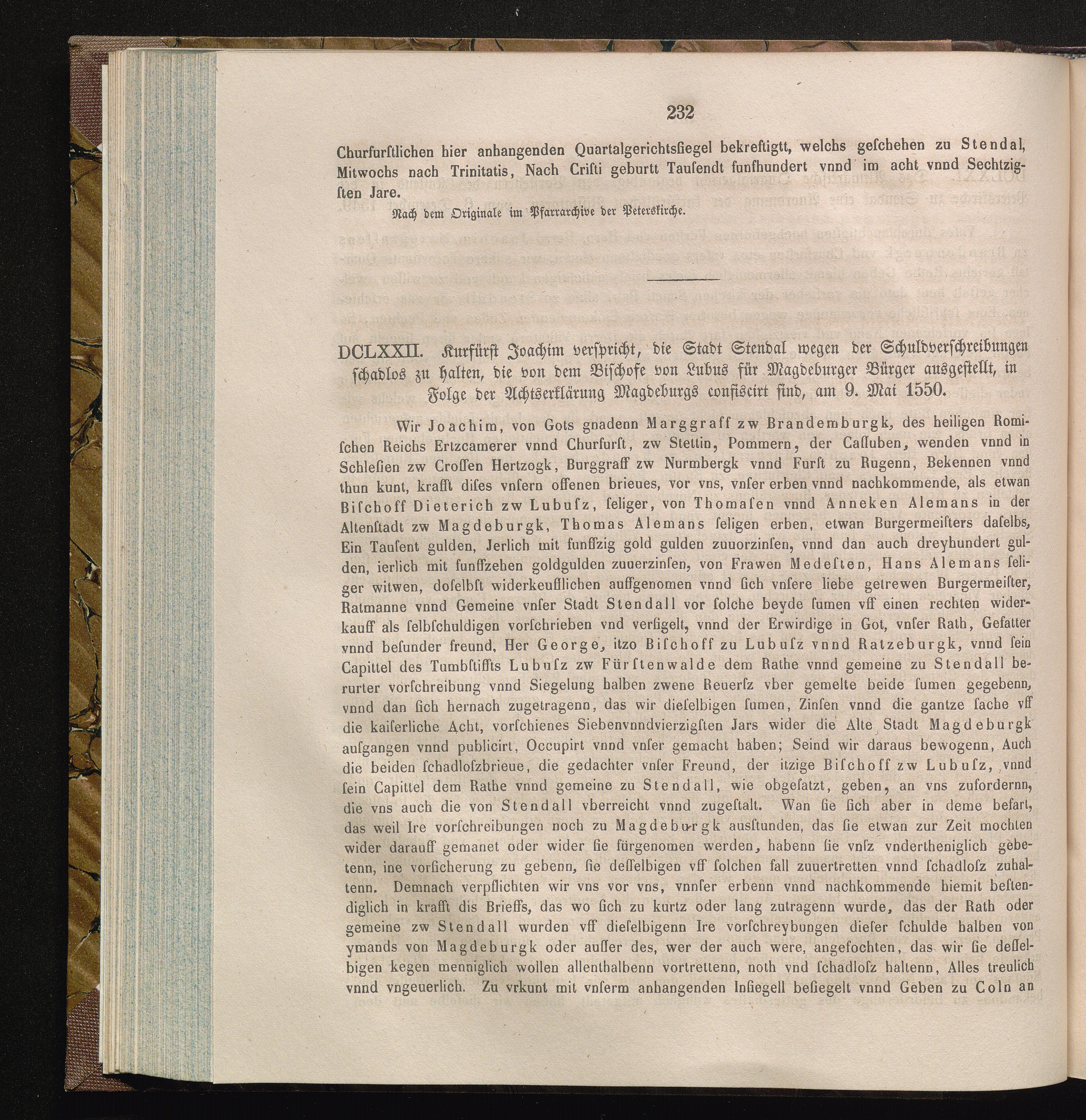 DCLXXII. Kurfürst Joachim verspricht, die Stadt Stendal wegen der Schuldverschreibungen[...]