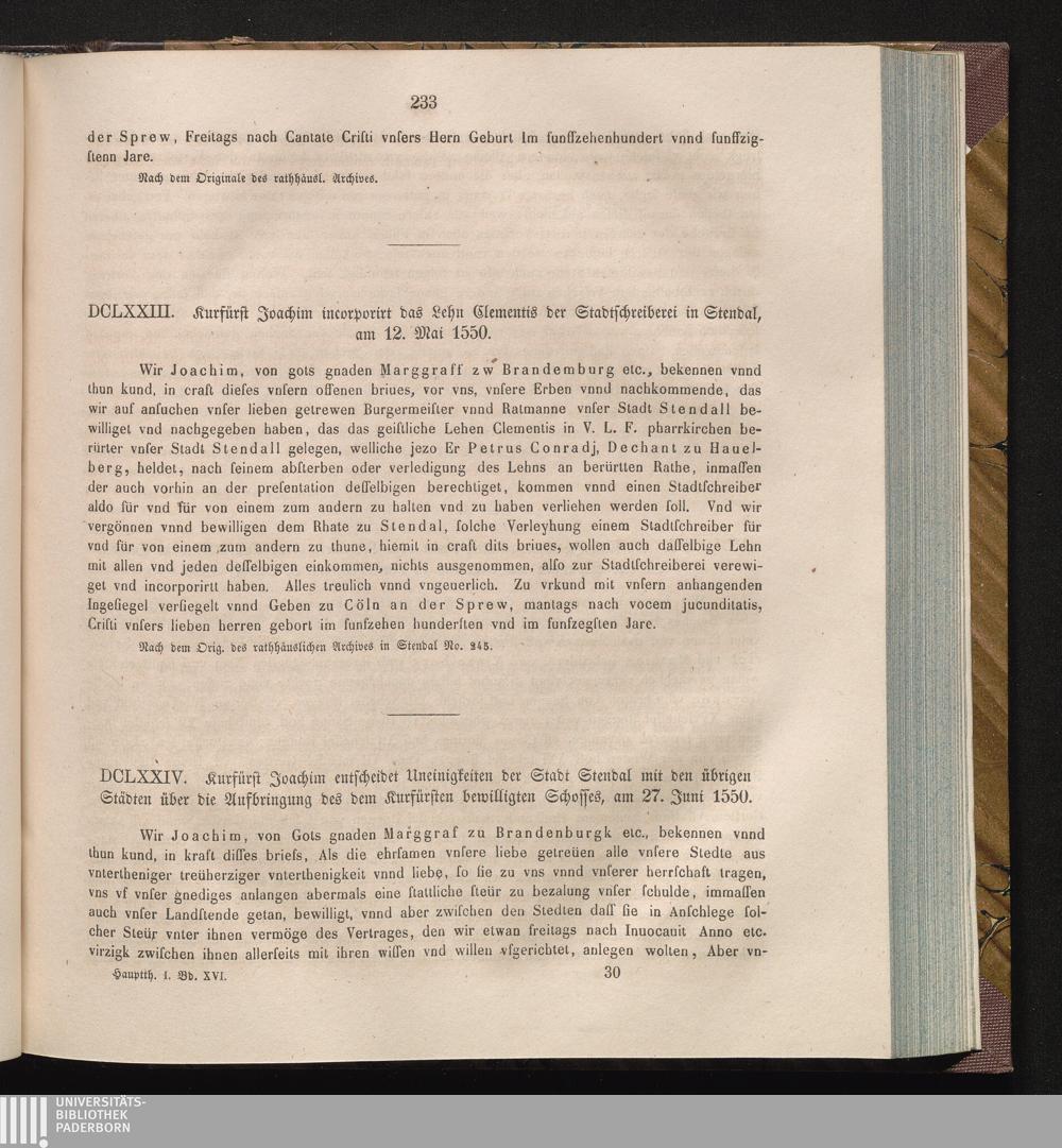 DCLXXIV. Kurfürst Joachim entscheidet Uneinigkeiten der Stadt Stendal mit den übrigen[...]