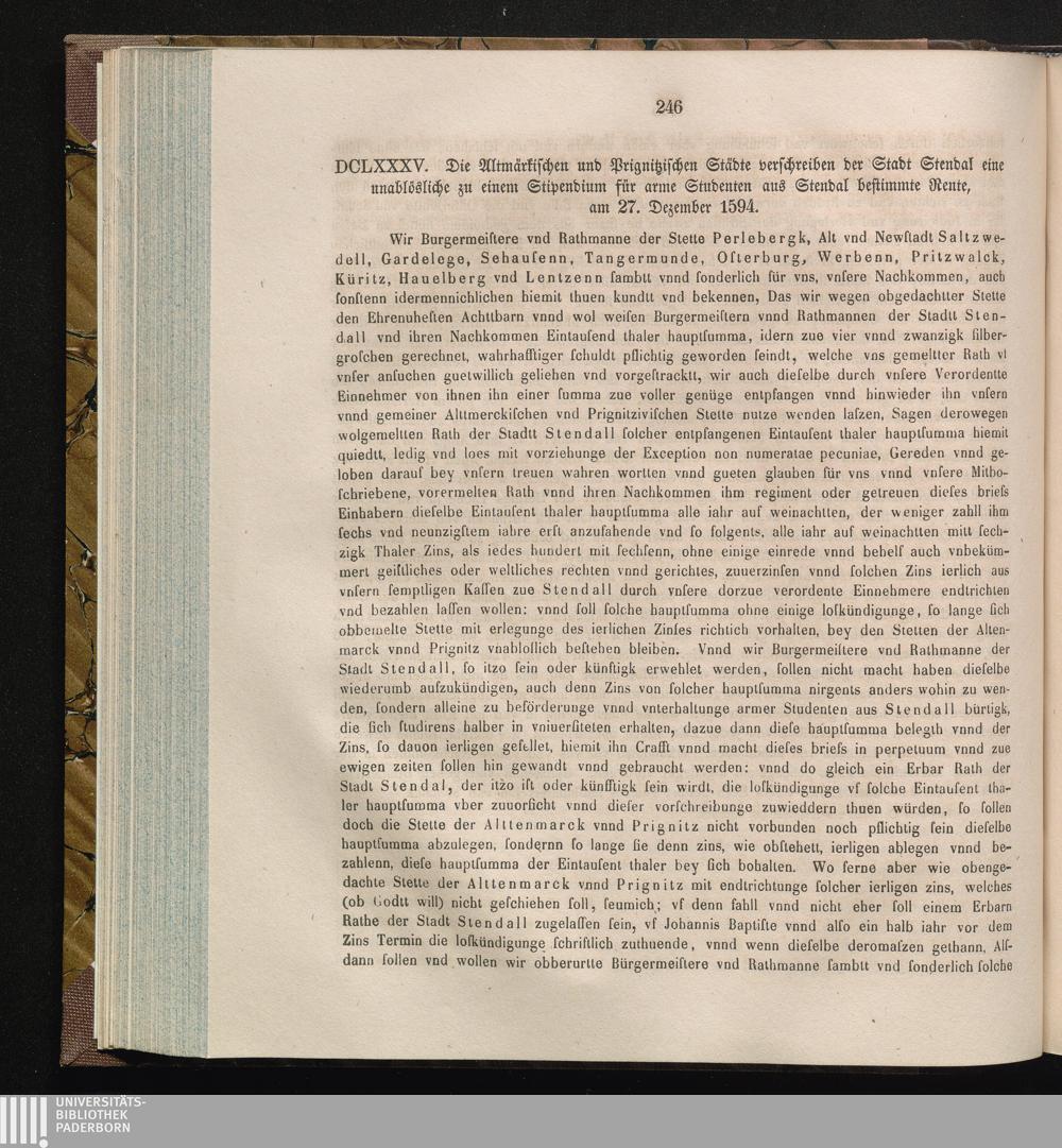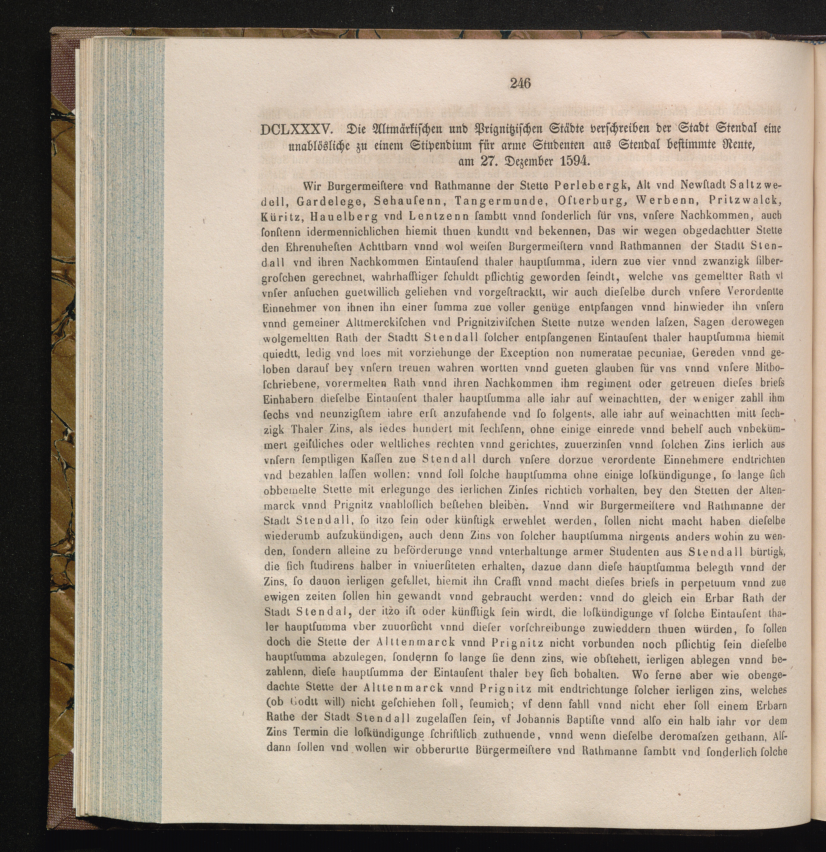 DCLXXXV. Die Altmärkischen und Prignitzschen Städte verschreiben der Stadt Stendal[...]
