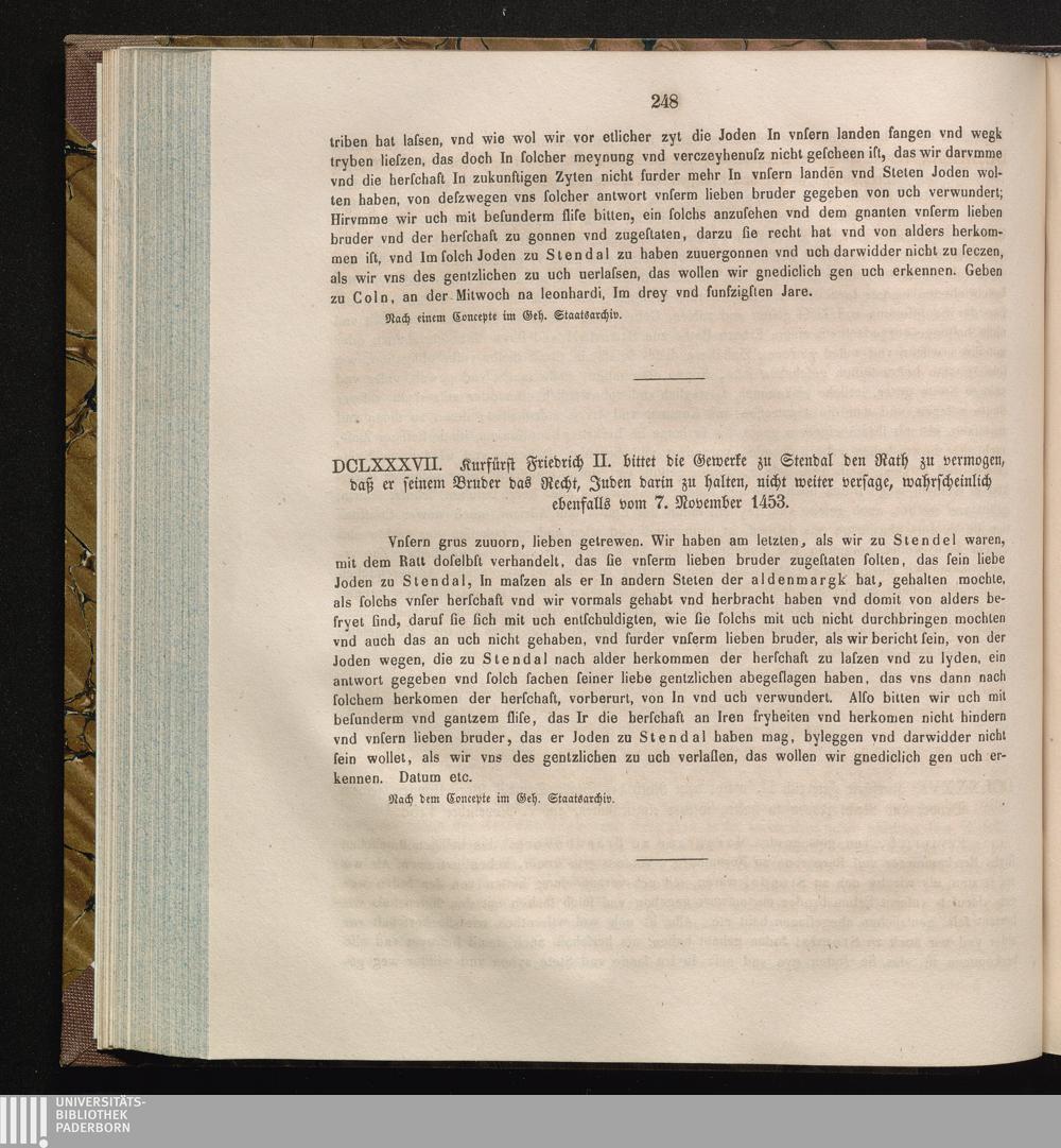 DCLXXXVII. Kurfürst Friedrich II. bittet die Gewerke zu Stendal den Rath zu vermogen,[...]