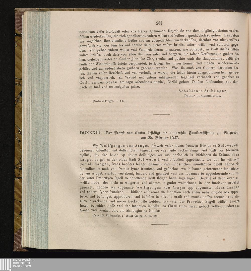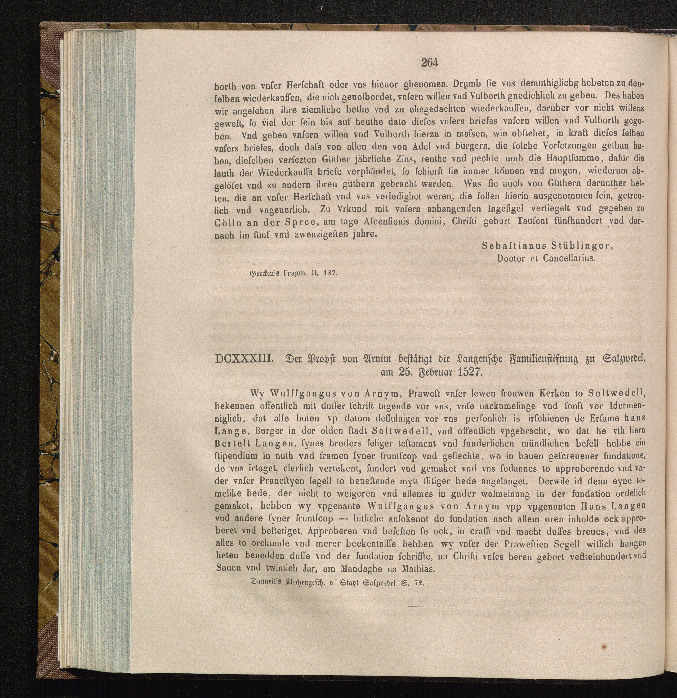 DCXXXIII. Der Probst von Arnim bestätigt die Langensche Familienstiftung zu Salzwedel,[...]