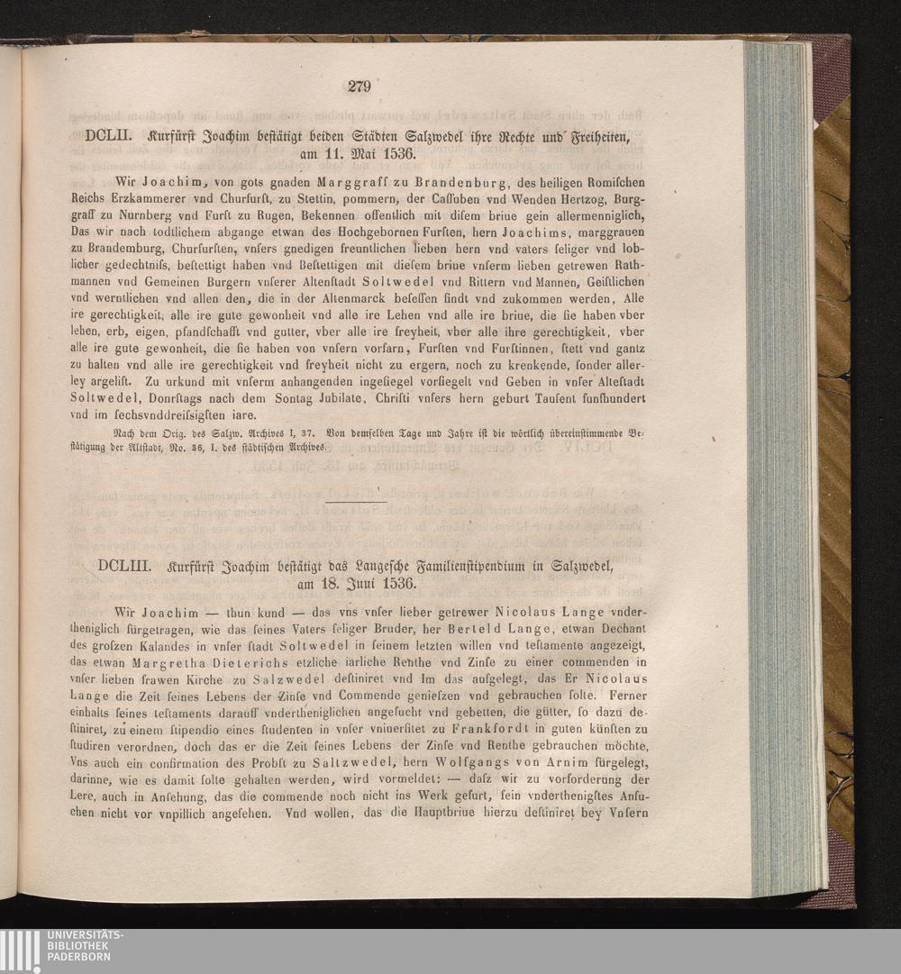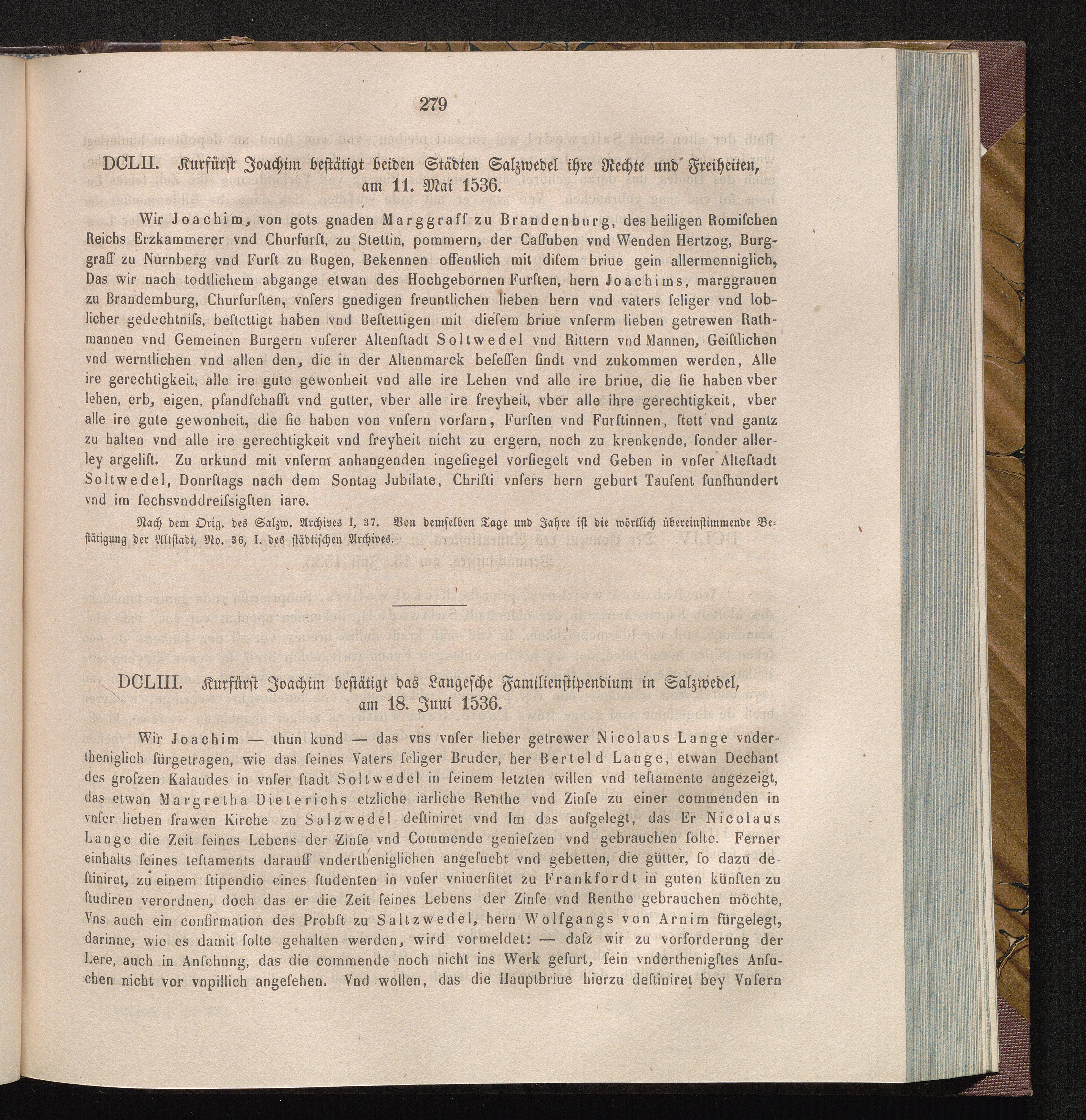 DCLIII. Kurfürst Joachim bestätigt das Langesche Familienstipendium in Salzwedel,[...]