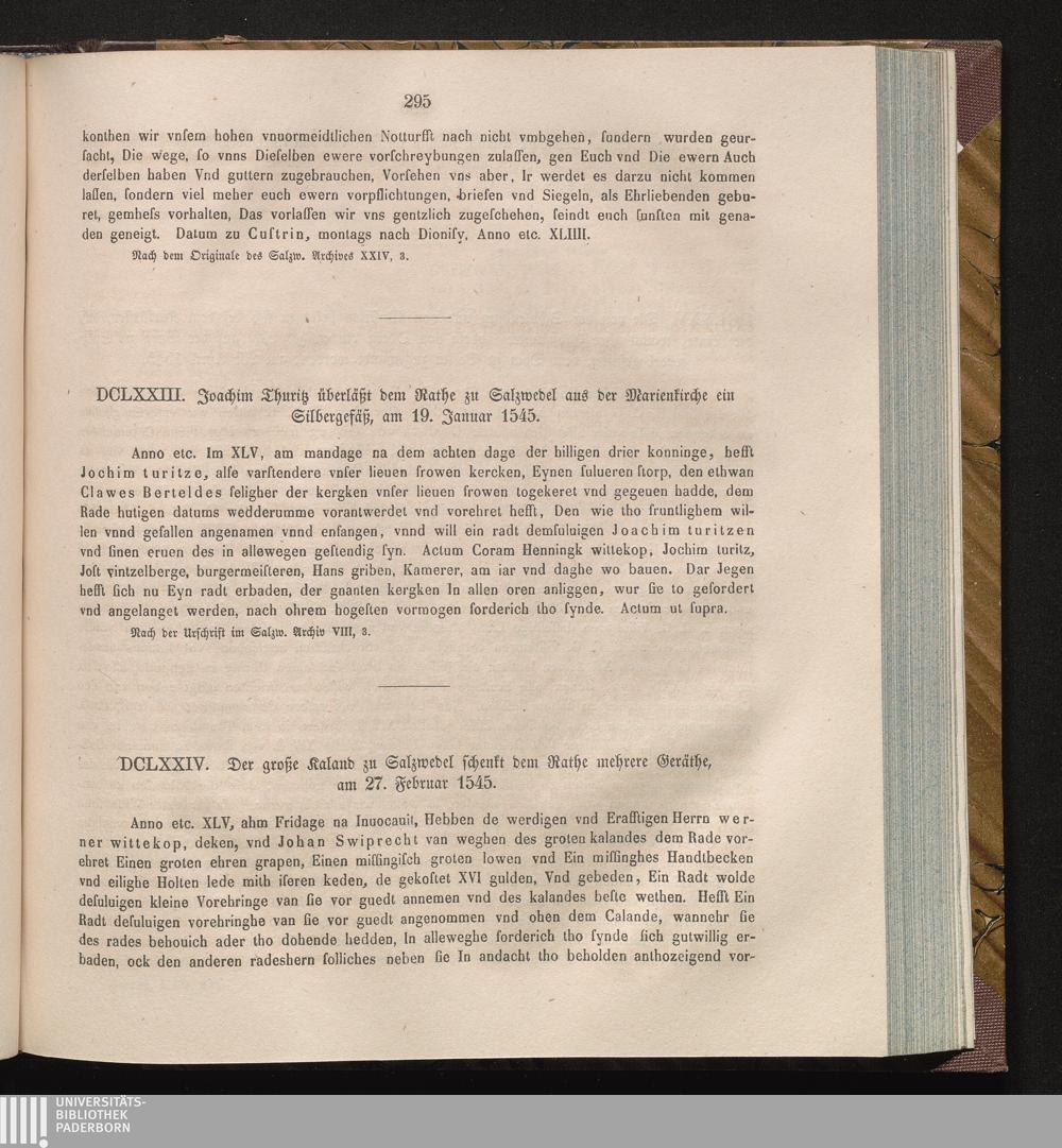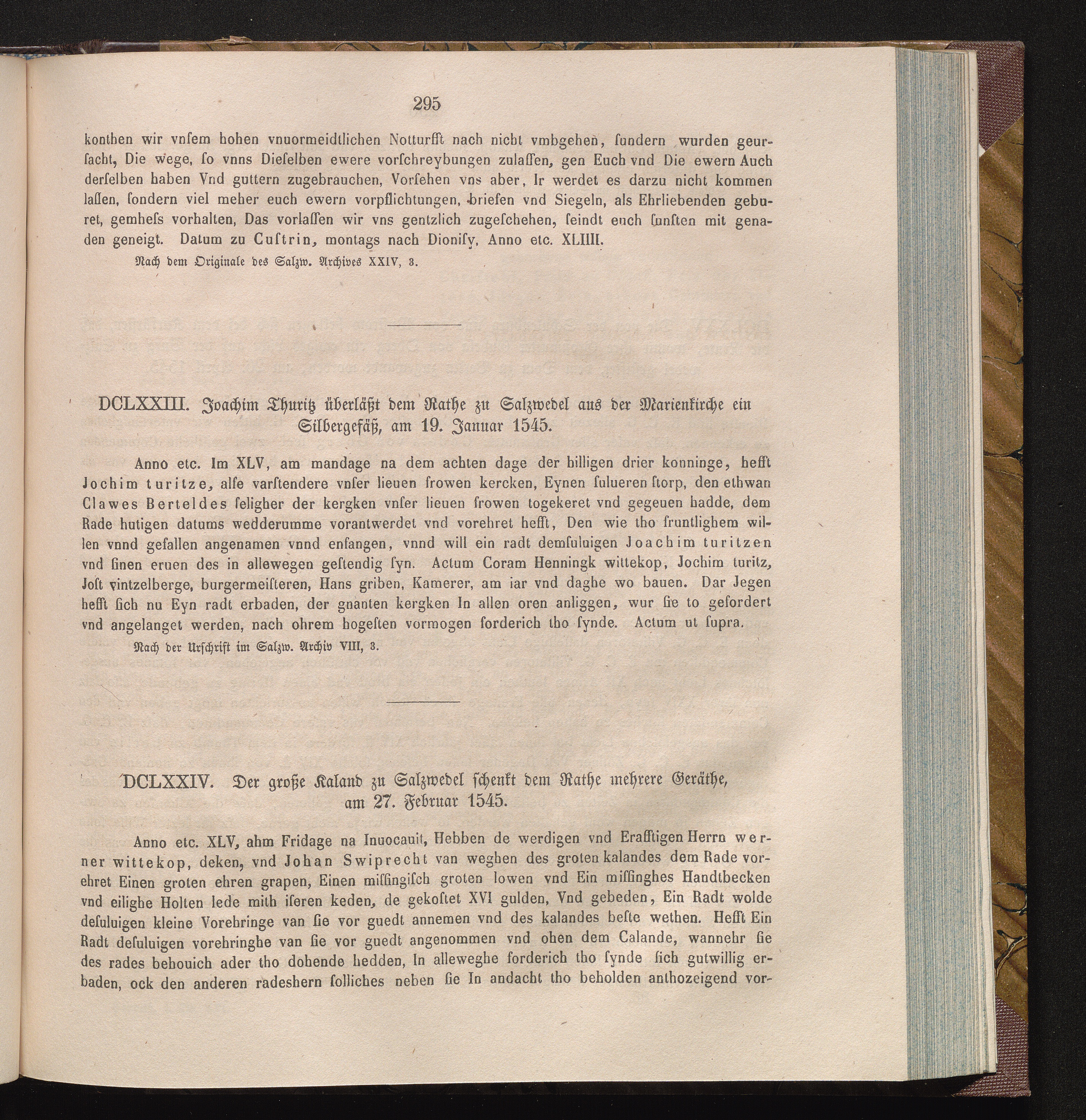 DCLXXIV. Der große Kaland zu Salzwedel schenkt dem Rathe mehrere Geräthe, am 27.[...]