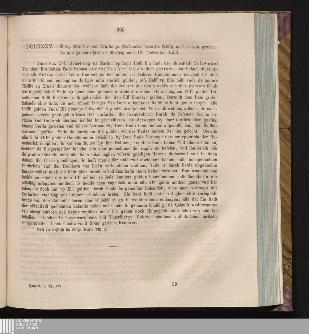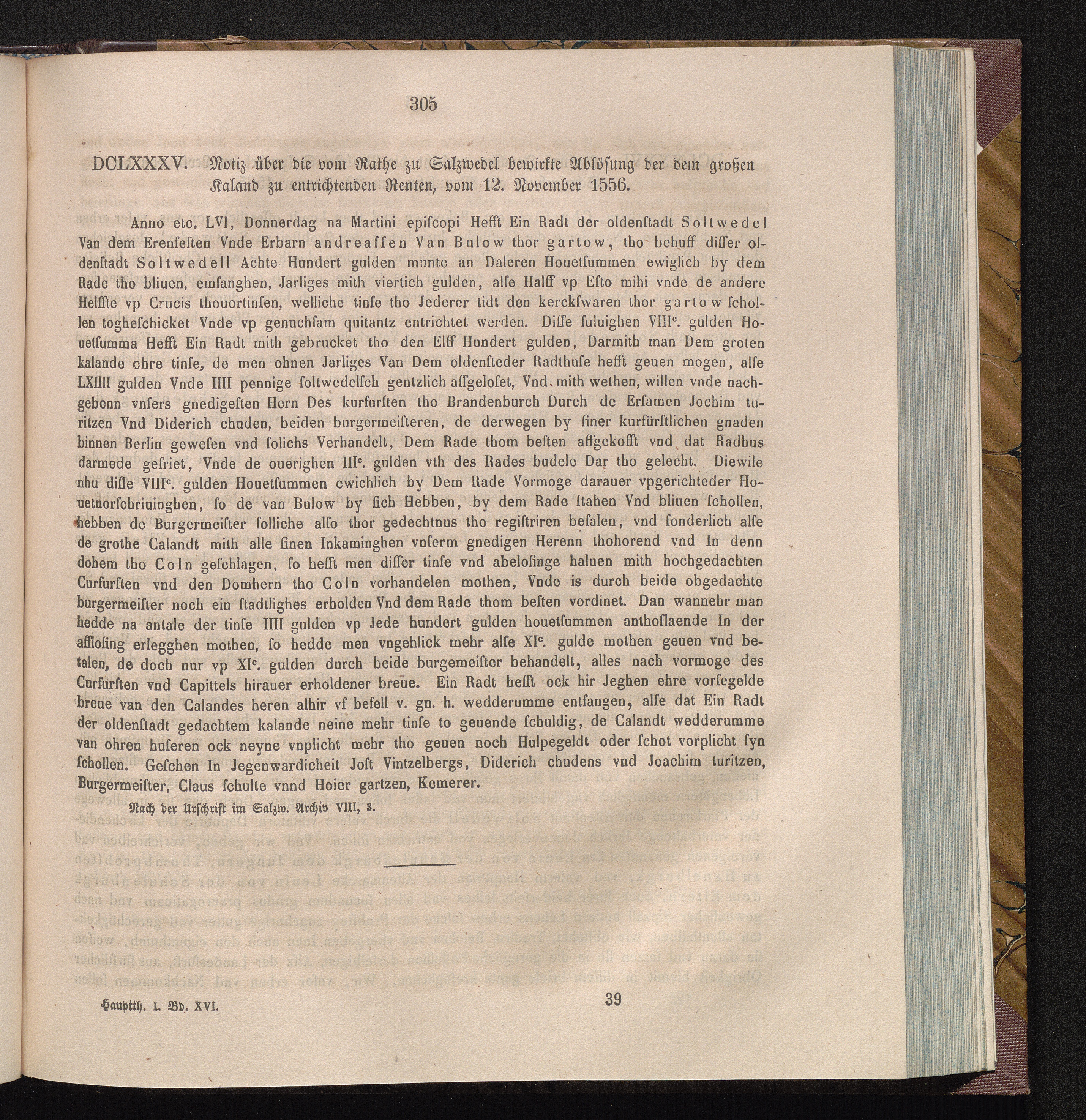 DCLXXXV. Notiz über die vom Rathe zu Salzwedel bewirkte Ablösung der dem großen Kaland[...]