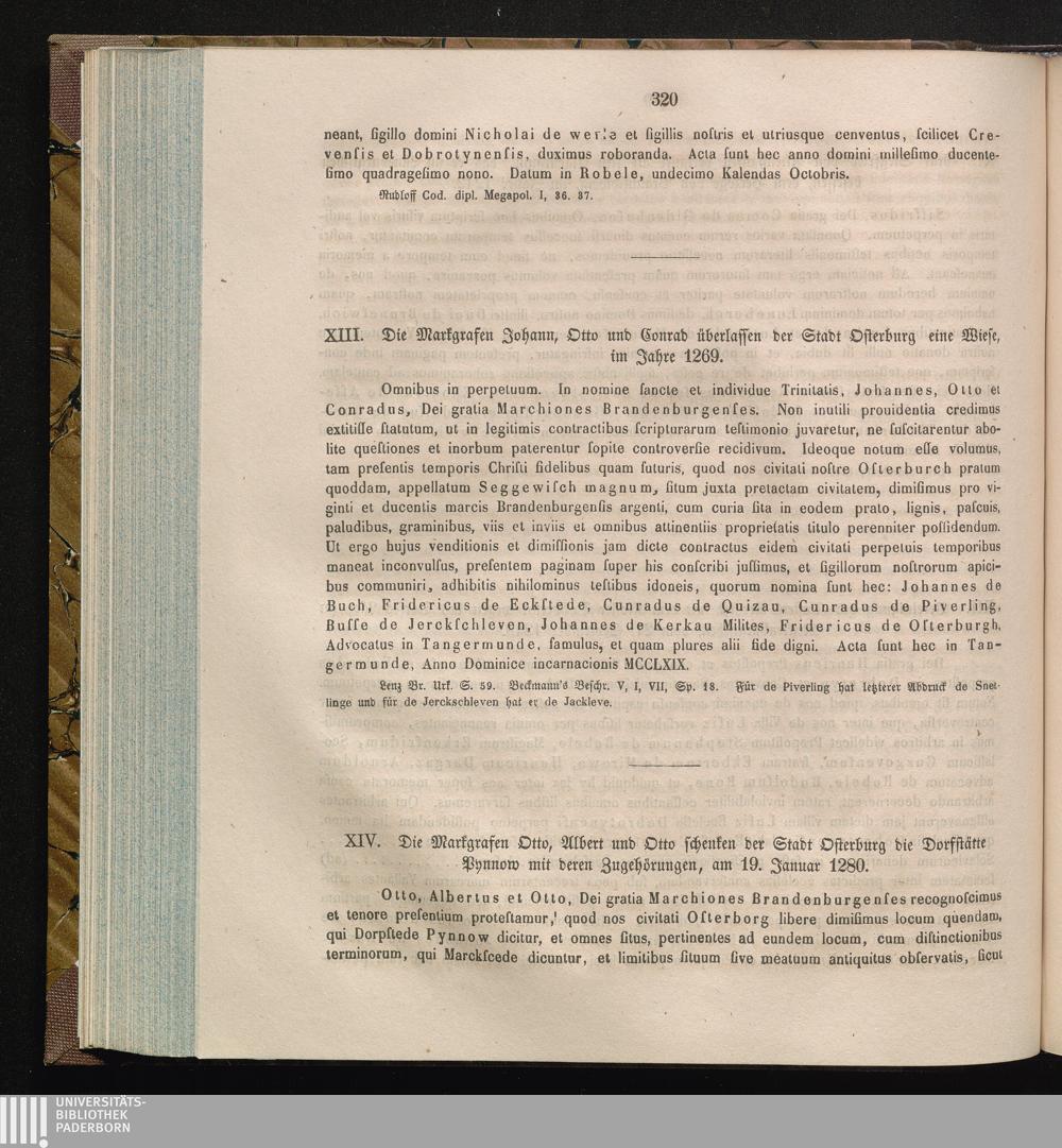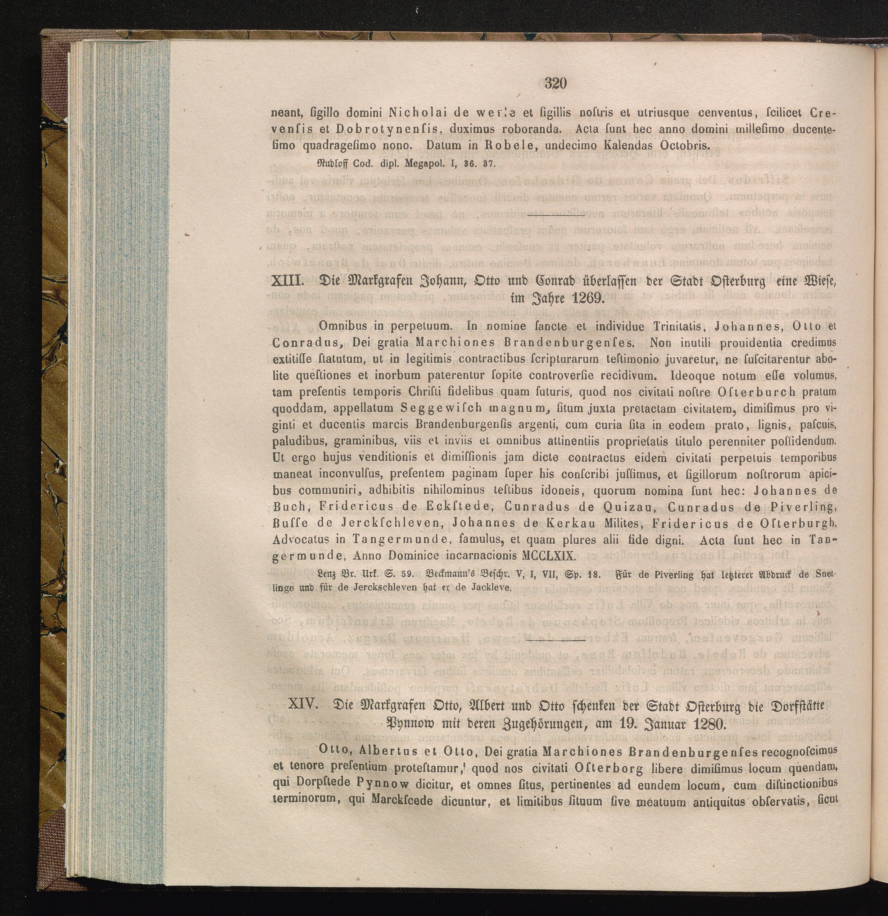 XIV. Die Markgrafen Otto, Albert und Otto schenken der Stadt Osterburg die Dorfstätte[...]