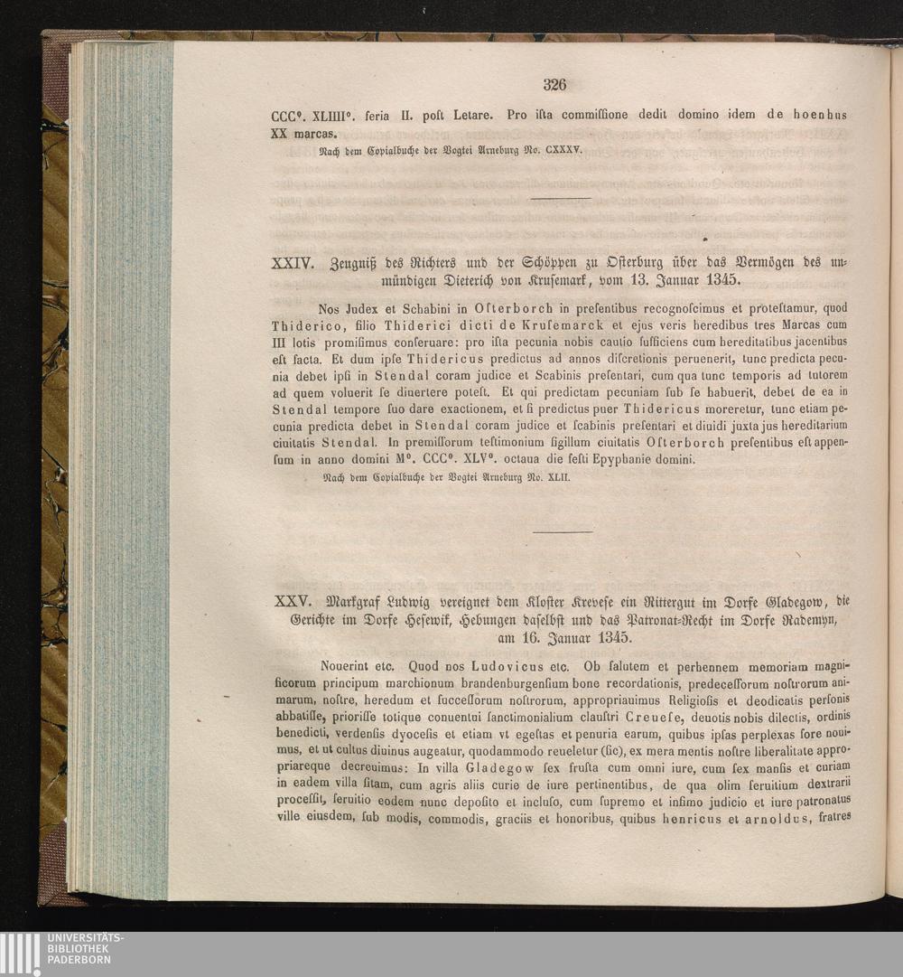 XXV. Markgraf Ludwig vereignet dem Kloster Krevese ein Rittergut im Dorfe Gladegow,[...]