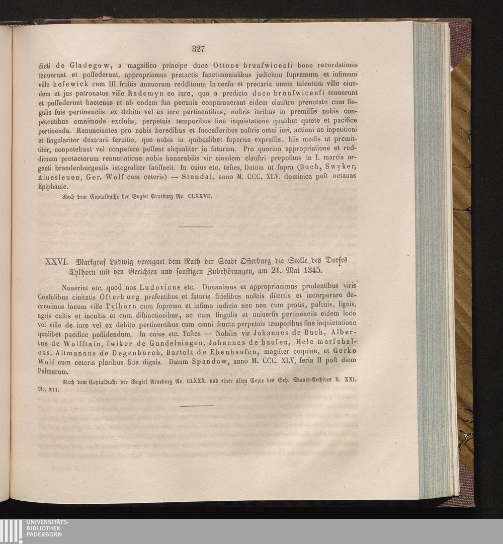 XXVI. Markgraf Ludwig vereignet dem Rath der Stadt Osterburg die Stelle des Dorfes[...]