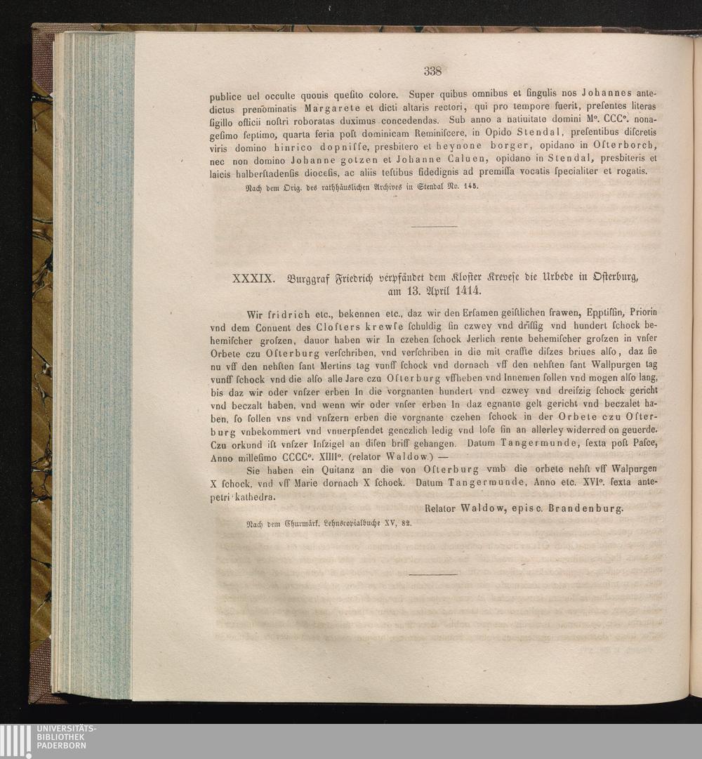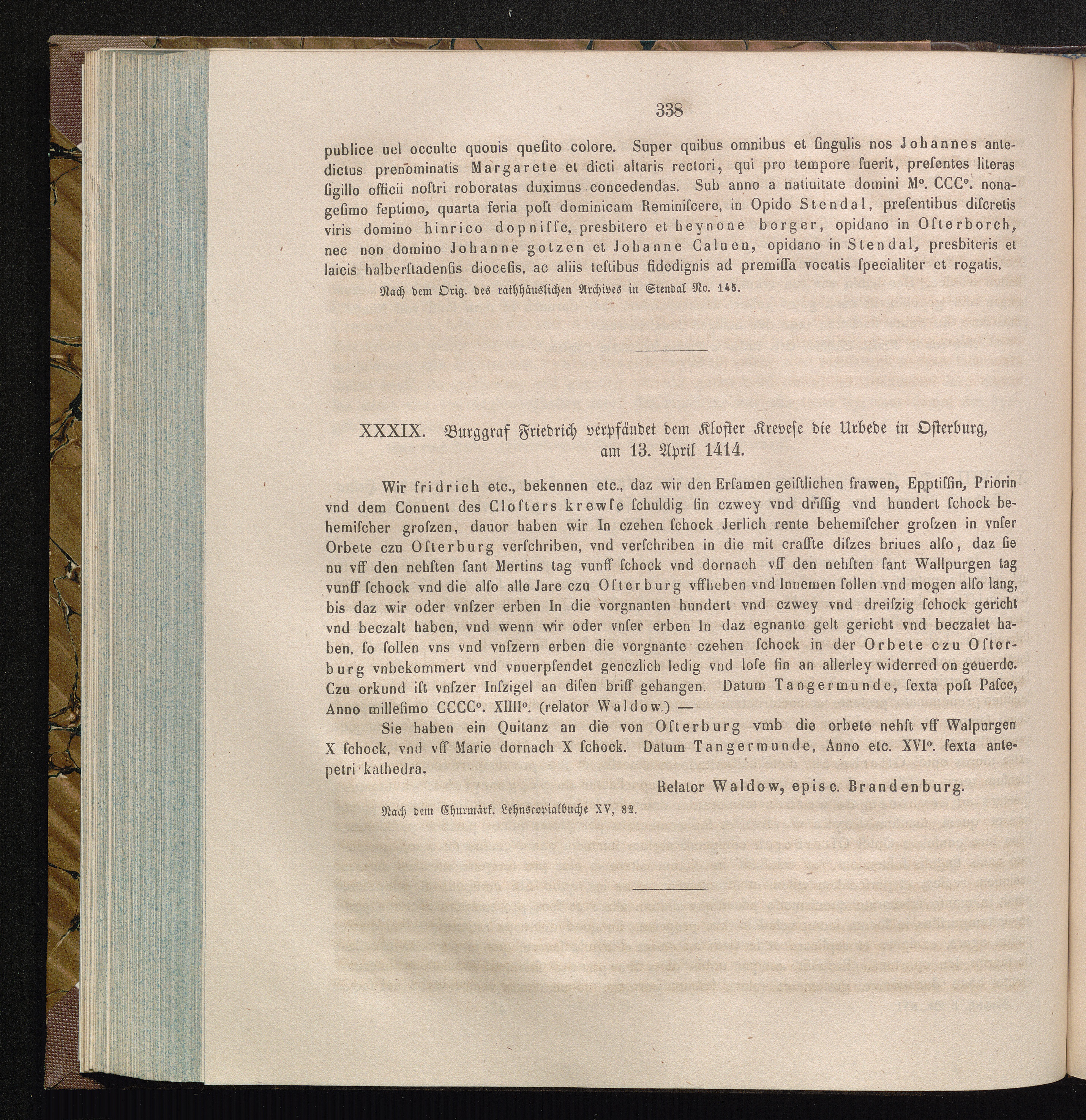 XXXIX. Burggraf Friedrich verpfändet dem Kloster Krevese die Urbede in Osterburg,[...]