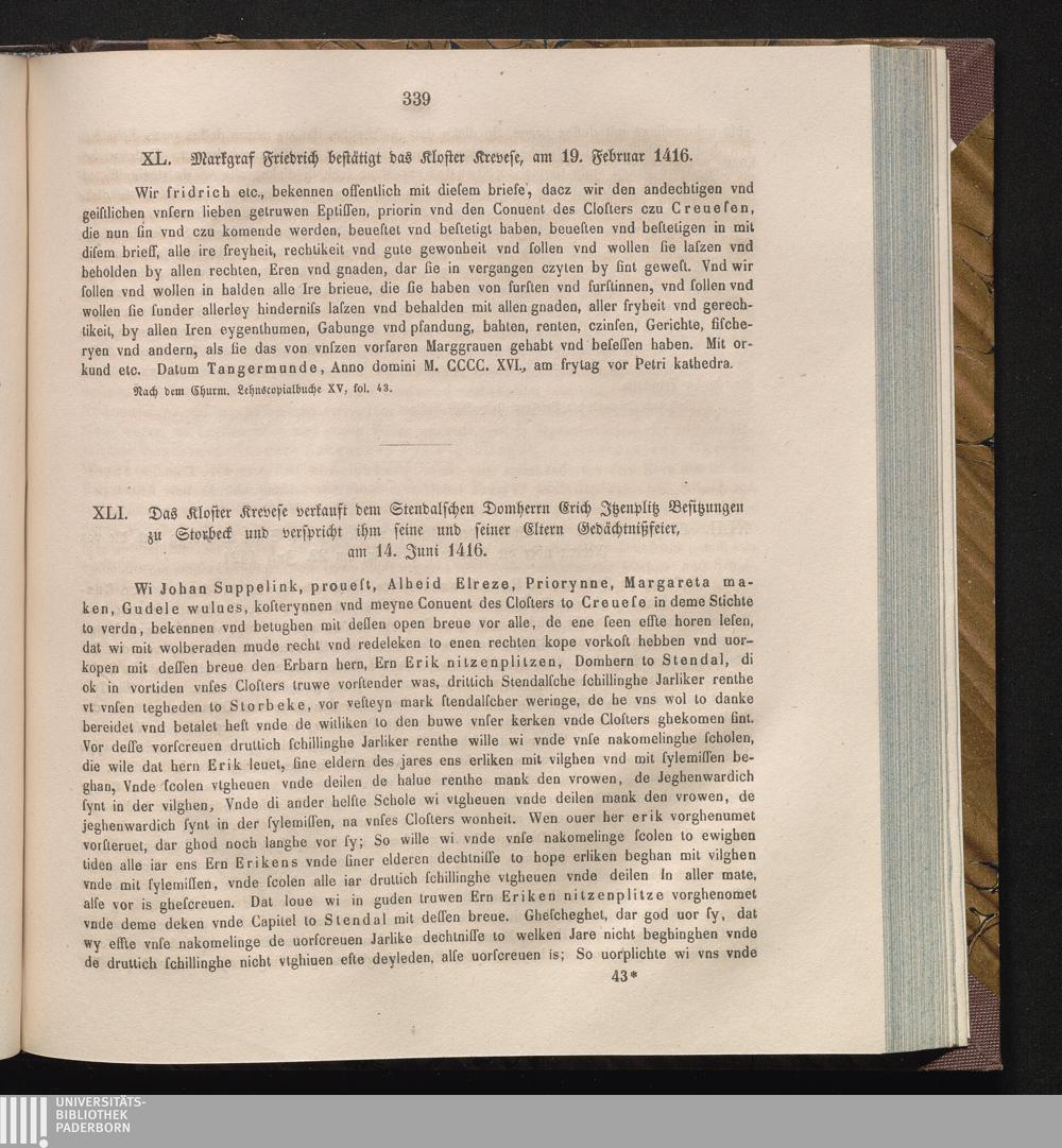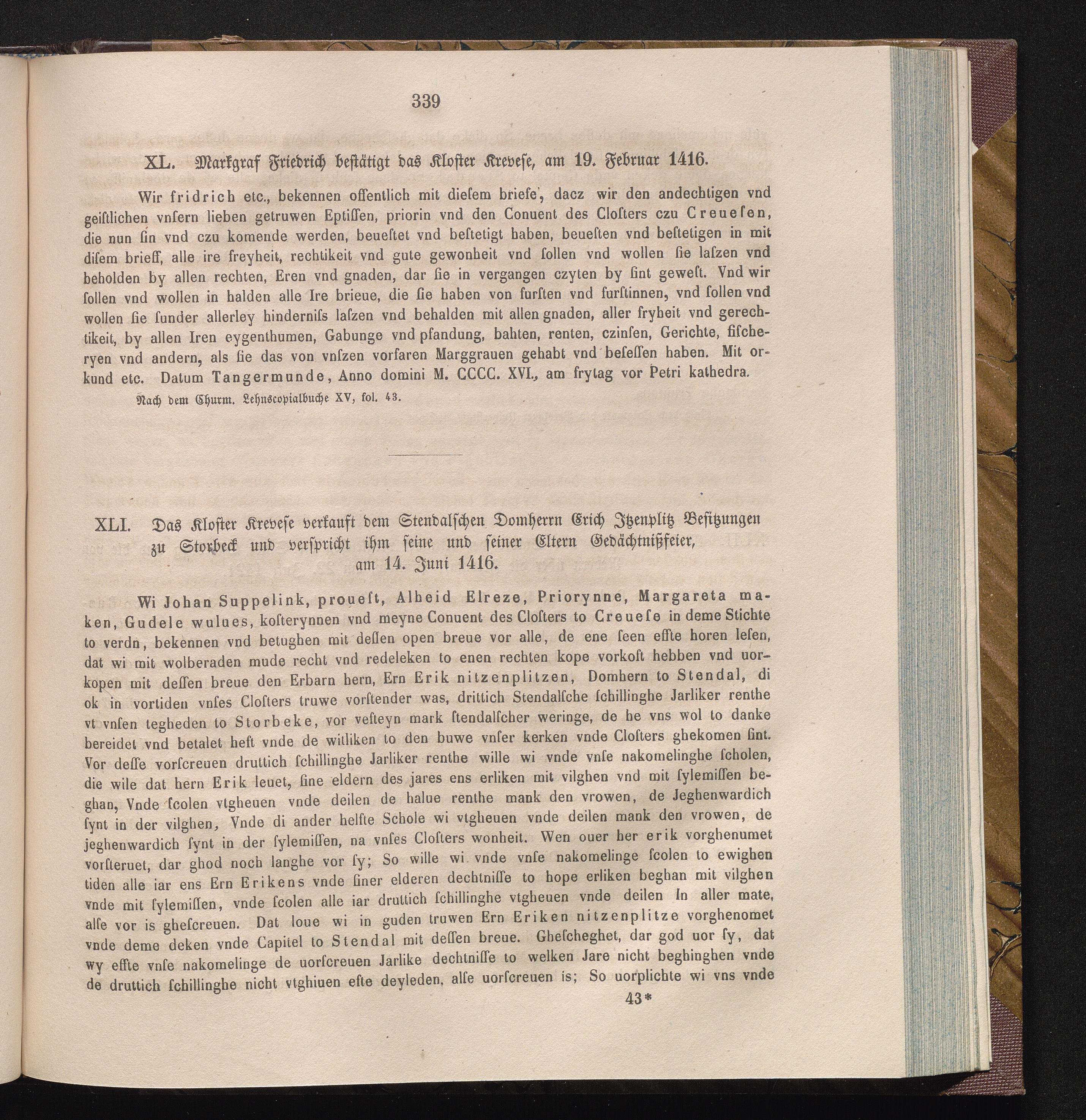 XLI. Das Kloster Krevese verkauft dem Stendalschen Domherrn Erich Jtzenplitz Besitzungen[...]