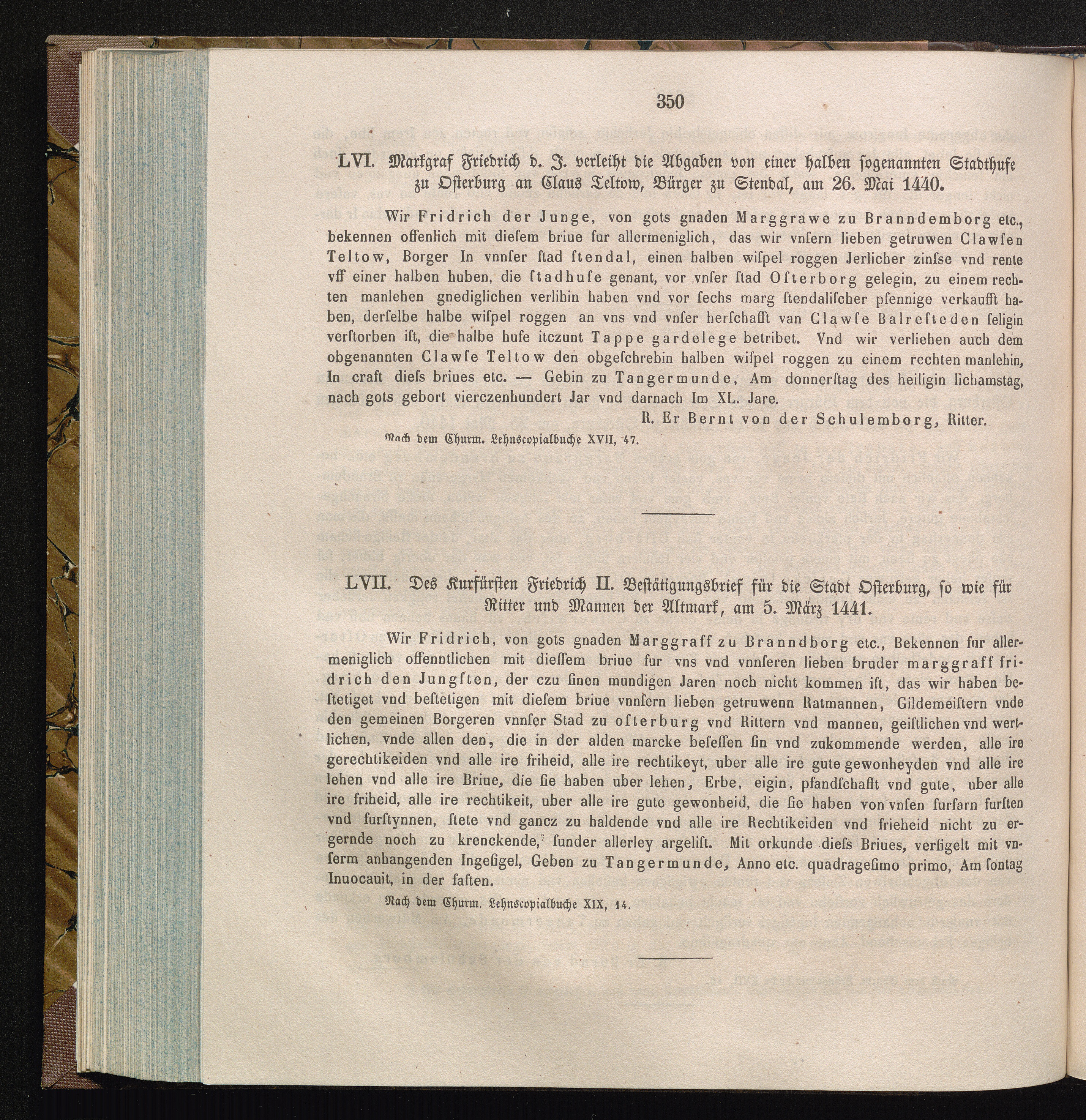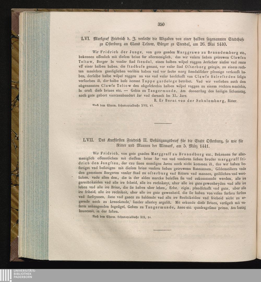LVII. Des Kurfürsten Friedrich II. Bestätigungsbrief für die Stadt Osterburg, so[...]