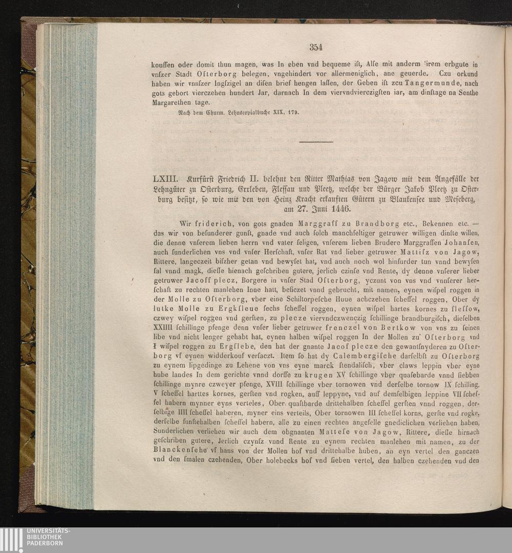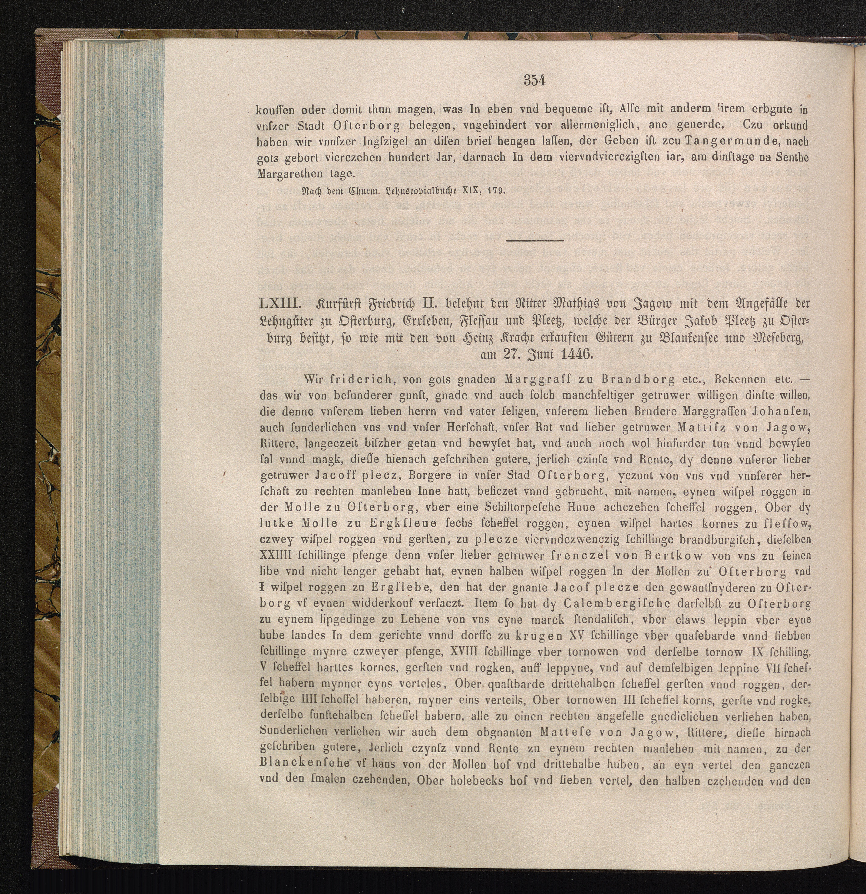 LXIII. Kurfürst Friedrich II. belehnt den Ritter Mathias von Jagow mit dem Angefälle[...]