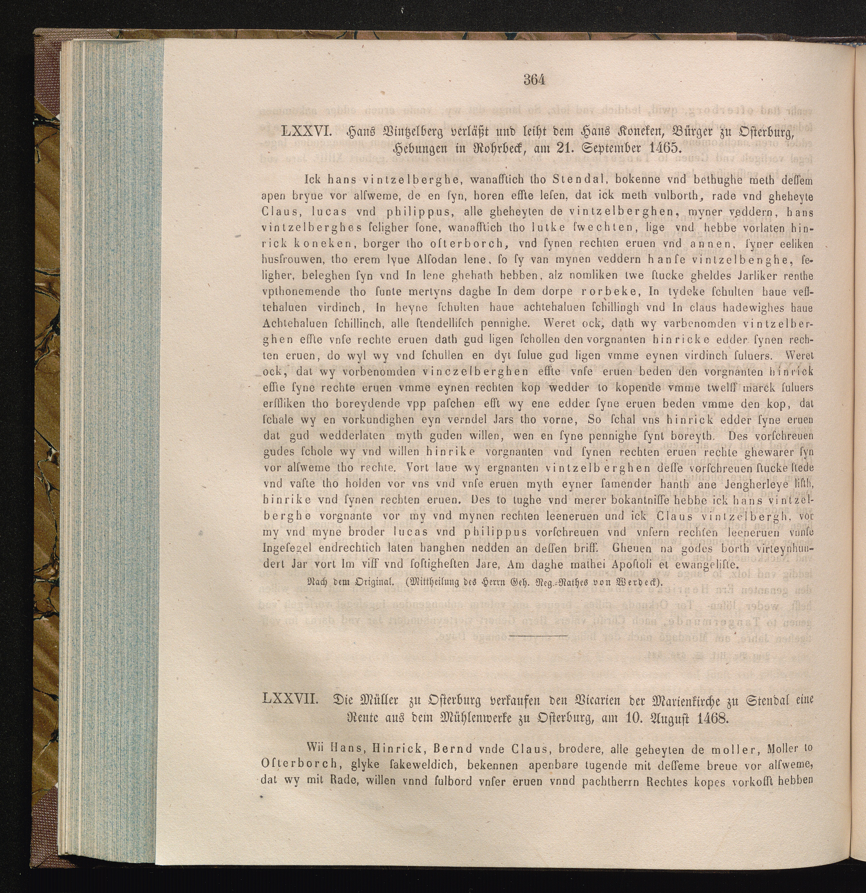 LXXVII. Die Müller zu Osterburg verkaufen den Vicarien der Marienkirche zu Stendal[...]