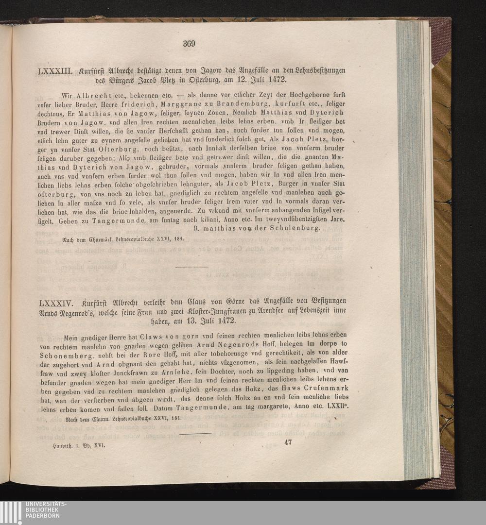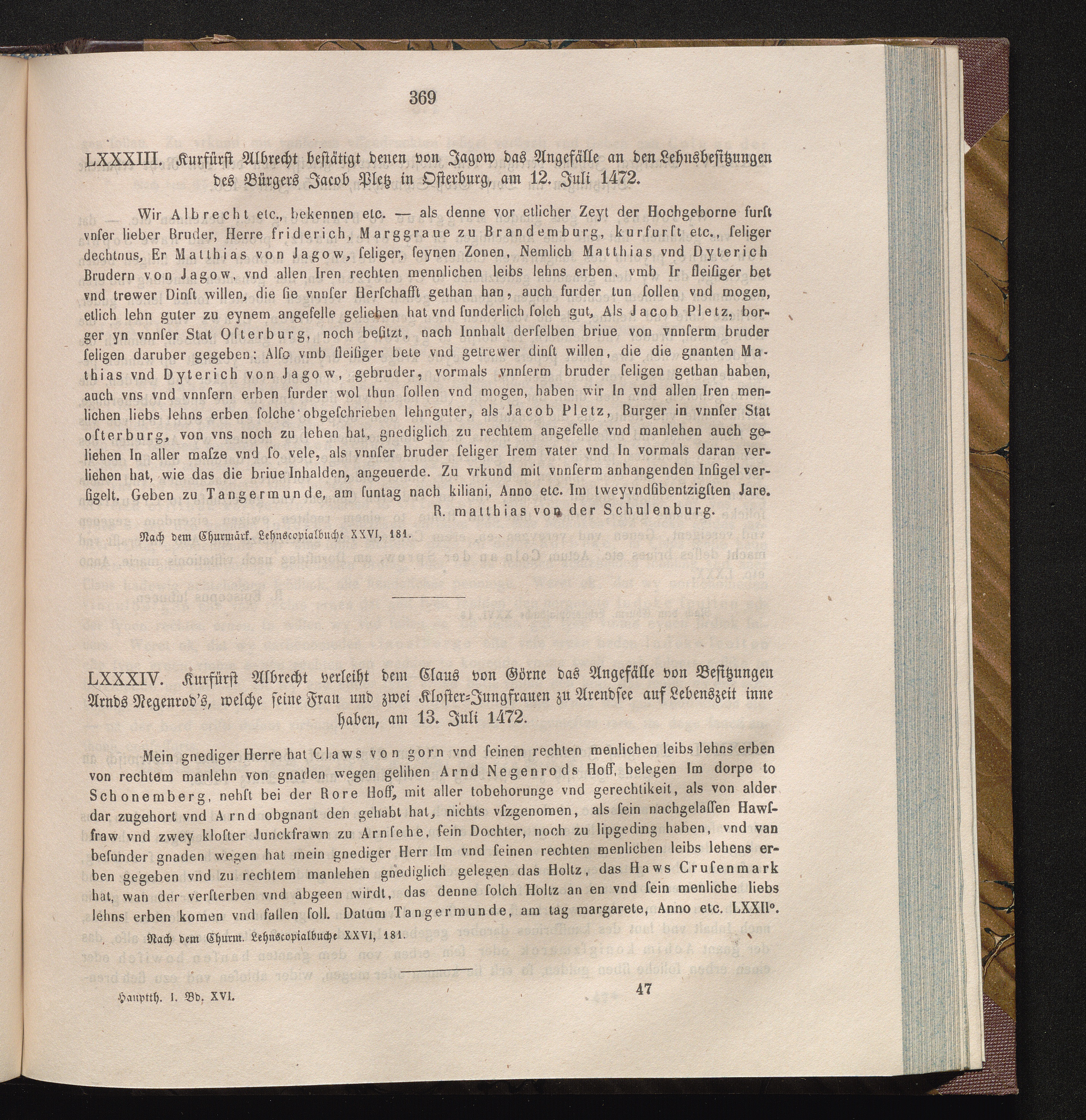LXXXIV. Kurfürst Albrecht verleiht dem Claus von Görne das Angefälle von Besitzungen[...]